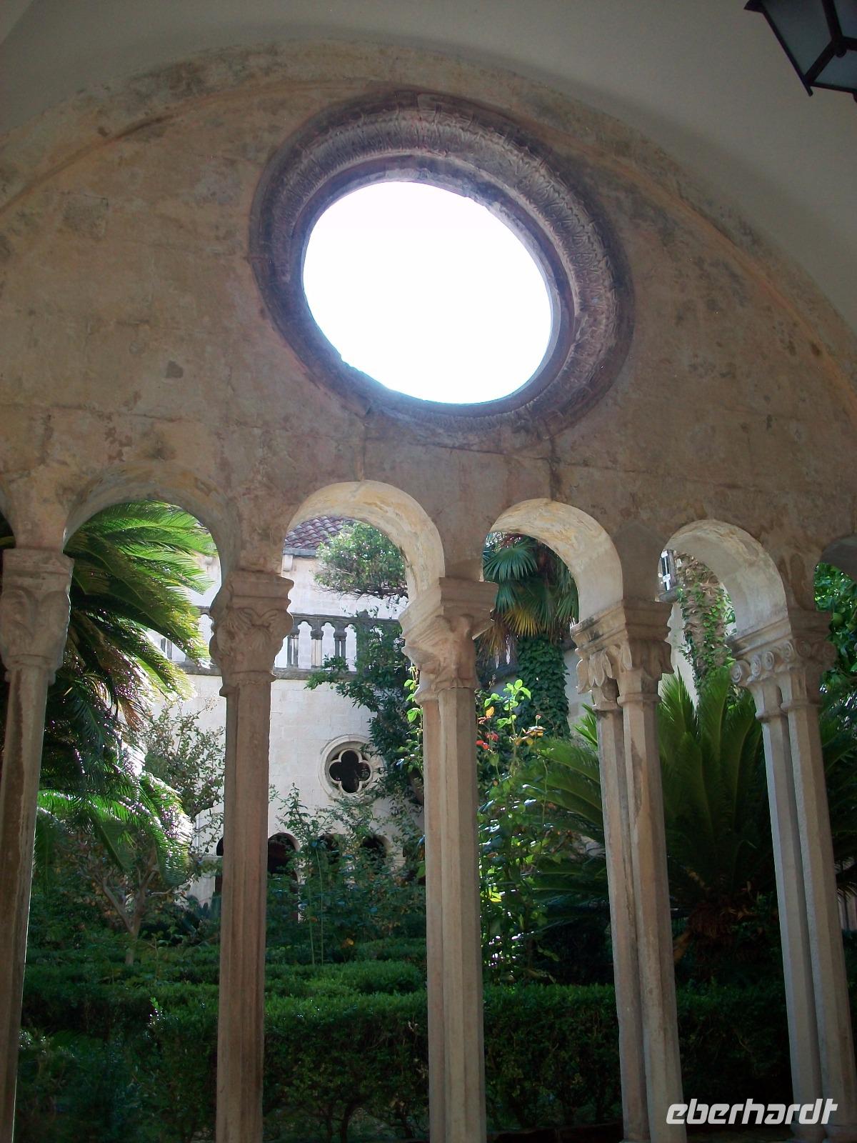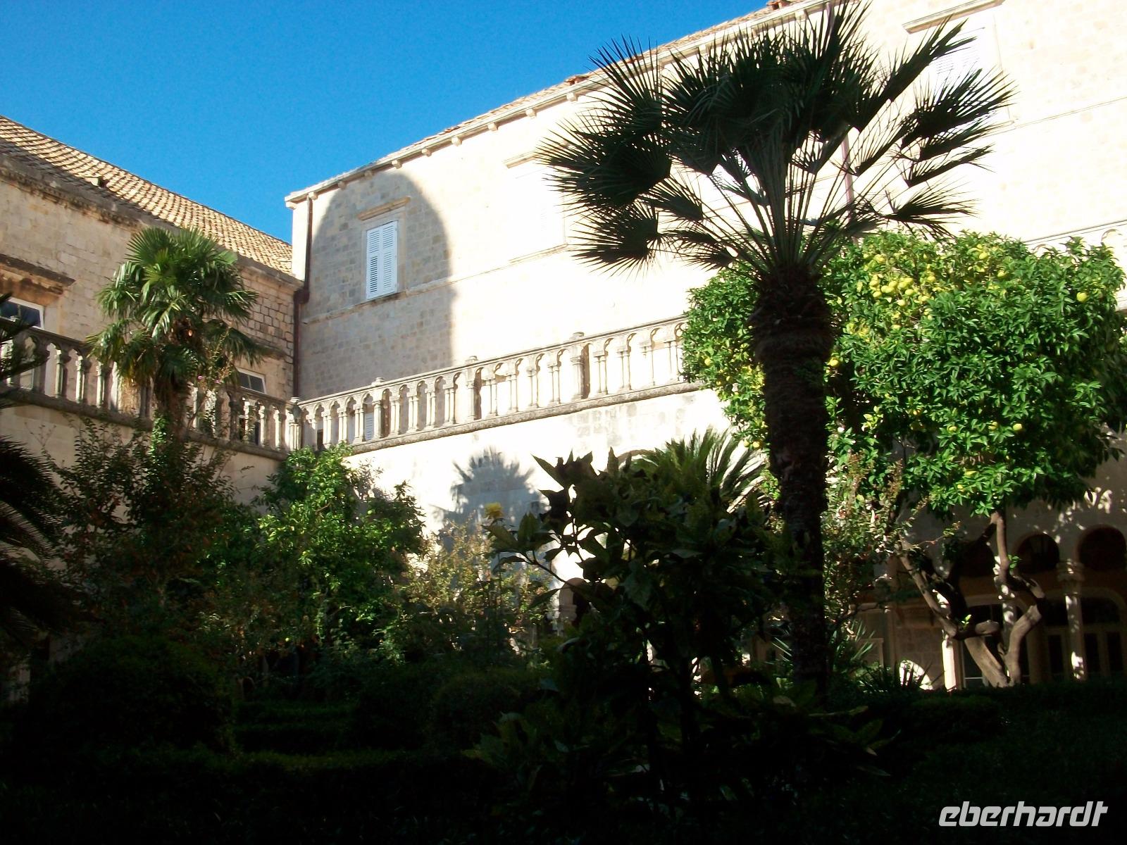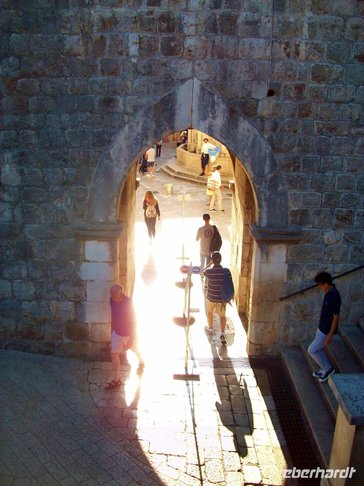 Über die Zugbrücke gelangen wir zwischen die Mauern und durch das schmale Eingangstor hindurch, stehen wir auf Stradun und sehen dem Wogen der Menschen zu. Der große Onofriobrunnen ist umlagert von Touristen aus aller Welt, der Troubadour in historischer Kleidung verkauft kleine Herzen und wir verschwinden erst einmal in das Franziskanerkloster. Hier bewundern wir zunächst den schönen Kreuzgang durch den die Morgensonne ihre Strahlen sendet und statten auch der uralten Apotheke einen Besuch ab. Dann geht es mit Ivana auf Erkundungen in der alten Ragusa. Schnell sind wir in der Gasse verschwunden die hier Fressgasse geheißen wird, die Angebote sind sehr verlockend!