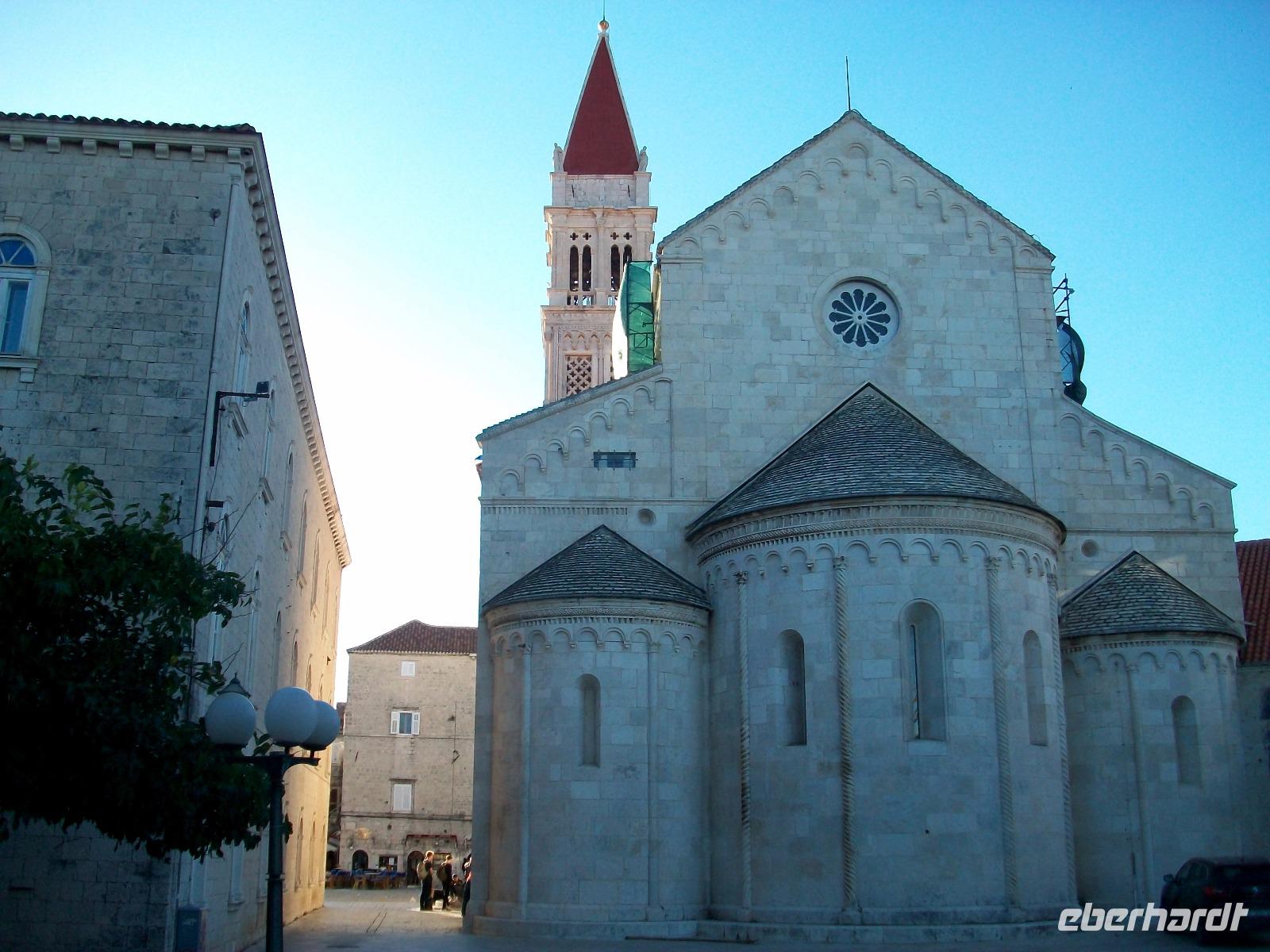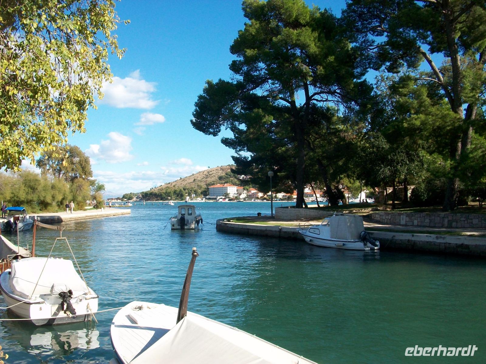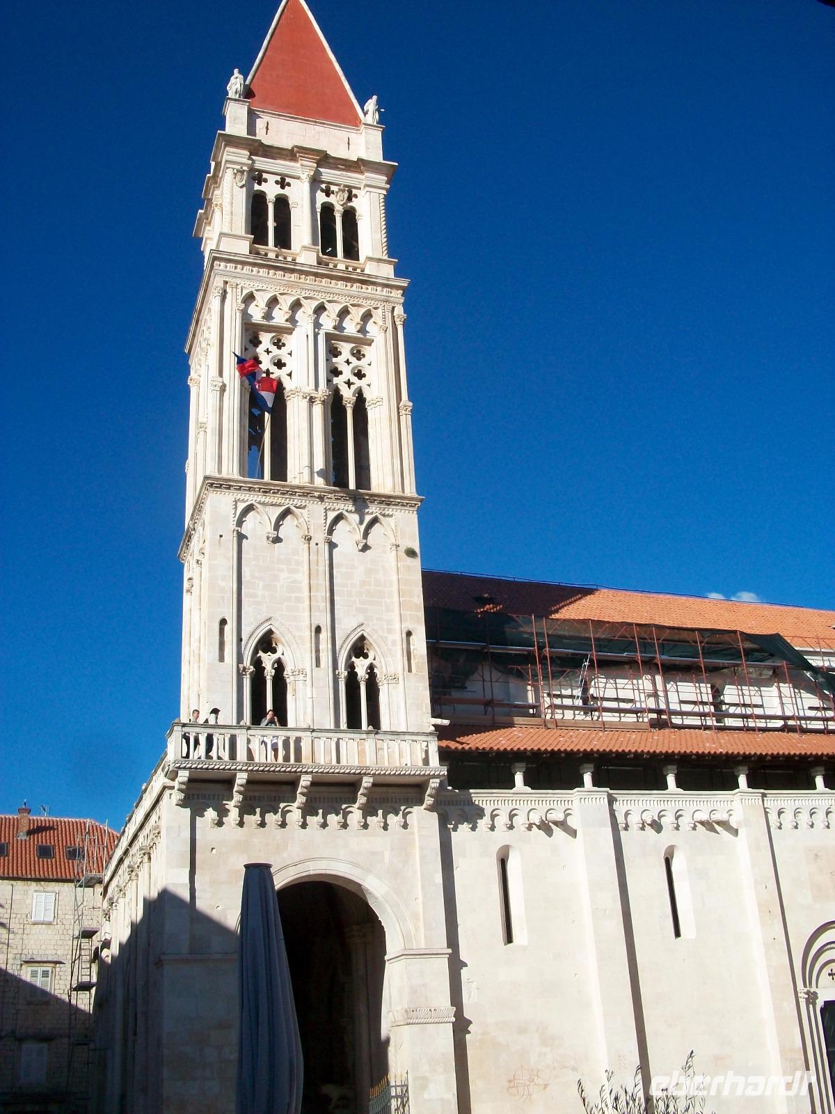 Unten, wieder auf Meeresniveau angekommen, gelangen wir nach Trogir und hier beginnt auch gleich die Führung in dieser im Originalzustand erhaltenen Altstadt. Schnell sind wir in den schmalen Gassen verschwunden, die Zeit scheint um Jahrhunderte zurückgedreht und wir erfreuen uns an dieser Zeitepoche die uns in Stein erhalten blieb. Am Hauptplatz bewundern wir die schönen Adelspaläste, schauen auf das wunderschöne Portal der Kathedrale und lassen uns schließlich auf der Promenade von der Sonne verwöhnen.
