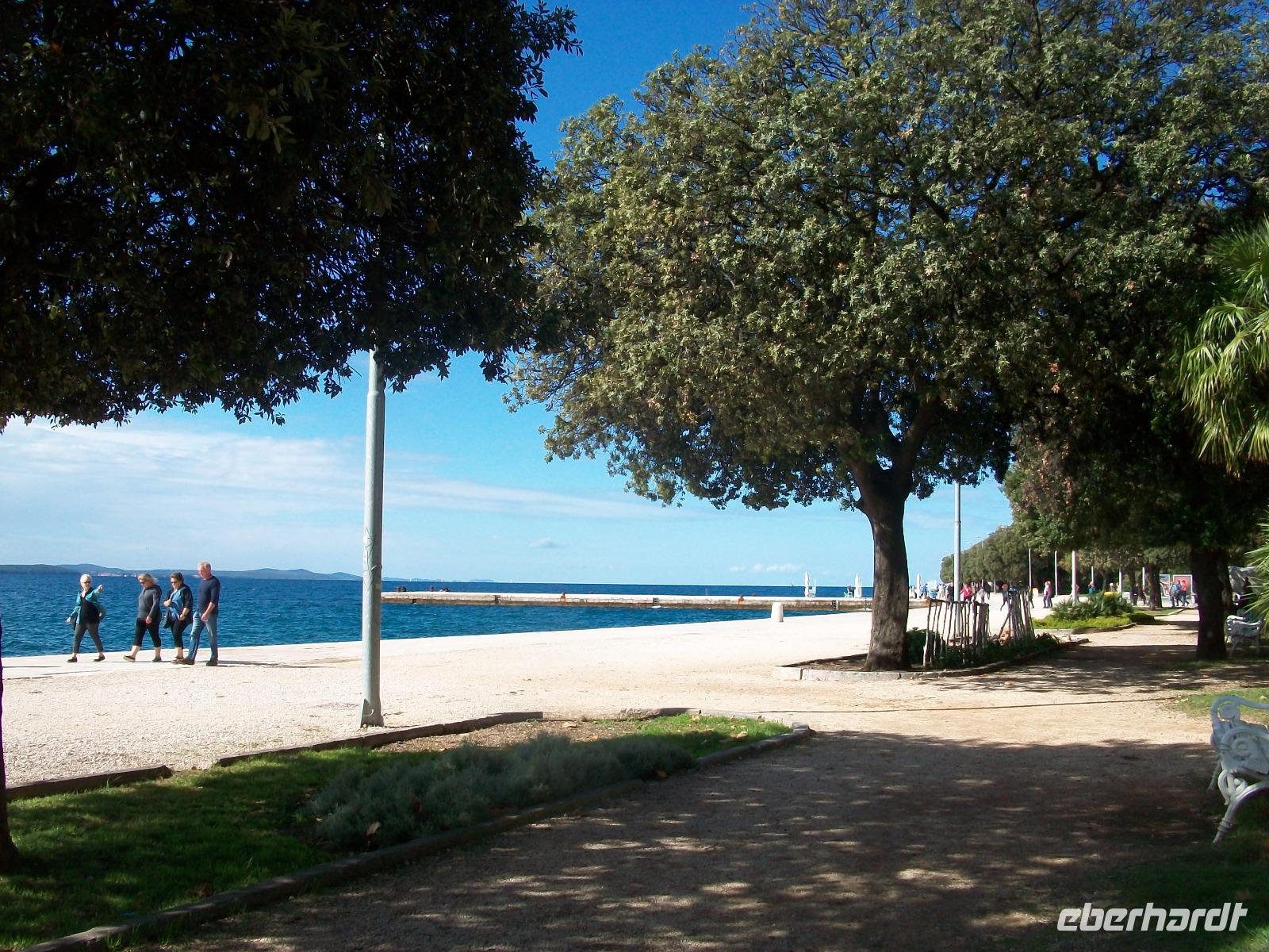 Nach einer Stunde Fahrzeit gelangen wir nach Zadar. Sie ist die bedeutendste Stadt in Norddalmatien, ihr gilt unser nächster Besuch. Hier gibt es, beginnend von den Römern bis hin zur Moderne, vieles zu bewundern und somit starten wir erst einmal in der Historie des Mittelalters. Durch das Seetor gelangen wir zur Kathedrale, ihre Geschichte wird uns erzählt und dann machen wir uns auf zur Spitze der Halbinsel auf welcher diese Stadt liegt. Hier, am äußersten Zipfel, sind wir in der Moderne angelangt. Wir bewundern die Sonne und das Planetensystem, bestehend aus Solarzellen und lauschen den disharmonischen Klängen der Orgel deren Organist das Meer höchst selbst ist.