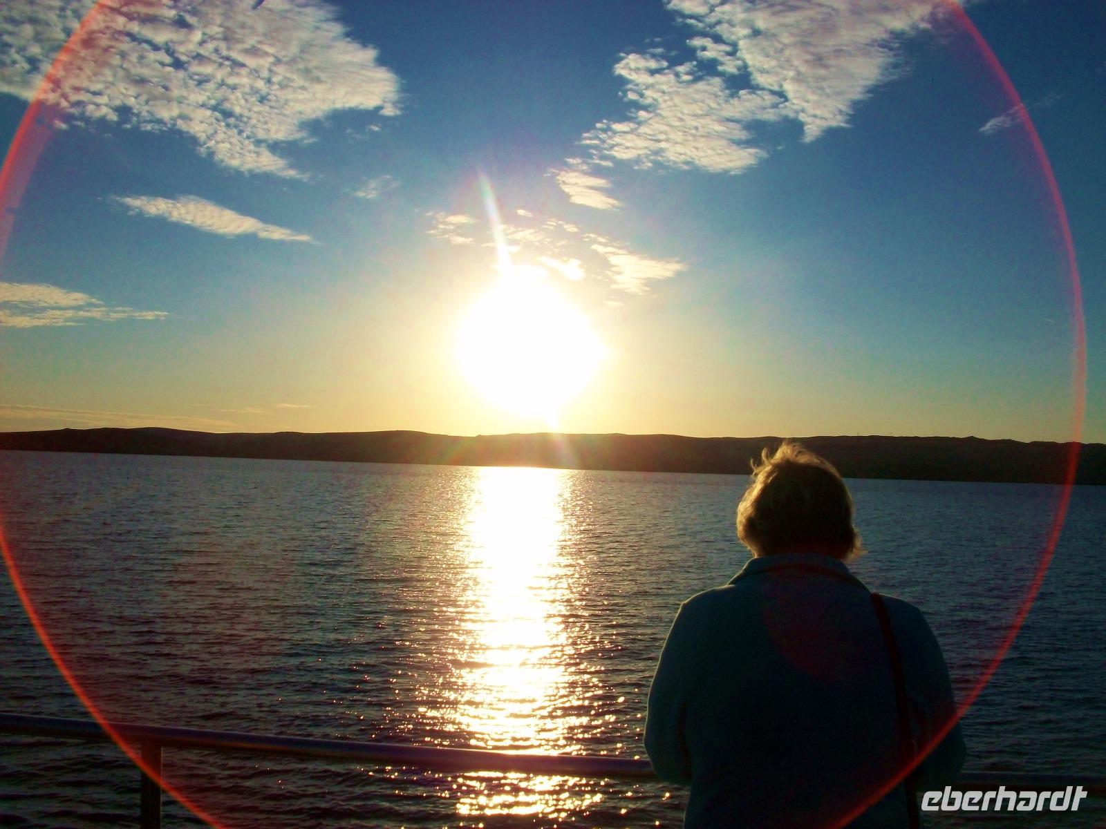 Leider vergeht auch hier die Zeit viel zu schnell; die Sonne neigt sich dem Horizont zu und kurz bevor wir in unserem Hotel bei Šibenik ankommen, genießen wir den Sonnenuntergang der sich uns beim Blick aus den Busfenstern zeigt.