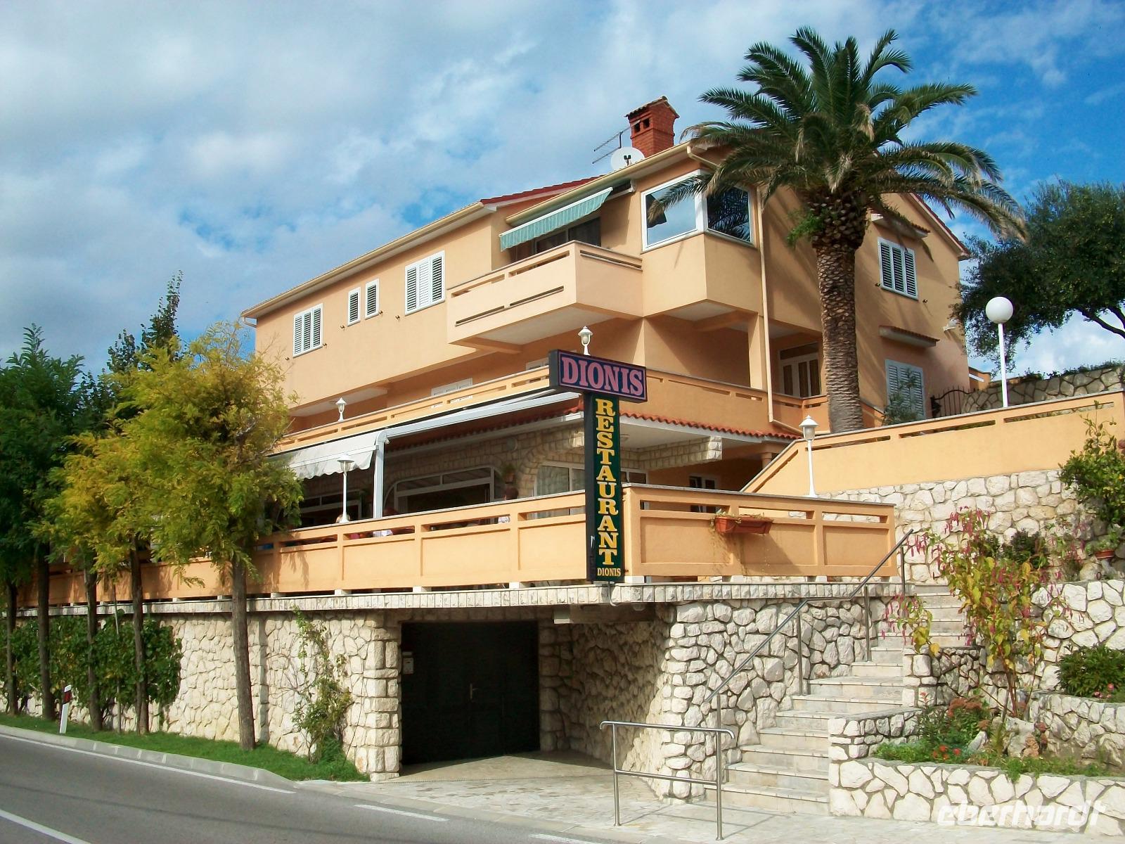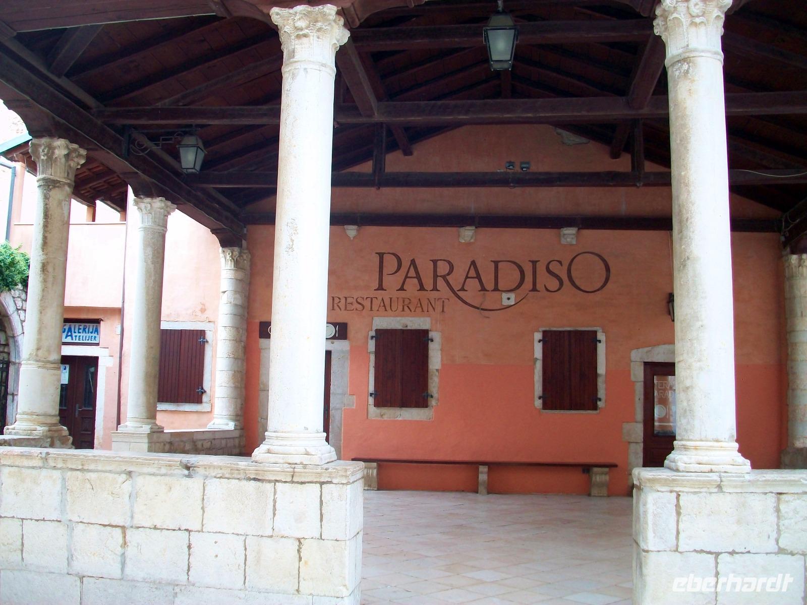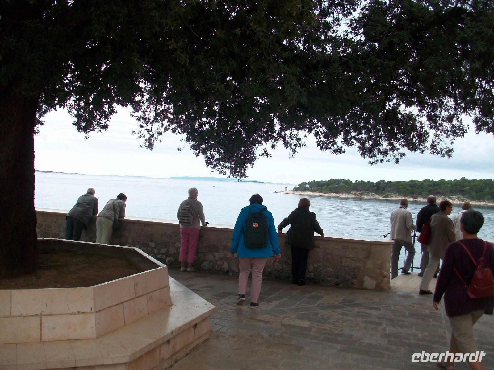 Somit haben wir uns dann auch eine Stärkung verdient! Im schönen Restaurant von Dionis werden wir von Josip dem Wirt und seiner Familie in traditionell herzlicher Weise empfangen. Schnell ist der Kontakt geknüpft; Josip stellt uns die verschiedenen Speisen vor und nach der Bestellung wird alles frisch zubereitet auf die Teller gebracht. Wir lassen es uns gut munden und Josip gibt dieses und jenes zum Besten, somit ist dieser kulinarische Besuch noch gewürzt vom Humor und dem Lebensgefühl der hier lebenden Menschen. Solchermaßen gut versorgt beginnt an diesem schönen und sonnigen Nachmittag die Freizeit in einem der schönsten Orte der Adria, denn unser Hotel liegt nur einen Katzensprung von der Altstadt entfernt und der Badestrand in der Bucht von Eufemija ist auch nicht weit weg.