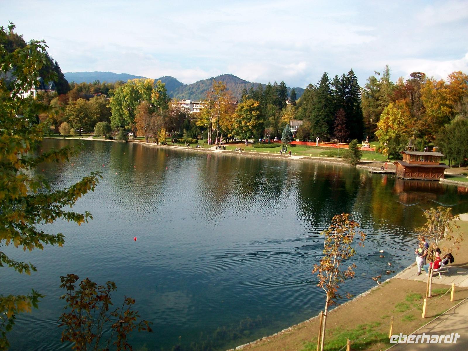 Dann langen wir in Bled an; es ist Nachmittag und dieser steht uns nun zur Verfügung um an diesem Spätsommertag noch einmal so richtig die Seele baumeln zu lassen. Ein Bummel am See mit den buntgeschmückten Bäumen, eine Bootsfahrt hinüber zur Insel oder einen Kaffee in einem der gemütlichen Restaurants am See - ich glaube an diesem ruhigen uns sonnigen Nachmittag war für jeden etwas dabei.