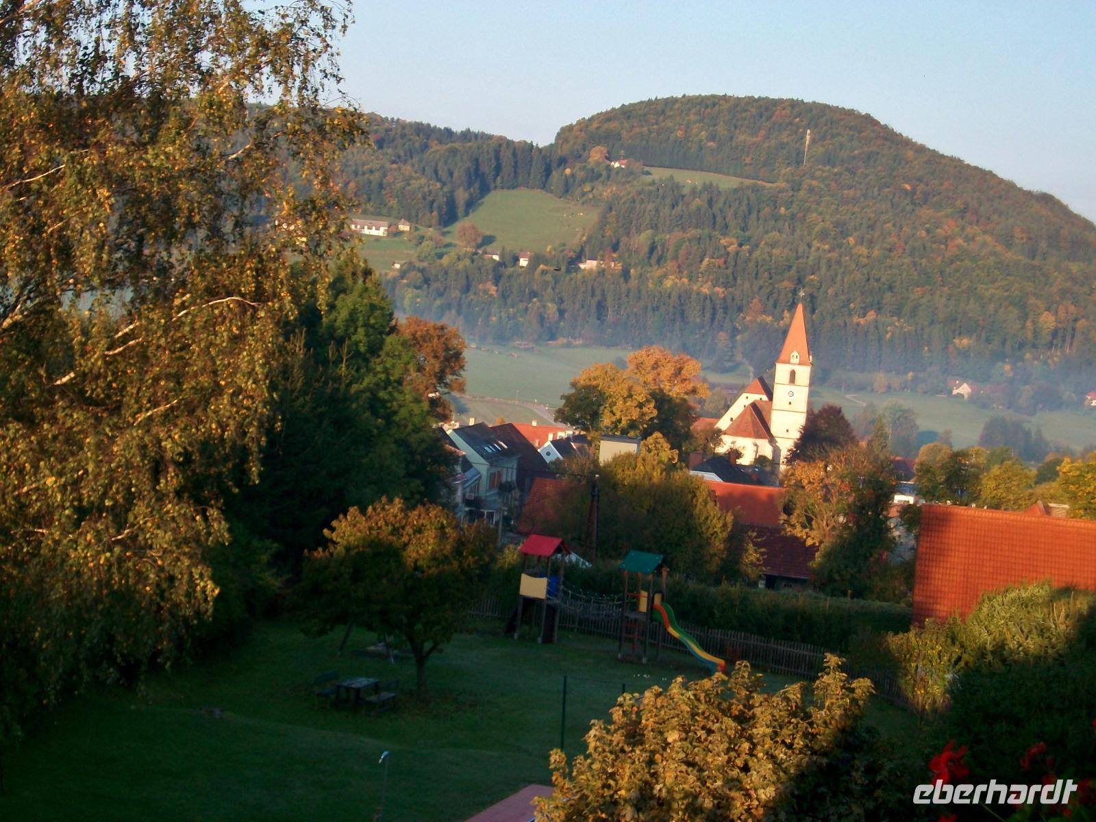 Die Landstraße bringt uns in zahlreichen Kurven hinauf nach Semriach und im schönen Hotel „Semriacher Hof" werden wir schon erwartet und wie auf Bestellung kommt nun auch die Sonne heraus, sie lockt uns noch vor dem Abendessen zu einem Bummel durch den schönen Marktflecken, umgeben von Bergen und den schon buntbelaubten Bäumen.