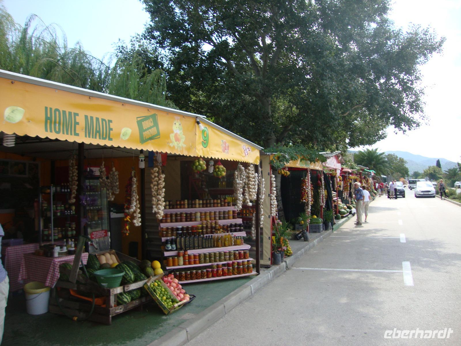Nachdem wir die ca. 70 km lange Fahrt über die Halbinsel hinter uns hatten, wurde der erste Stop in Neum eingelegt, zuerst zum Tanken und danach an der Raststätte, die sich in den letzten Jahren zum angenehmsten entwickelt hat. Im fruchtbaren Neretva - Tal, im Ort Opuzen, wo die Bäurerinnen ihre selbst erzeugten Produkte verkaufen, konnten wir probieren und die ersten Mandarinen kosten. In Ploce, der Hafenstadt an der Adria, fuhren wir wieder auf die Autobahn, um unser nächstes Ziel, die Stadt Trogir zu besuchen. "Den günstigen Augenblick nutzen" - das war schon vor über 2000 Jahren den Griechen, Gründern der Stadt, eine Gottheit wert. Die Altstadt von Trogir wurde auf eine von dicken Mauern umgebene Insel gebaut, die über Brücken mit dem Festland und der Insel Ciovo verbunden ist. Auch hier begleitete uns Dijana, ebenso wie in Split. Der ehemalige Richtertisch aus Stein stammt noch aus der Zeit, als in der Loggia öffentlich Gericht gehalten wurde. Wie man in der Fotogalerie sehen kann, war das auch heute der Fall. Auf der Rückseite der Brücke verkaufen die Bauern aus der Umgebung täglich ihr Obst und Gemüse. nachdem wir uns von Dijana herzlich verabschiedet hatten ging unsere Reise durch das Hinterland bis zum neu benannten "Amaris - Park", der großen Ferienanlage am Rande von Sibenik. Im modernen Hotel "Jure" verbrachten wir einen schönen Abend.