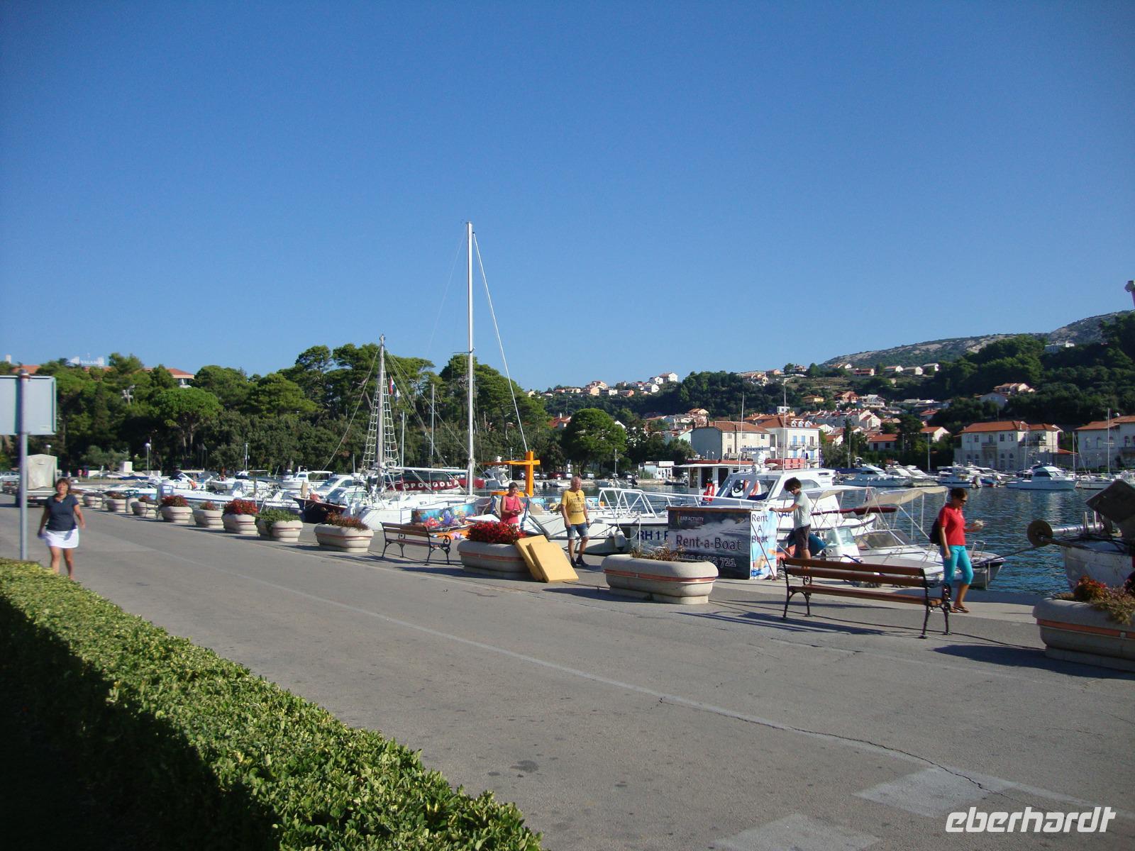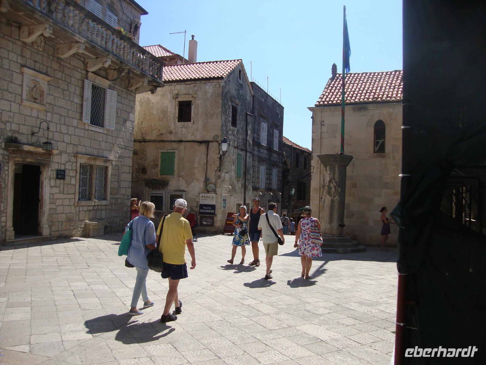 Unser weiteres Ziel für den Tag war die sonnenverwöhnte Insel Korcula. Bei Ston, an der engsten Stelle der Landbrücke vom Festland zur Halbinsel Peljesac, erinnert eine über 5 km lange Festungsmauer mit 40 Türmen und bastionen daran, das Peljesac von 1333 bis 1808 zur Freien Republik Ragusa (Dubrovnik) gehörte. Die gesamte Anlage spielte als Vorposten eine wichtige Rolle bei der Verteigung der Republik. Im geschützten Meeresabschnitt werden immer noch Austern-und Miesmuscheln gezüchtet und die alten Salinenfelder sind noch immer funktionstüchtig. Berühmte Weine , wie Dingac und Postup wachsen auf den steilen, felsigen Südhängen der Halbinsel. In Orebic gehen wir auf die Fähre und sind in15 Minuten auf Korcula. Wir sind diesmal im grundrenovierten Hotel "Liburna" zu Gast. Alles sehr schön, so zusagen vom Feinsten. Uns empfängt Neda, die Gästeführerin, im Hotel und wir laufen die Uferstrasse bis zur Altstadt. Zuerst besuchen wir das Museum, die Schatzkammer und die neobarocke Steintreppe zum Landtor, dem Haupteingang der planmäßig angelegten Altstadt. In den engen gassen soll im 13.Jh. der berühmte Weltreisende Marco Polo aufgwachsen sein, das Geburtshaus steht unweit der Kathedrale. Nachdem wir uns bei Neda ganz herzlich für die umfangreichen Erläuterungen, welche Sie uns zuteil werden lies, bedankten hatten alle den ganzen Nachmittag zur individuellen Gestaltung. Viele zog es zum baden an die Adria oder zum bummeln in die Altstadt. Am Abend trafen wir uns im Hotel zum ausgezeichneten Büffet.