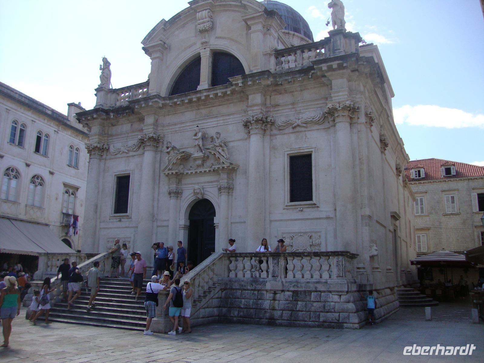 Nach einem ausgiebigen Frühstück fuhren wir alle gemeinsam mit der Bus-Linie 6 zum Pile- Platz und dort empfing uns Antea, unsere Führerin durch die ehrwürdige Altstadt.Durch das Pile - Tor, an dem die Statue des heiligen Blasius, des Stadtpatrons, zu sehen ist, kommt man zuerst am großen Onofrio-Brunnen, verziert mit 16 Wasserspeiern ,vorbei. Im Franziskanerkloster befindet sich die 1317 gegründete, im ursprünglichen Zustand erhaltene Apotheke und die Klosterbibliothek mit 20000 kostbaren Handschriften. Durch eine der zahlreichen engen Gassen, mit vielen Restaurants, gelangen wir zum Rektorenpalast und weiter zur Kathedrale "Velika Gospa", mit Blick zur großen Freitreppe. Unser rundgang endet am Stadthafen, wo wir uns ganz herzlich von Antea verabschieden. 12 Gäste machen mit mir noch eine Bootsfahrt um die Stadtmauer und die Insel Lokrum. Für den Nachmittag ist Freizeit und damit vielfältige Möglichkeiten die Stunden bis zum Abendessen zu verbringen. Die Stadtmauer, 1949 m lang, kann man zu Fuß umrunden oder man fährt mit der Seilbahn hinauf zum Berg oder man besucht eines der zahlreichen Cafe's oder Restaurants. man kann aber auch zum Hotel mit der Linie 6 zurück fahren und in der Adria baden. es war für jeden etwas dabei. Bei schönstem Sommerwetter und Wassertemperatur von 24°C ein wahres Vergnügen.