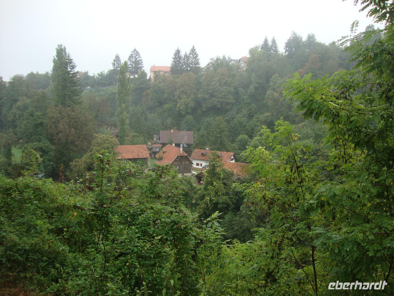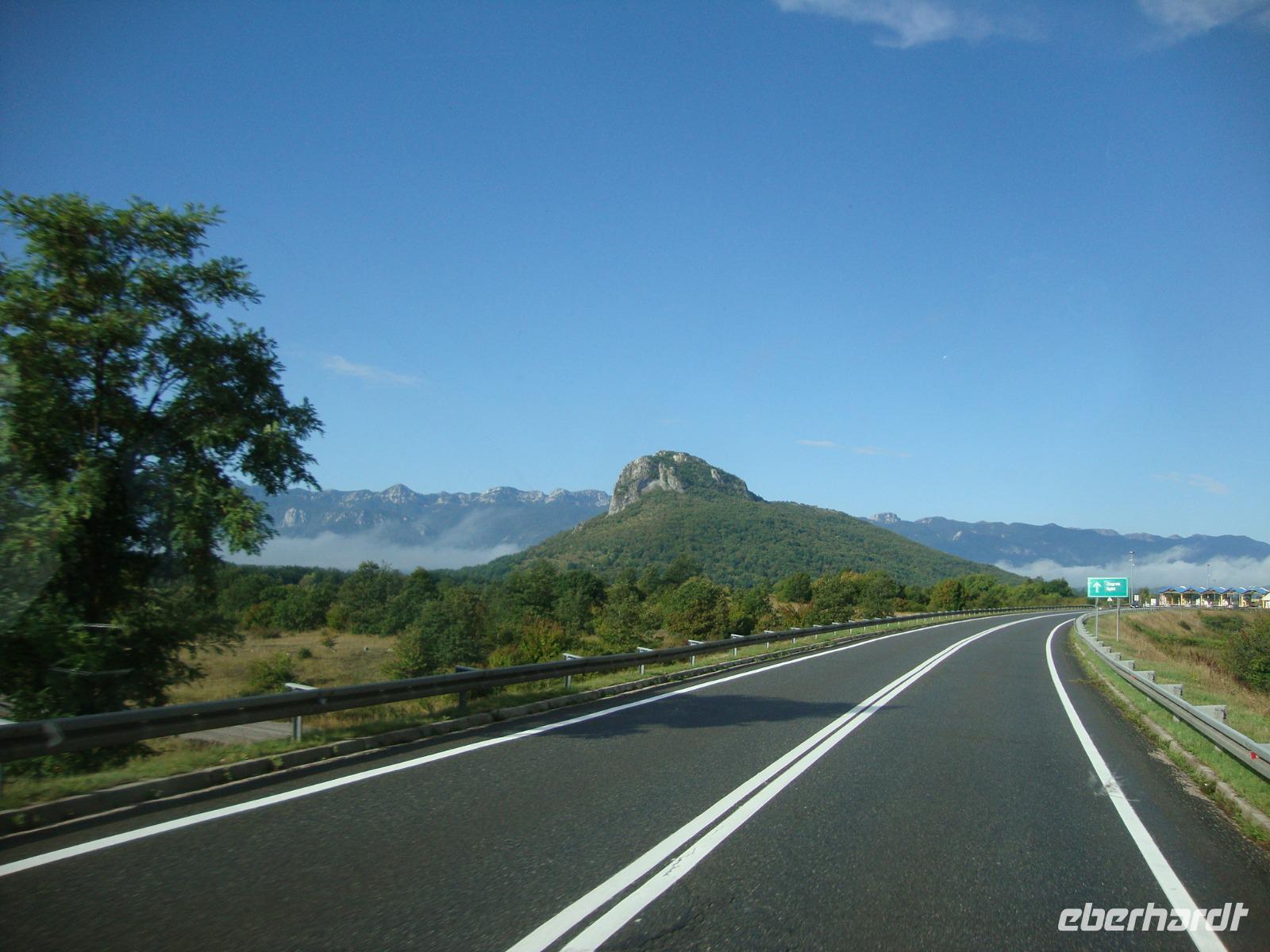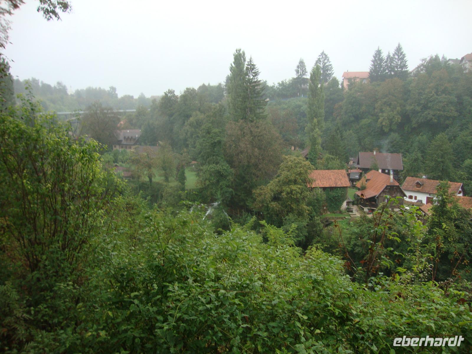 Nach unserer Fährüberfahrt, wir konnten leider unseren Bus nicht verlassen, weil alle Fahrzeuge dicht und eng aneinander standen. In Senj, mit der berühmten Uskokenburg, hielten wir an der Raststätte, um unsere letzten verbliebenen Kuna's umzusetzen. Die Stadt liegt direkt am 45.Breitengrad, also der Hälfte zwischen Nordpol und Äquator. Oberhalb von Rijeka, der größten Hafenstadt Kroatiens konnte man das touristische Zentrum Istriens und der Kvarner Bucht besuchen, um sich mit Informationen für ein eventuell neues Urlaubsziel zu holen. An der Grenze nach Slowenien mußten wir alle aussteigen um unsere Personaldokumente vorzuzeigen, aber das geschah ziemlich rasch. Am Nachmittag erreichten wir Bled, den schönsten und bekanntesten Kurort Sloweniens. Mit den Julischen Alpen, der auf einem senkrecht abfallenden Fels thronenden Burg und dem Marieninselchen wirkt er wie im Bilderbuch. Den See erwärmen warme Quellen im Sommerauf 25°C, die Karawanken schützen ihn vor den kalten Nordwinden. Wir bezogen unser letztes Quartier auf dieser wunderbaren Reise im Hotel "Jelovica" unweit vom See gelegen.