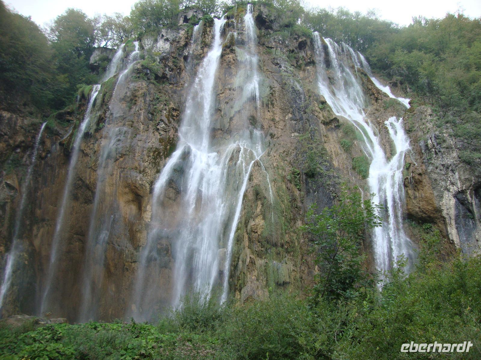 Am frühen Morgen setzten wir unsere Reise in den Süden zum ältesten Nationalpark fort. Am Mittag erreichten wir das Hotel "Jezero", direkt am Eingang 2 zum Park. Unsere Parkführerin Ana, erwartete uns, aber ein heftiger Regenguss verhinderte das wir unseren Besuch begannen. Aber gegen 13.00 Uhr schien wieder die Sonne und so machten wir uns auf den Weg. Bereits seit 1949 stehen die 16 terassenartig übereinander liegenden Seen, die sich im dichten Nadel-und Laubwald verstecken unter Naturschutz. Gut befestigte Wege und hölzerne Brücken führen hinein in diese Zauberwelt, die sich das Flüsschen Korana auf über 7km in einem scharf eingeschnittenen Tal geschaffen hat. Durch Ablagerungen, die in Moosen hängen bleiben, bildet sich Travertin, ein leichter Stein, der im Laufe der Zeit zu einer natürlichen Barriere anwächst. Ana fuhr mit uns mit dem Elektro - Boot bis zur Raststätte und zum Schluß unserer Wanderung sahen wir den 72 m hohen Wasserfall, ein beeindruckendes Bild, wie sich dieser über die Felsen stürzt. Mit dem Elektrozug fuhren wir danach wieder zu unserem Ausgangspunkt am Eingang 2 und waren mit viel Appetit auf das Abendessen vom Büffet. Unsere Parkführerin Ana hat sich ein großes Lob verdient.