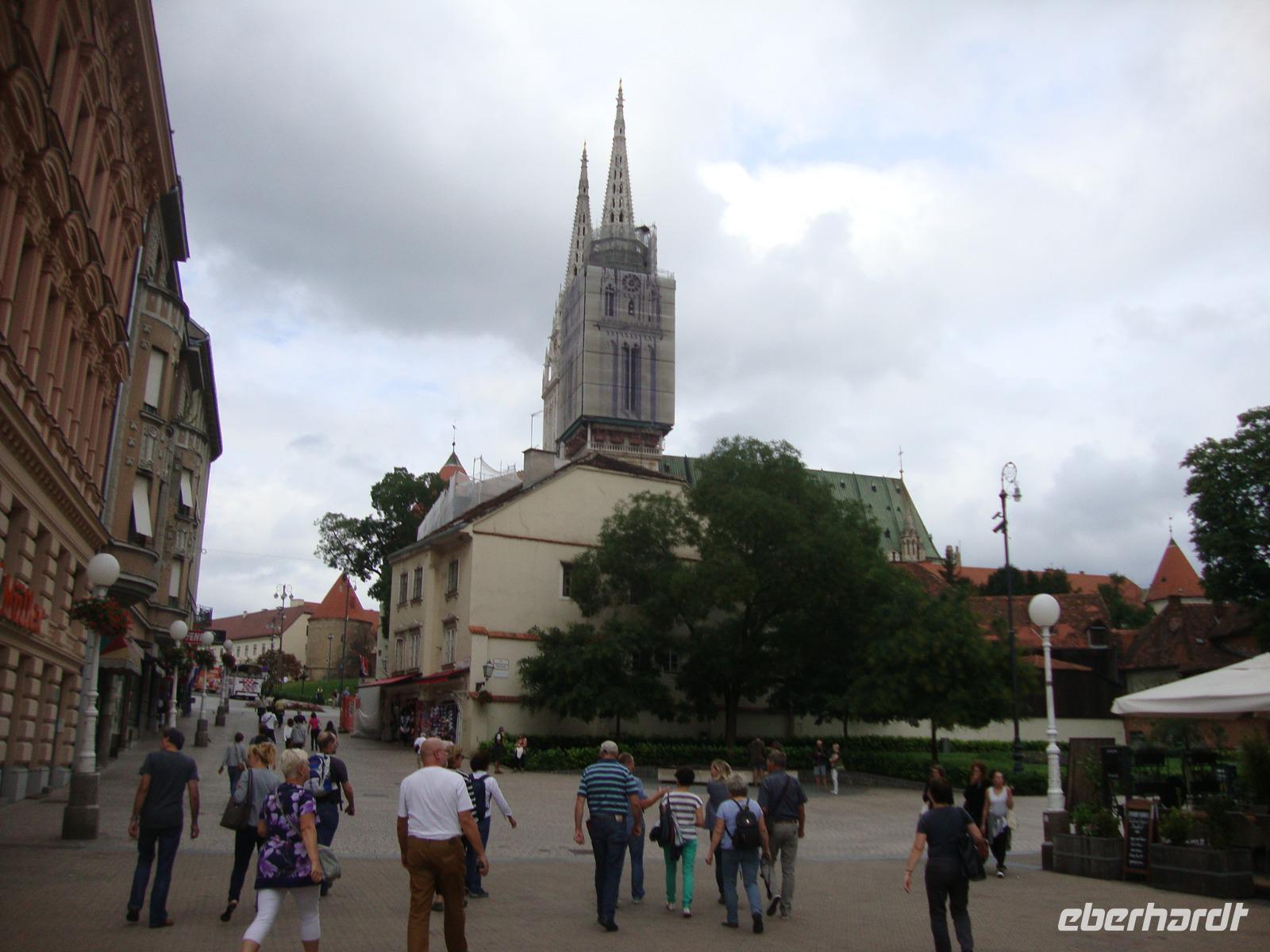 Mit unserer Gästeführerin, Darija, unternahmen wir eine kleine Stadtrundfahrt, am Sonntag nachmittag ist das möglich, da der Strassen-Verkehr nicht so dicht ist. In der Nähe des Hauptplatzes setzten wir unsere Besichtigung zu Fuß fort. Mit ihren beiden spitzen, 104 und 105 m hohen Türmen überragt die Kathedrale, größtes sakrales Bauwerk Kroatiens, das Stadtbild. Der Dolac, der große Markt, wird auch der "Bauch von Zagreb" genannt. Hier verkaufen die Bauern aus der fruchtbaren Region Zagorje, täglich Obst und Gemüse. Seit 1890 befördert die skurile Zahnradbahn "Uspinjaca" etwa alle 10 Minuten maximal 28 Personen von der Unter- in die Oberstadt. Auch wir nutzten die Gelegenheit, den Höhenunterschied von ca. 30 m zu überwinden. Neben der "Bergstation" der Bahn befindet sich der Lotrscak - Turm aus dem 13. Jh. Früher läutete hier jeden Abend die "Glocke der Diebe", die das Schließen der Stadttore ankündigte. Heutzutage ertönt mittags pünktlich 12.00 Uhr ein Böllerschuss, der viele Menschen dazu bewegt, die Genauigkeit ihrer Uhr zu prüfen. Weiter führte uns Darija zum Markusplatz, dem Zentrum der kroatischen Macht. An der Ostseite tagt der "Sabor", das kroatische Parlament und im "Ban-Palast" gegenüber residiert die Regierung. Wieder am Hauptplatz verabschiedeten wir uns herzlich von Daria, die uns die schöne Hauptstadt ihres Landes näher brachte.