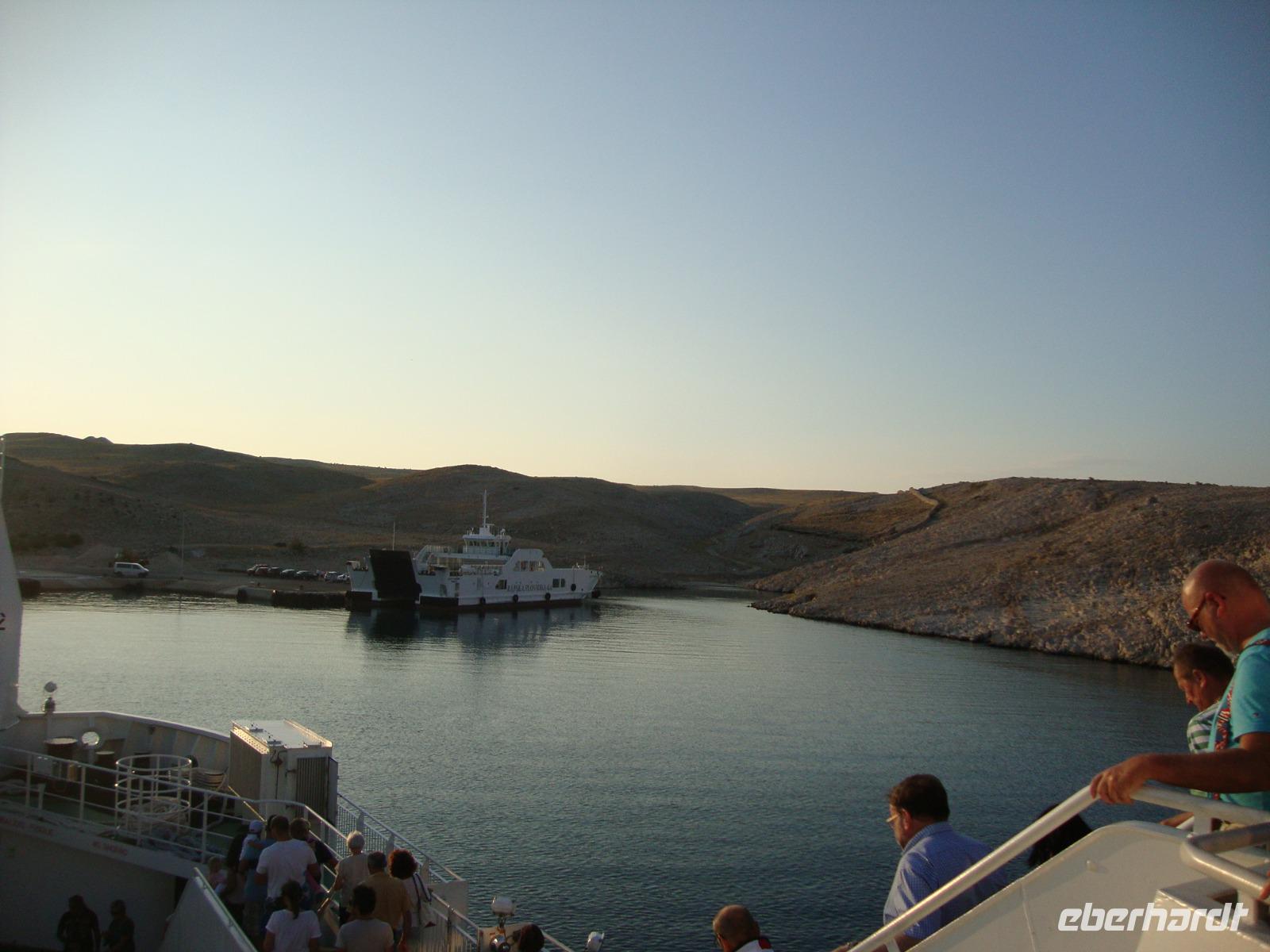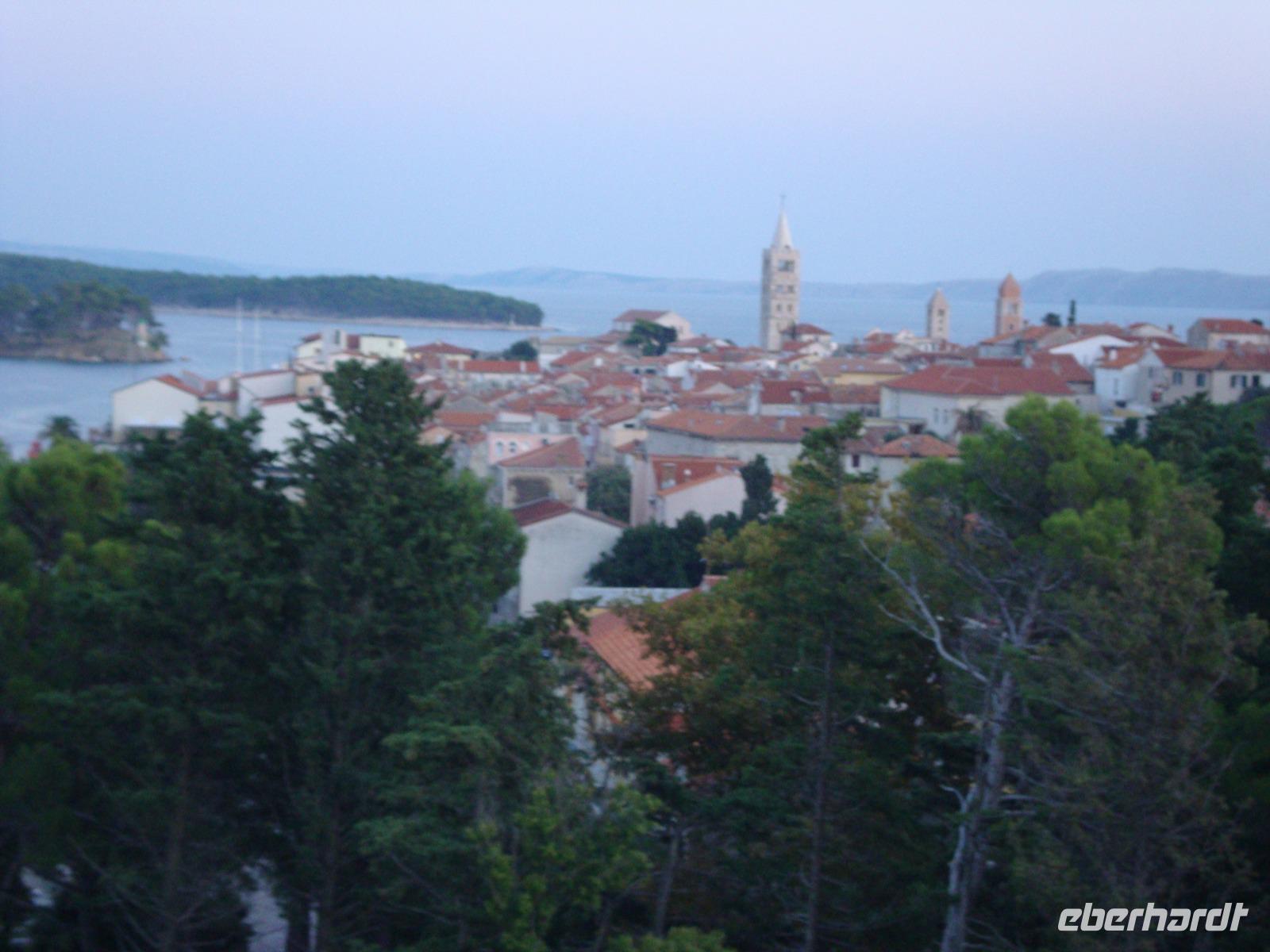So zeigt das Renaissance- Landtor in der Stadtmauer den Markuslöwen und die mächtige Rundkirche Sveti Donat wurde im 9.Jh. teilweise aus Resten des römischen Forums errichtet. Aber zuerst ging Jasminka mit uns zu etwas einmaligen auf der Welt, zur Meeresorgel. Der Architekt Nikola Basic, weihte sein Werk am 15.04.2005 ein und unzählige Menschen erlebten bisher das wunderbare Spiel je nach Wellengang. Nach einem leckeren Eis oder einem Kaffee setzten wir unsere Reise fort und verabschiedeten uns von Jasminka am Busbahnhof ganz herzlich. Entlang der Adria - Küstenmagistrale fuhren wir Richtung Norden, vorbei am Nationalpark Paklenica und in Karlobag machten wir nochmals Pause. Am frühen Abend trafen wir am Fährhafen Stinca ein und warteten auf das Fährschiff, welches uns zur Insel Rab bringen sollte. Nur kurz dauerte die Überfahrt und wir erreichten die grüne Insel. Mit Ackerland, Eichen-und Pinienwäldern ist sie eine der grünsten Adria-Inseln. Im Hotel "Imperial" wo wir ganz herzlich empfangen wurden, verbrachten wir die nächsten zwei Nächte. Nach dem Abendessen vom Büffet, wiederum mit reichlicher Abwechslung, konnte man noch einen kleinen Stadtbummel unternehmen.