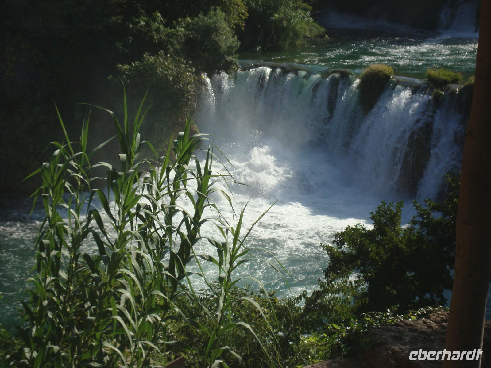 Im Hotel "Jure", nach einem Frühstück mit sehr großer Auswahl, begrüßten wir unsere Gästeführerin für den heutigen Tag, Jasminka. Sie begleitete uns in den Nationalpark Krka und am Nachmittag nach Zadar. Von Lozovac, am Eingang zum Nationalpark, steuerte Bernd Ihle unseren 5-Sterne Reisebus hinunter zu den Wasserfällen. Rauschen, Brausen, Tosen, Gurgeln, dazwischen Fröschequaken und Vogelgezwitscher aus dicht belaubtem Dickicht begleitete uns beim Rundgang auf den schmalen Holzstegen. Immer wieder fällt der Blick von einer Aussichtsplattform auf die einzigartige Kette aufeinanderfolgender Kaskaden, die höchste Kalktuffbarriere in Europa. Und an der Stelle, wo Winnetou mit einem waghalsigen Kopfsprung sich in dias tosende Wasser stürtzt wurden natürlich viele Foto's "geschossen". Schnell verging die Zeit und zur Mittagspause machten wir nochmals Pause am Rastplatz "Krka", denn wir wollten den Nachmittag in Zadar, der ehemaligen Hauptstadt Dalmatiens, erleben. Die auf einer Halbinsel liegende Altstadt trägt noch heute deutlich römische und venezianische Spuren.
