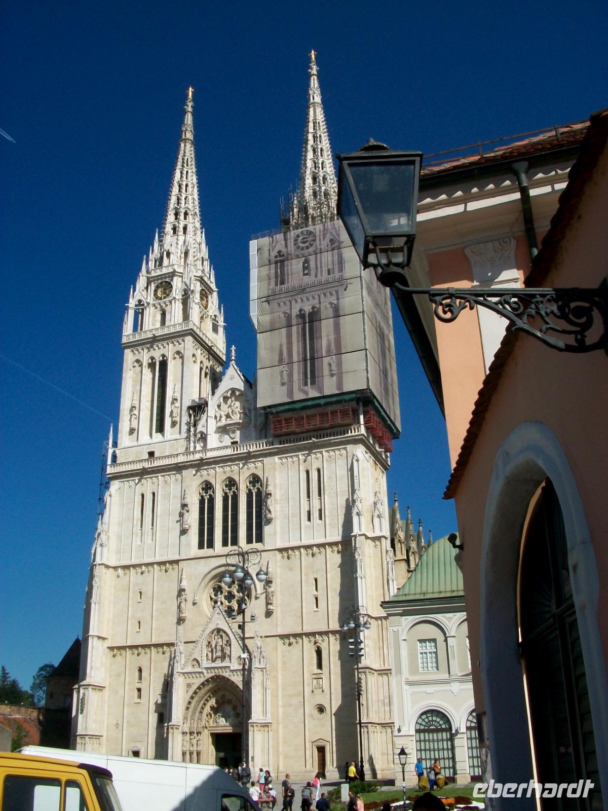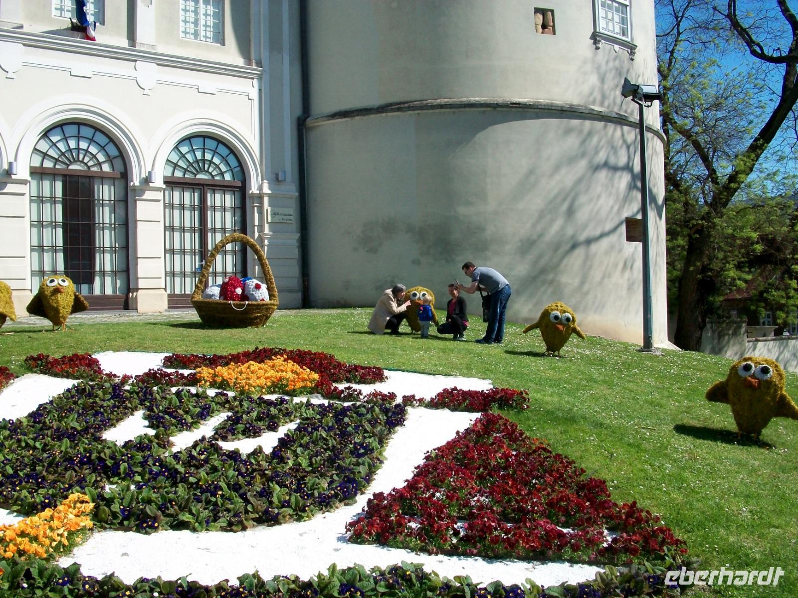 20.4.2019. Die Sonne erhebt sich über die östlichen Berge die Semriach umgeben und kündigt auch für heute einen schönen Tag an. Die erste Stärkung erlangen wir am reichhaltigen Frühstücksbuffet; ein guter Kaffee weckt die Lebensgeister und so können wir gegen neun starten, neuen, schönen Eindrücken entgegen. Bald lassen wir die steirischen Berge hinter uns und gelangen in flacheres Land. Der Übergang nach Slowenien erfolgt problemlos und fortan genießen wir die Impressionen des fruchtbaren Drau - Feldes. An der Grenze nach Kroatien lässt man uns etwas warten, dennoch langen wir pünktlich in Zagreb an wo uns schon Darija, die Stadtführerin, erwartet. Dann geht es los; durch den modernen Teil der Kroatischen Hauptstadt führt zunächst unser Weg, dann sind wir in der Historie angelangt. Bis 1918 hatten hier die Habsburger das Sagen, sie prägten dem damaligen Agram ihren Stempel auf. Wir werfen auch einen Blick in die Kathedrale hinein, hier laufen die letzten Vorbereitungen für das Osterfest und zahlreiche Gläubige warten in einer Schlange um die Beichte abzulegen.