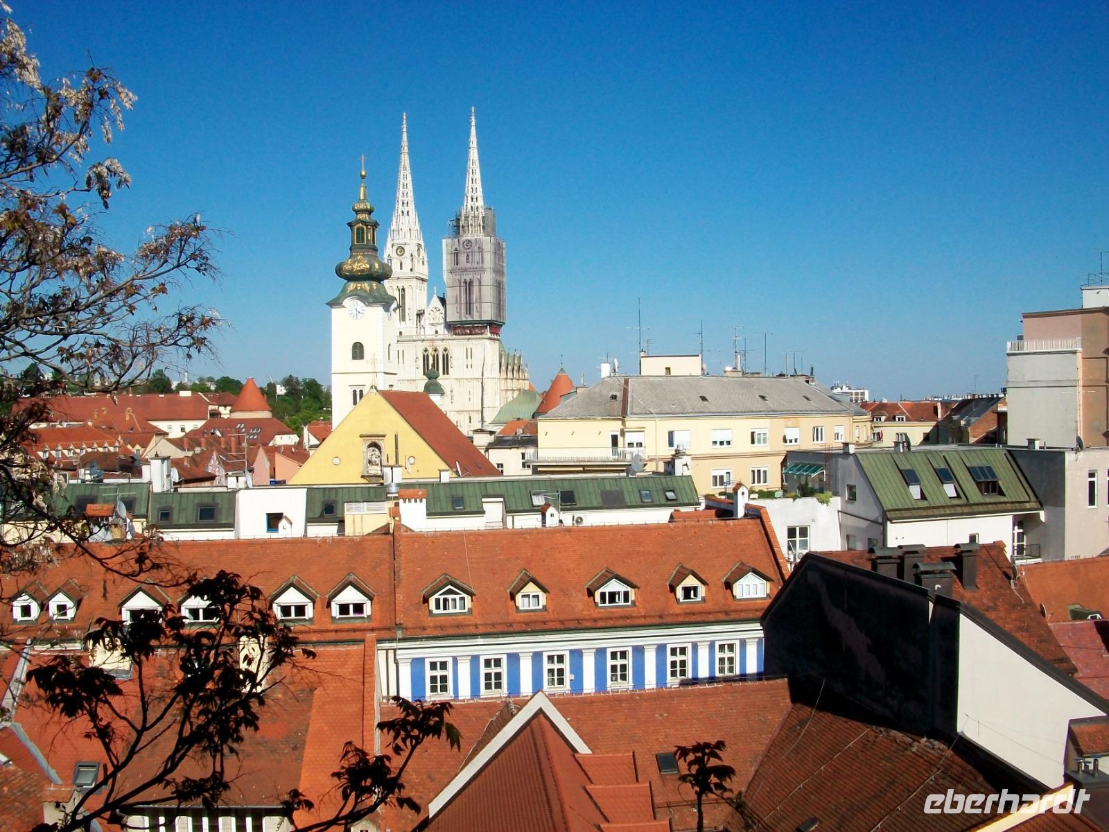 Dann geht es über den Markt hinauf zur Oberstadt; durch das Steintor hindurch gelangen wir zum Markusplatz und hier können wir die bunten Dachziegel der Markuskirche bewundern. Etwas weiter und wir haben einen phantastischen Blick auf die Silhouette dieser schönen Stadt, die Nachmittagssonne rundet das Bild ab. Unten am Hauptplatz verabschiedet sich Darija und wir genießen noch ein wenig Freizeit in warmer, angenehmer Frühlingsluft bei einem Kaffee oder einem Eis in einem der zahlreichen Restaurants die ihre Stühle längst nach draußen gestellt haben. Dann bringt uns der Bus zum Hotel, ein weiterer schöner Tag ist damit zu Ende gegangen.
