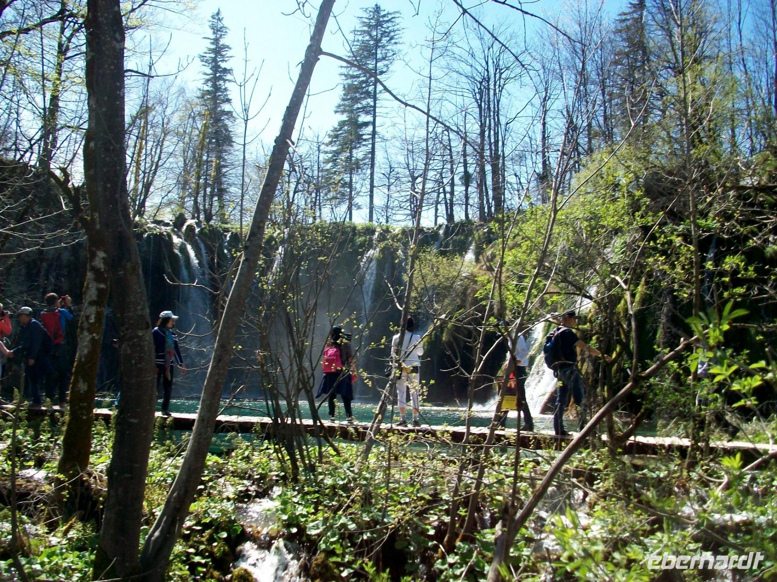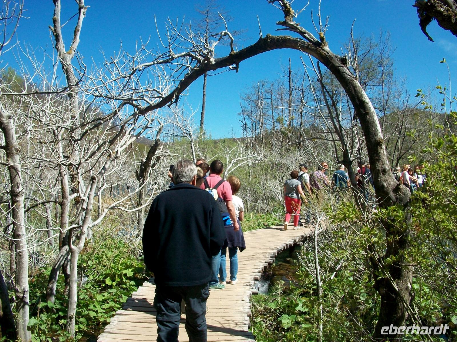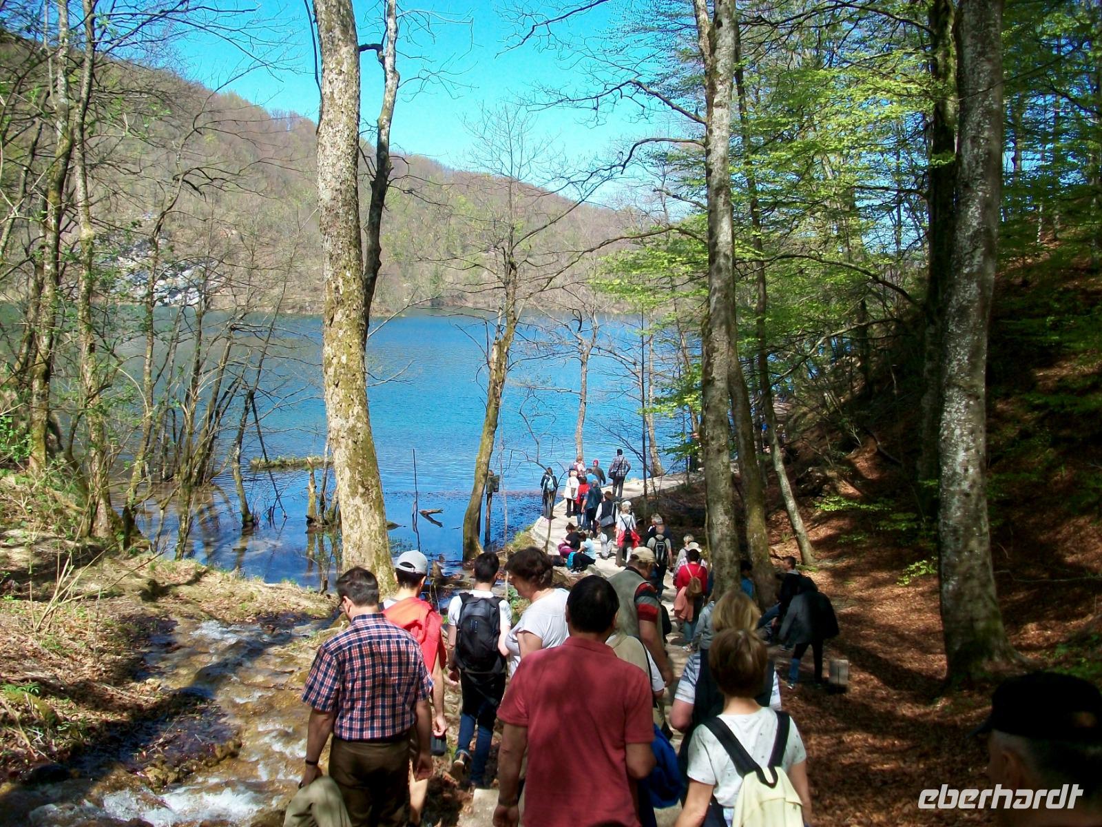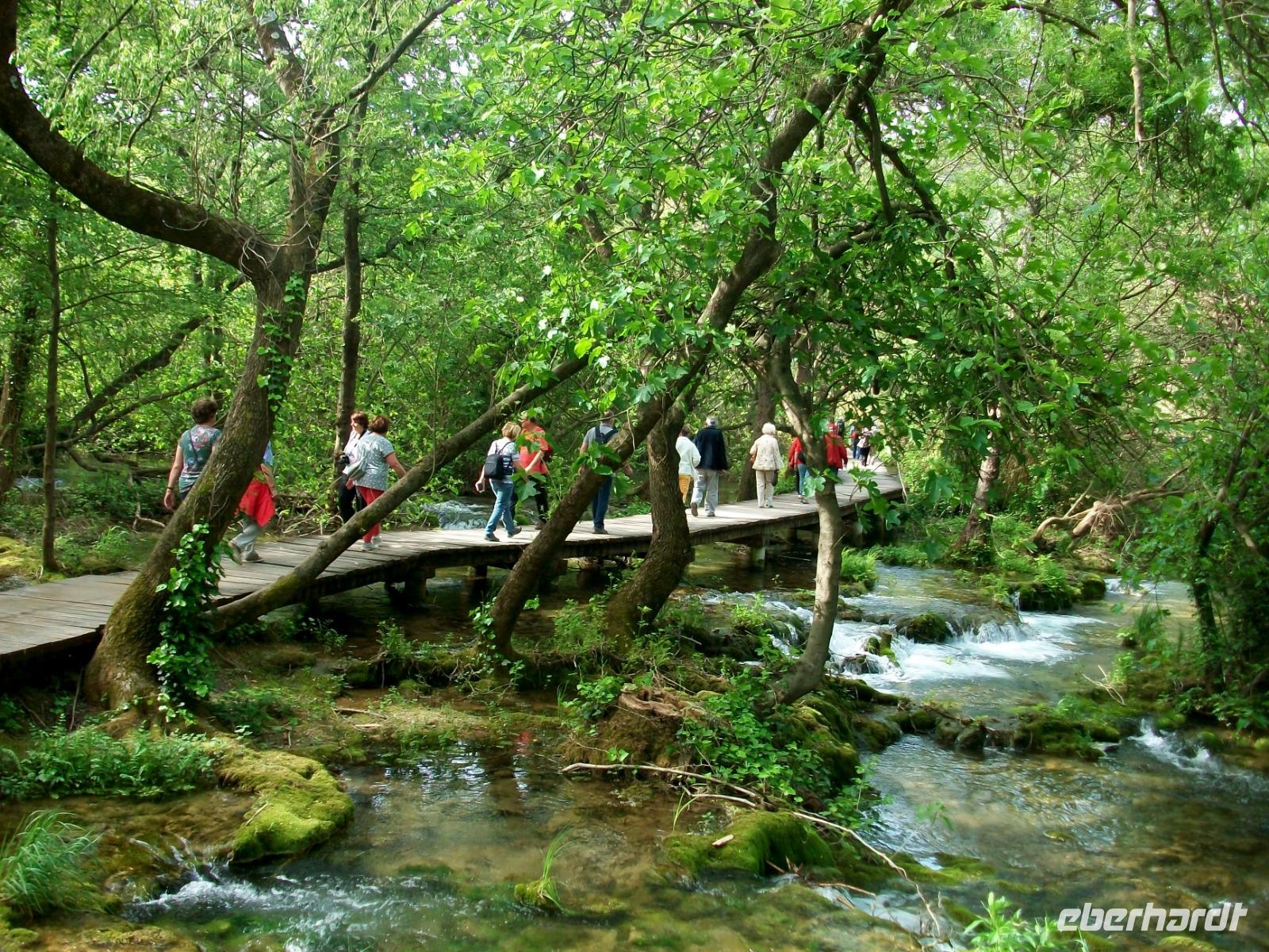 Zuerst führt uns die Route aber entlang der Autobahn; beim Ort Karlovac schwenken wir dann ein auf die Landstraße die uns, vorbei an einsamen Dörfern, durch eine interessante Karstlandschaft bringt. Gegen Mittag langen wir im Nationalpark an und, nach einer kleinen Stärkung aus der Bordküche, beginnt unsere Wanderung. Unser Parkführer heißt Mario und mit ihm gelangen wir staunend durch diese Naturwunder. Entlang der türkisfarbenen Seen, dann wieder unter rauschenden Kaskaden und Wasserfällen hindurch, führt die Wanderung; und mit jedem Meter den wir zurücklegen, zeigen sich uns weitere schöne Panoramen. Hier tummelten sich einst die (Film) Indianer; Häuptling Winnetou und sein Blutsbruder Old Shatterhand sorgten für Gerechtigkeit und wir lassen uns an diesem schönen Nachmittag von all den Naturschönheiten inspirieren. Für die Wagemutigsten geht die Runde gegen sechs zu Ende und beim gemeinsamen Abendessen sind wir uns alle einig: Das war ein ganz besonderes Erlebnis!
