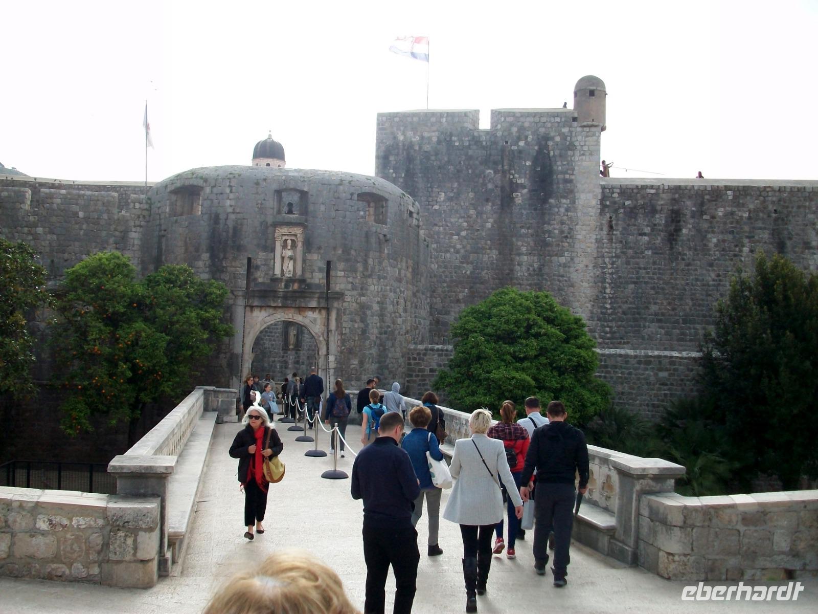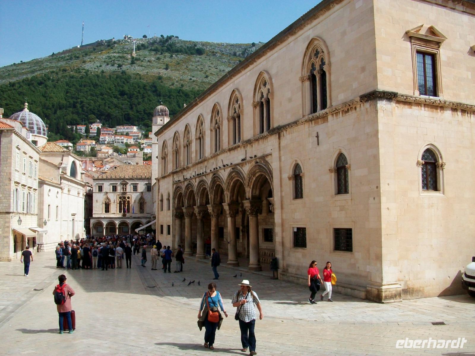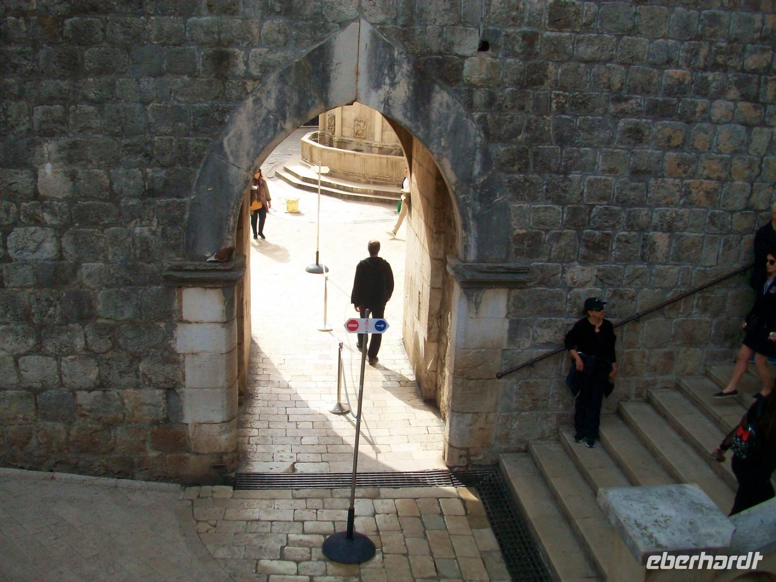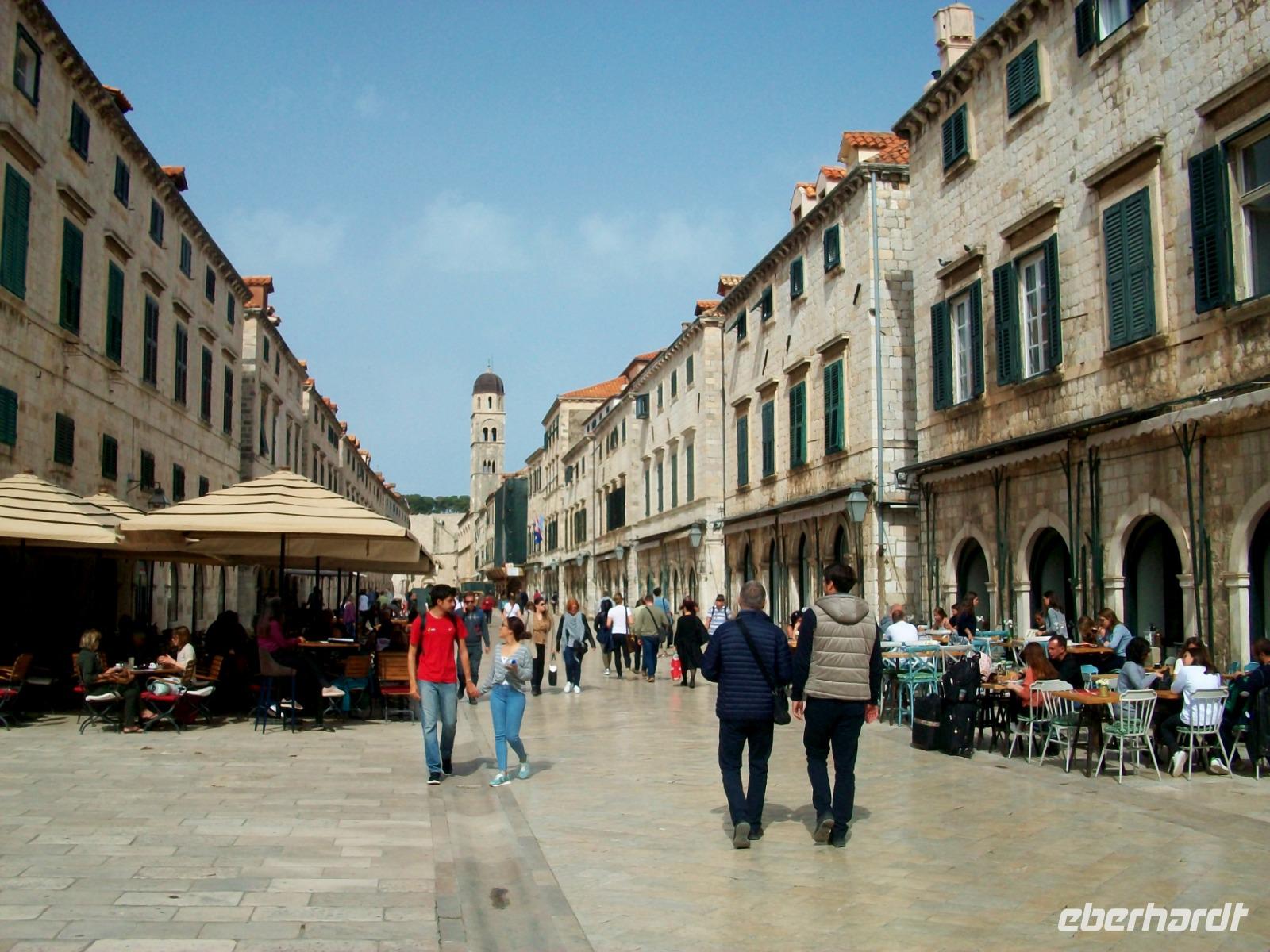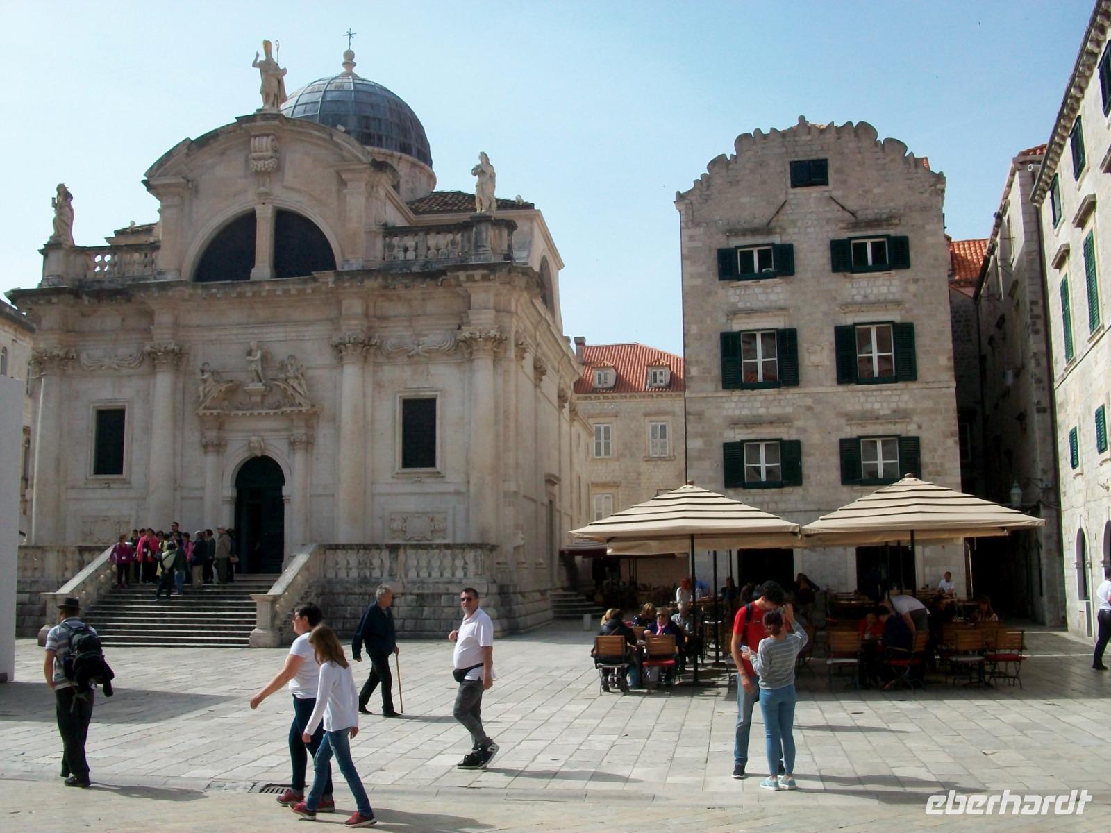 Am Vormittag hat sich Antea am Hotel eingestellt; sie ist unsere bewährte Führerin durch die historischen Mauern der alten Ragusa, so der frühere Name dieser Adriaperle und das schon seit vielen Jahren. Zunächst mischen wir uns aber unter die Einheimischen; mit dem Linienbus geht es in runden zehn Minuten zur Altstadt und fortan zu Fuß. Durch das mächtige Eingangstor gelangen wir bald zur Stradun, es ist die Hauptachse der Stadt. An diesem Vormittag werden wir zunächst noch von der Sonne verwöhnt; wir gönnen uns einen Abstecher in das Franziskanerkloster und bewundern eine der ältesten Apotheken von Europa. Danach geht es durch die schmalen Gassen der Stadt; vor der Blasiuskirche bewundern wir die Bauwerke die dieses Gotteshaus umrahmen und gelangen bald zur Kathedrale und dem Rektorenpalast, es war das einstige Machtzentrum dieser autonomen Republik. Antea entführt uns hier in die uralten Zeiten der Segelschiffe und des Handels, eine Welt die wir aus zahlreichen Filmen kennen, wir müssen nur die Phantasie spielen lassen. Das ist am Alten Hafen den wir am Schluss erkunden auch gar nicht so schwer. Hier verabschiedet sich Antea und allen bleibt nun bis zum Abendessen genügend Freizeit für eine leckeres Mittagessen, den Besuch der Stadtmauer oder anderen der zahlreichen Sehenswürdigkeiten dieser Stadt.