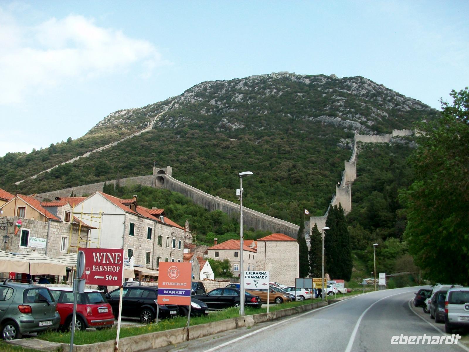 Wir starten gegen acht um die erste Insel dieser Reise zu besuchen die zu den schönsten der Adria zählt. Die Fahrt entlang der Küste mit Blick auf die Elaphiten verläuft ruhig und angenehm, und als wir im Ort Ston eine Pause einlegen, lacht schon wieder die Sonne. Wir bestaunen hier die mächtigen Schutzmauern, die Republik Ragusa gewann hier einst ihr Salz, auch Teile der Salinen sind noch erhalten geblieben.