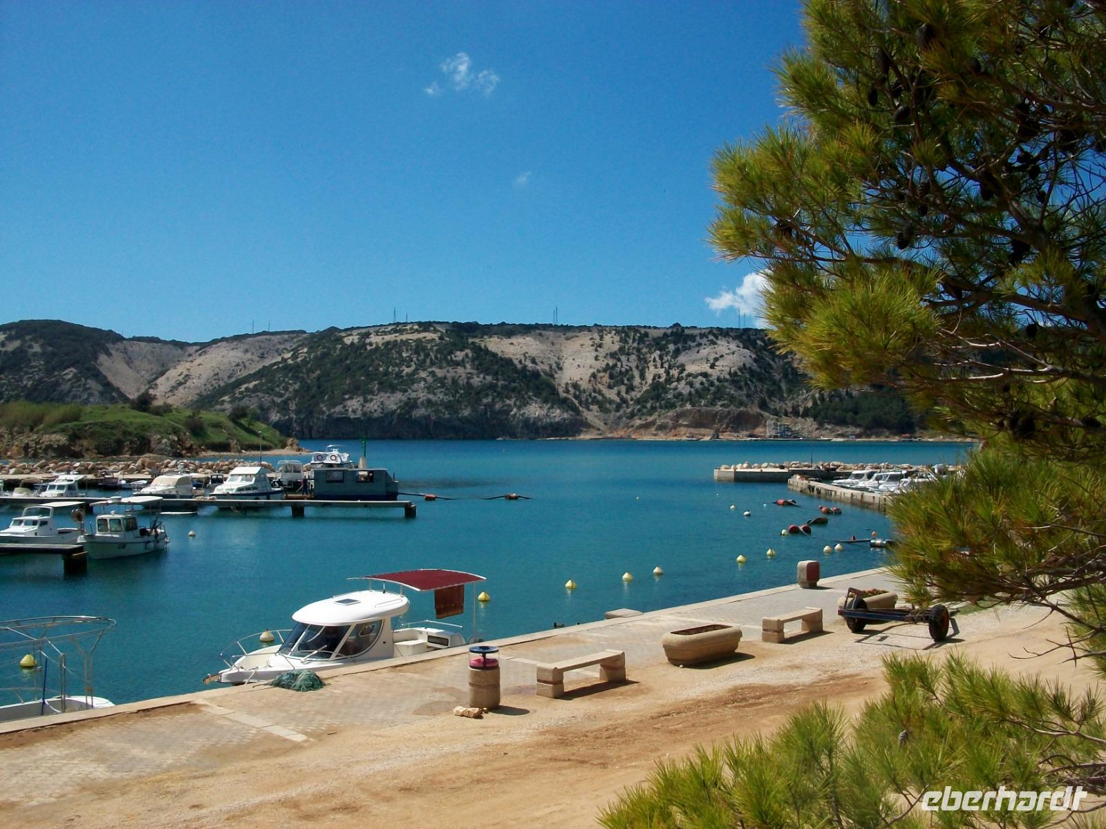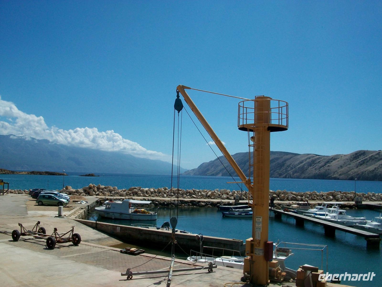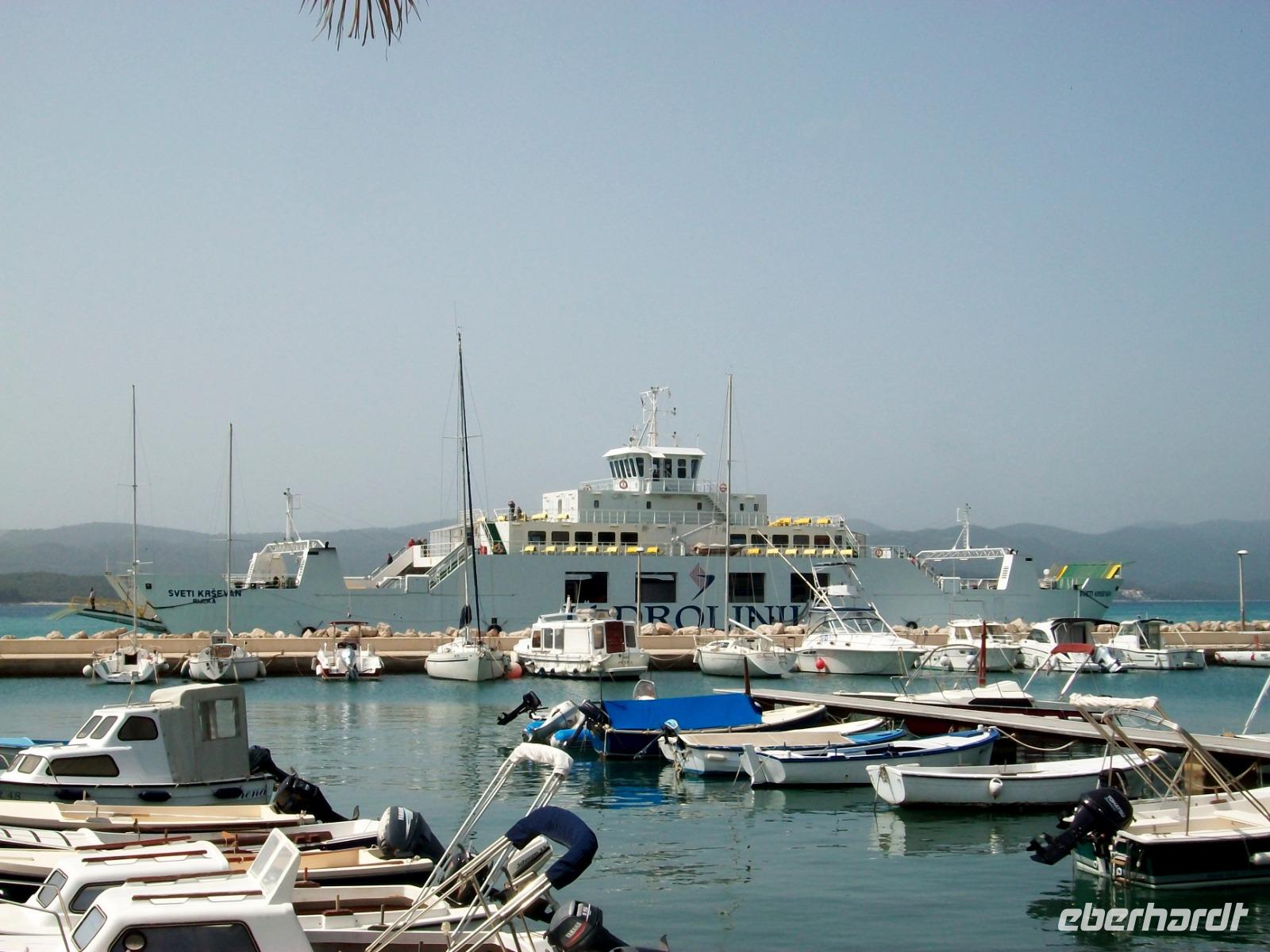 Gegen drei nehmen wir die Fahrt dann wieder auf; auf der Küstenstraße und zu Füßen der mächtigen Erhebungen des Velebitgebirges gelangen wir nach Stinica. Bald sehen wir die Fähre kommen, sie wird uns hinüber zu unserem nächste Ziel bringen, es ist die Insel Rab.