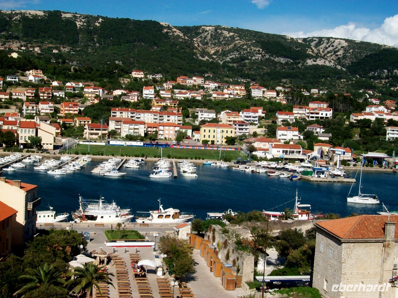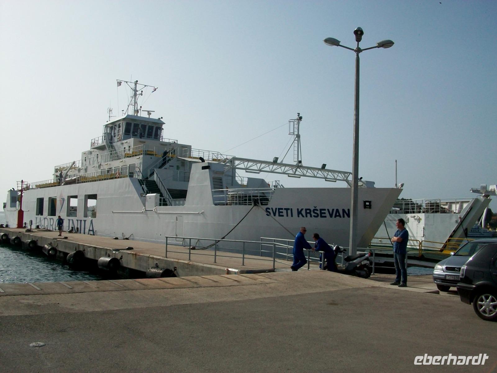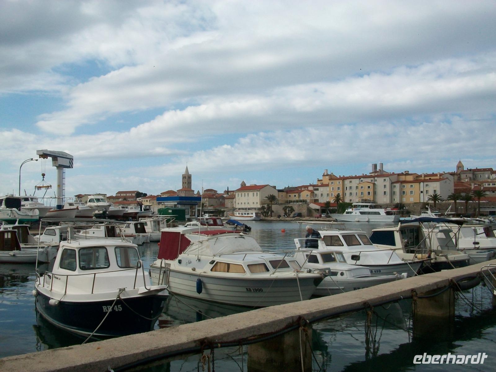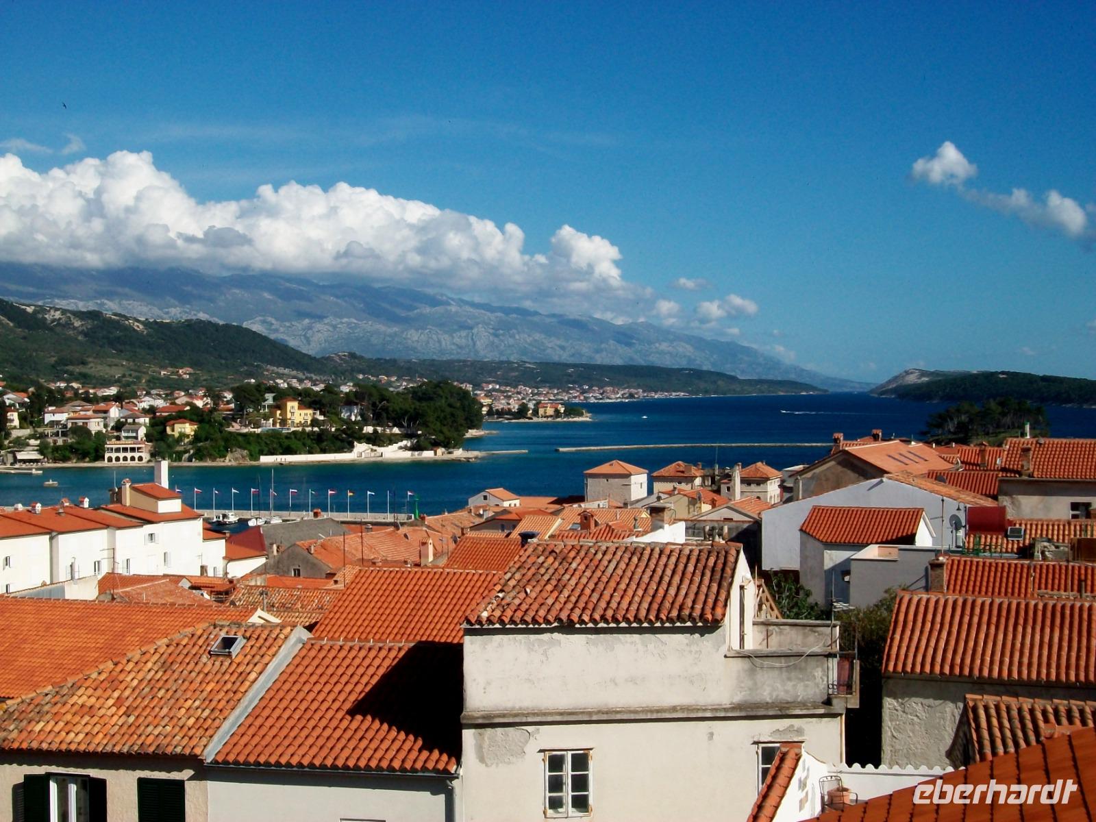Gegen drei nehmen wir die Fahrt dann wieder auf; auf der Küstenstraße und zu Füßen der mächtigen Erhebungen des Velebitgebirges gelangen wir nach Stinica. Bald sehen wir die Fähre kommen, sie wird uns hinüber zu unserem nächste Ziel bringen, es ist die Insel Rab.