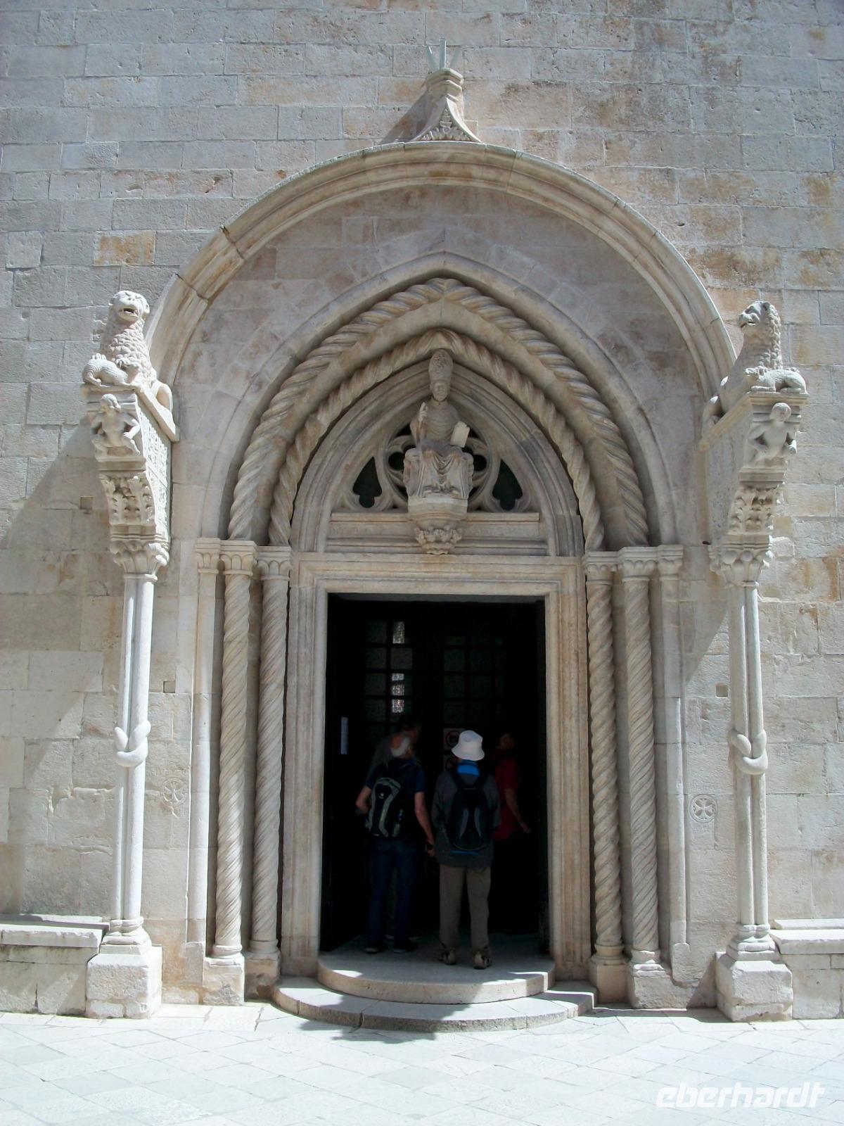 Schnell sind wir in die schmalen Gassen abgetaucht und fühlen uns hierbei wie die alten Venezianer. Doch bald sind wir am Hauptplatz angelangt, hier gibt es viele Cafés und zahlreiche Touristen gönnen sich eine schöne Zeit in der warmen Nachmittagssonne. Dijana nimmt uns mit zur Kathedrale und vor diesem schönen Bau erfahren wir einiges über das Gotteshaus und die phantastische Steinmetzarbeit des Meisters Radovan. An der schönen Promenade endet die Führung; wir gönnen uns noch etwas Freizeit und am späteren Nachmittag nehmen wir die letzte Etappe für heute in Angriff. Entlang schöner Buchten und malerisch vorgelagerter Inseln erreichen wir unser modernes Hotel bei Šibenik.