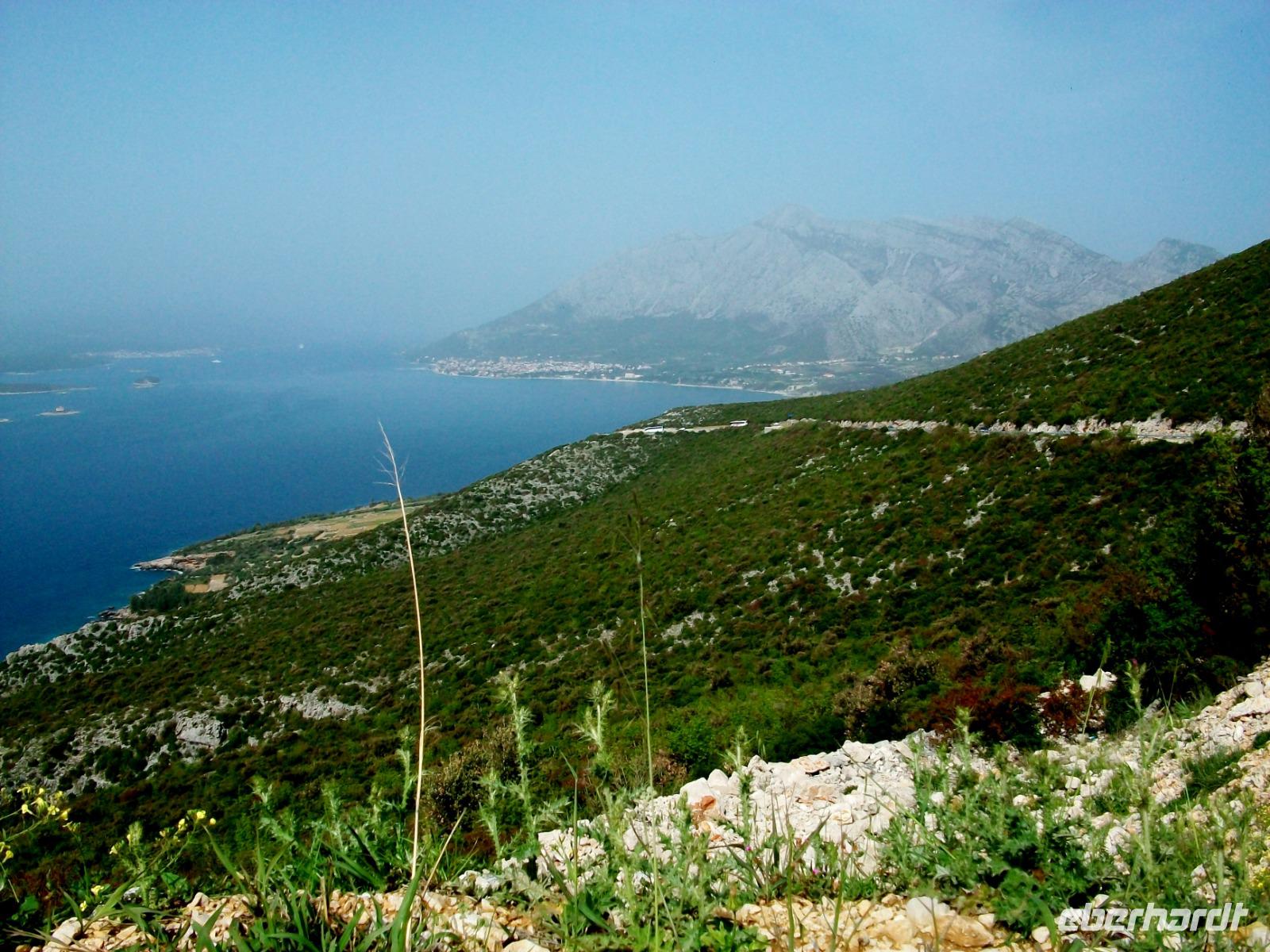 Aber all zu lange können wir uns hier nicht aufhalten, unser Weg ist noch weit und wir wollen ja auch rechtzeitig zum Abendessen anlangen. Was wir nun auf der Küstenstraße zu sehen bekommen ist aber auch wunderschön. Die Straße schlängelt sich durch die Berge, mal oben dann wieder unten am Meer, diese Fahrt ist wunderschön!