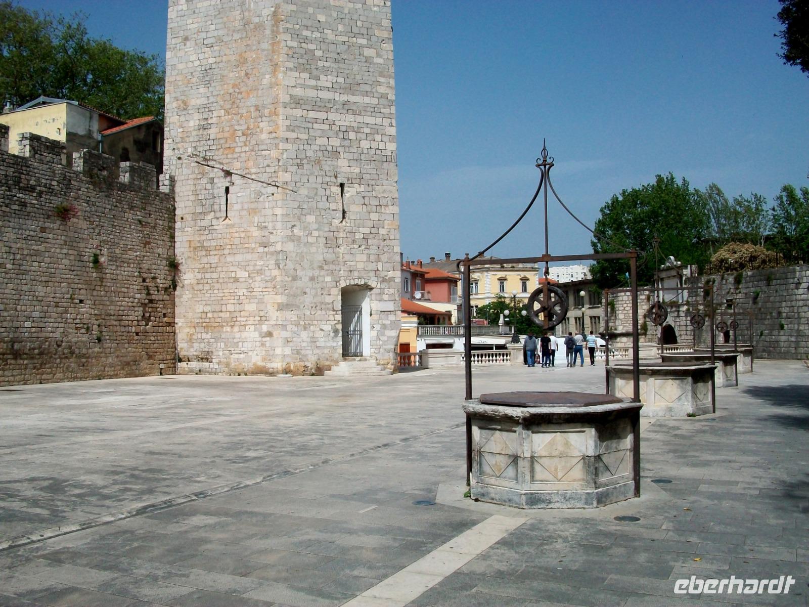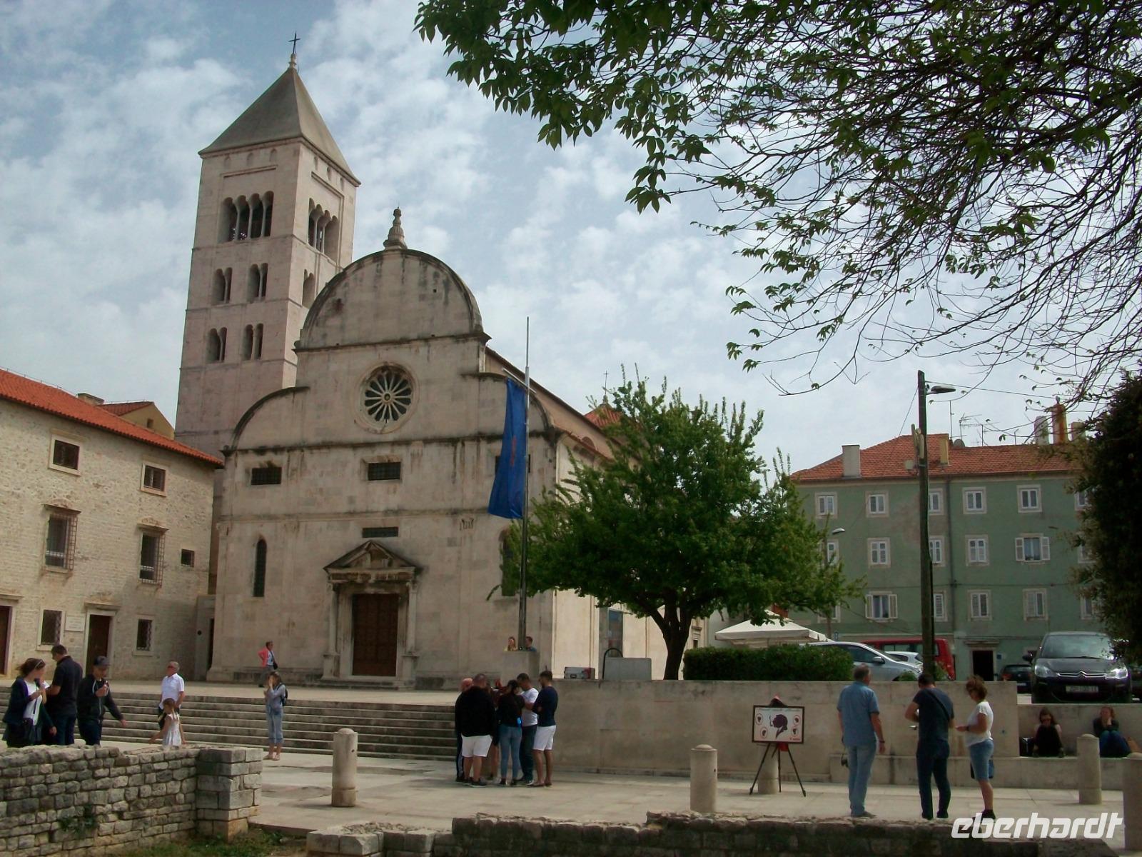 Dann geht es entlang der Promenade; bald sehen wir auf der linken Seite die Historie von Zadar. Die Römer hinterließen uns Teile des Forum Romanums, das frühe Christentum die Rotunde der Donatskirche und aus der Zeit von Romanik und Gotik stammt die Kathedrale der Stadt. Dieser Mix fasziniert; ein Bummel bringt uns dann zum Hauptplatz, hier endet die wissenswerte Führung.