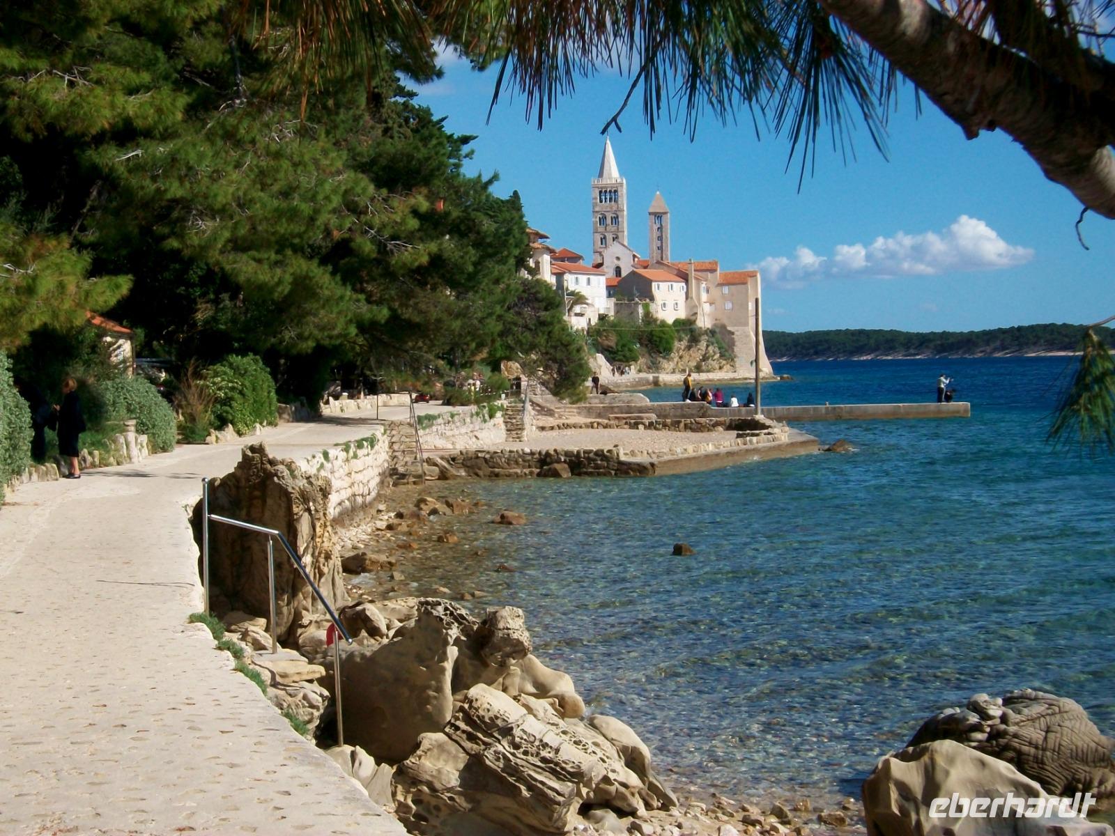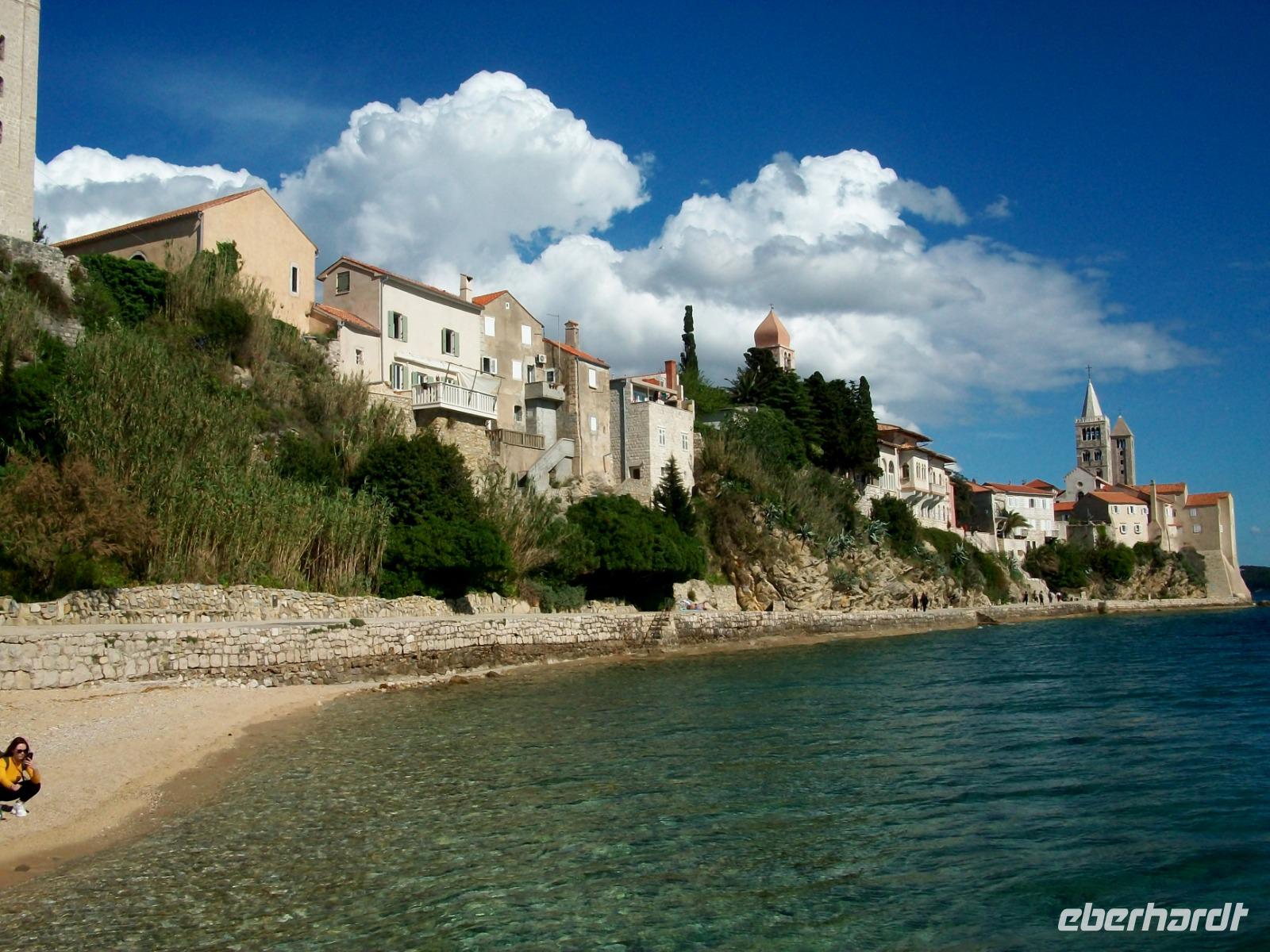 Dann kommt Frank mit dem Bus hinunter zum Hafen und es geht auf Inselrundfahrt. Bobana erzählt die Geschichte von Rab, zeigt uns die schöne Natur und wir erfahren von ihr viel über das Leben der Menschen von heute welches geprägt ist von den zahlreichen Touristen die die Insel besuchen. Auch am großen Badestand schauen wir vorbei, für Diesen oder Jenen vielleicht eine Anregung für weitere Urlaubspläne?