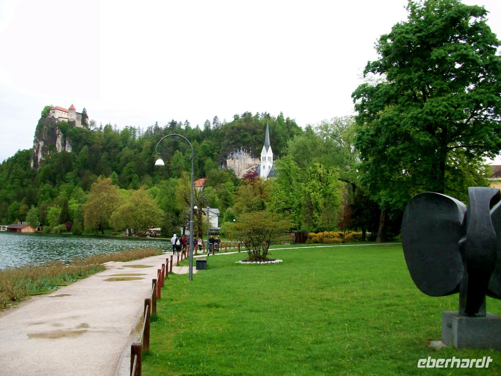 28.4.2019. Unser Gastland verabschiedet uns mit Sonnenschein, aber in den Berge haben sich schon mächtige Wolken aufgetürmt die bald ihre nasse Fracht entladen werden. Zunächst aber genießen wir noch einmal die wunderschönen Impressionen der Adria: Blaues Wasser kontrastiert mit den kahlen Inseln aus hellem Kalkstein, und die Uferstraße führt uns an zahlreichen schönen Orten vorbei. Hoch über dem Ende der Kvarner Bucht mit Blick auf Opatija, genehmigen wir uns eine Mittagspause um danach bald zur slowenischen Grenze zu gelangen. Nun hat sich der Himmel doch stark umwölkt und als wir an Ljubljana, der slowenischen Hauptstadt, vorbeifahren öffnen sich leider die Schleusen des Himmels. Das ist nun wirklich schade, denn unser letzter Ort auf der Reise Bled, hat doch einiges zu bieten. Doch Petrus gibt uns eine kleine Chance; nach dem Bezug der Zimmer hört der Regen vorerst auf und einem Bummel zum malerischen See steht nun nichts mehr im Weg. Der Blick zur Insel und hinauf zur Burg ist frei, und so kommen wir doch noch in den Genuss eines schönen, wenn auch kühlen Nachmittags in den slowenischen Bergen.