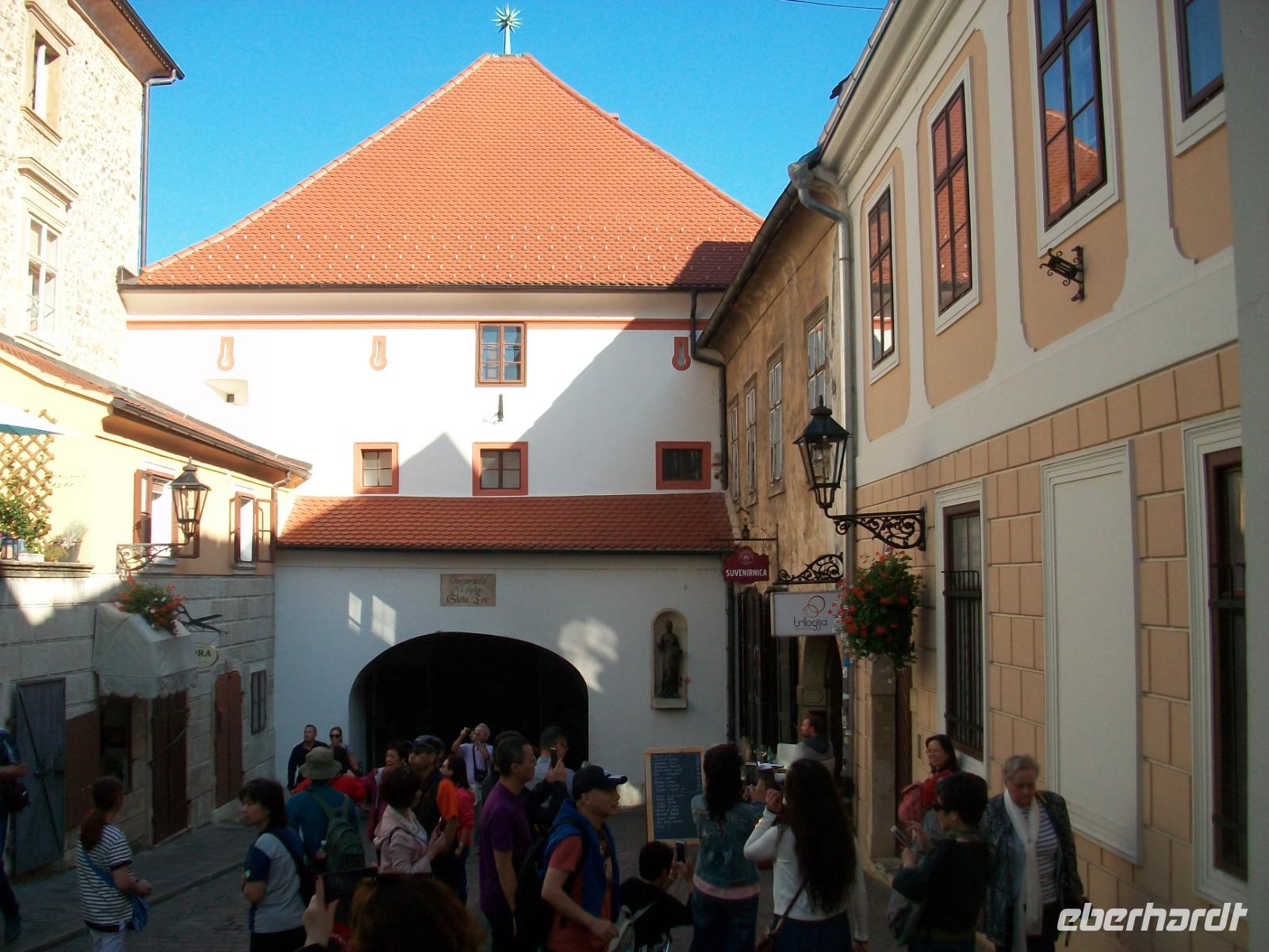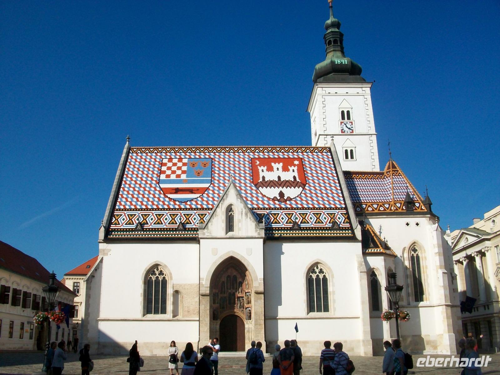 29.9.2019. Kleinere Nebelbänke aber auch die Sonne sind unsere Begleiter als wir das gastliche Semriach verlassen um hinunter ins Tal der Mur zu gelangen. Dort geht es bald auf die Autobahn, sie bringt uns vorbei an Graz in Richtung Slowenien. Bald nach der Grenze dehnt sich das fruchtbare Drautal vor unseren Augen aus, der Mais wartet noch auf seine Ernte und wir nehmen Kurs an Maribor und Ptuj vorbei in Richtung der kroatischen Grenze. Heute gibt es hier für uns keine längere Wartezeit und somit geht es flott weiter in Richtung Zagreb. Nun hat sich hier der Himmel doch wieder bezogen, das Medvenica - Gebirge liegt in Wolken, mal schauen wie es dahinter aussieht. Ein kurzer Imbiss und dann geht es erst einmal in Richtung Hotel. Hier erwarten wir noch die Gäste die mit dem Flugzeug anreisen, und wenig später stellt sich auch Darija ein, sie wird uns nun die Kroatische Hauptstadt näherbringen. Zunächst durchfahren wir den modernen Teil der Stadt aber bald gelangen wir in die Architektur die uns die Habsburger im ehemaligen Agram hinterließen. So manch schöne Fassade ist im Vorüberfahren zu sehen, später erschließen wir uns die Oberstadt zu Fuß. Wir beginnen mit der mächtigen Kathedrale um danach über den Markt Stolac hinauf zu gelangen. Durch das mittelalterliche Steintor hindurch gelangen wir zum Markusplatz mit der gleichnamigen Kirche. Staunend stehen wir vor den bunten Dachziegeln. Nur wenige Meter von hier gibt es einen wunderbaren Aussichtspunkt, von diesem belebten Platz aus haben wir einen grandiosen Blick auf die Dächer der Stadt. An diesem Ort verwöhnt uns nun die goldene Herbstsonne, denn längst schon haben sich alle Wolken verzogen.