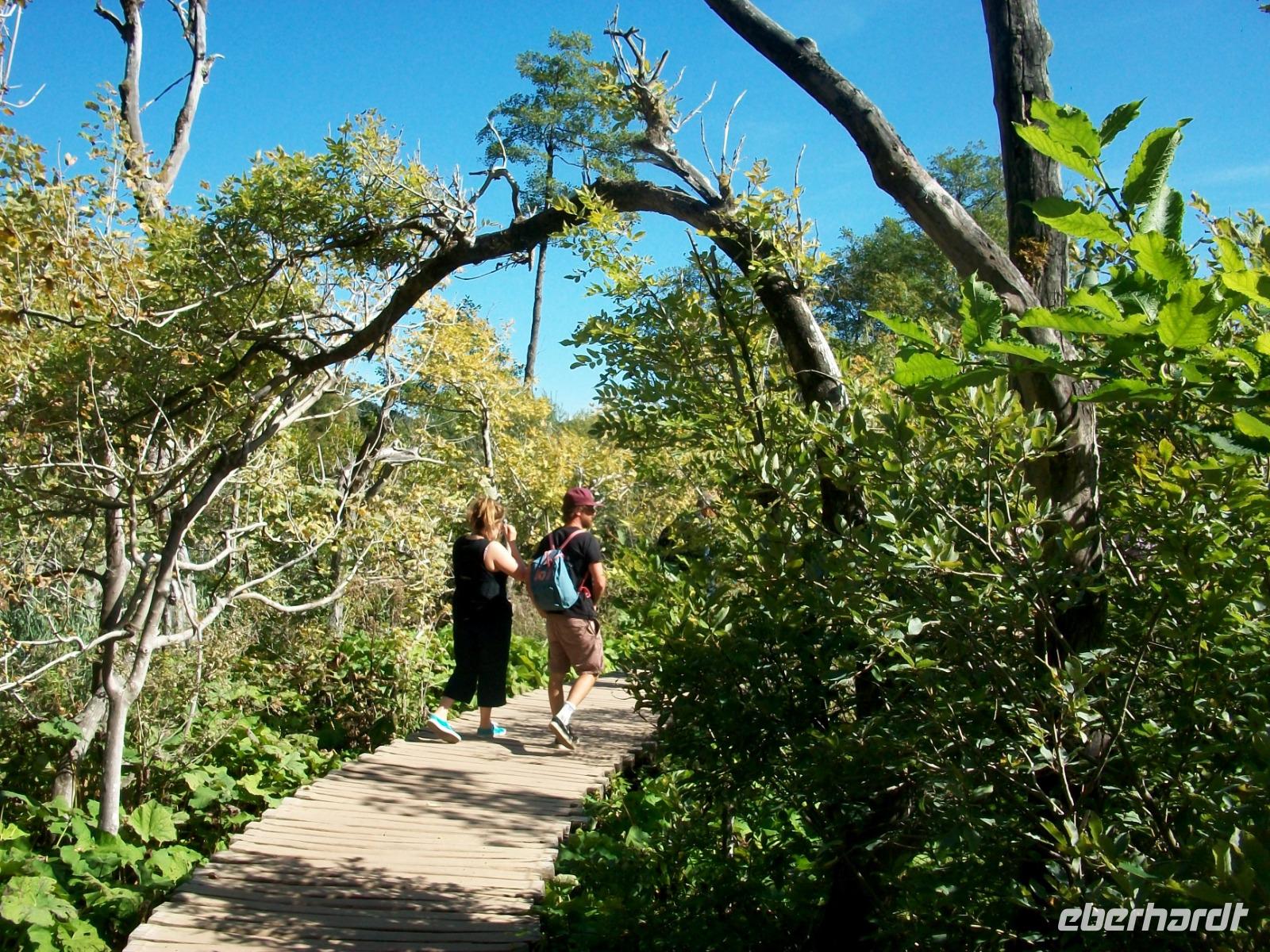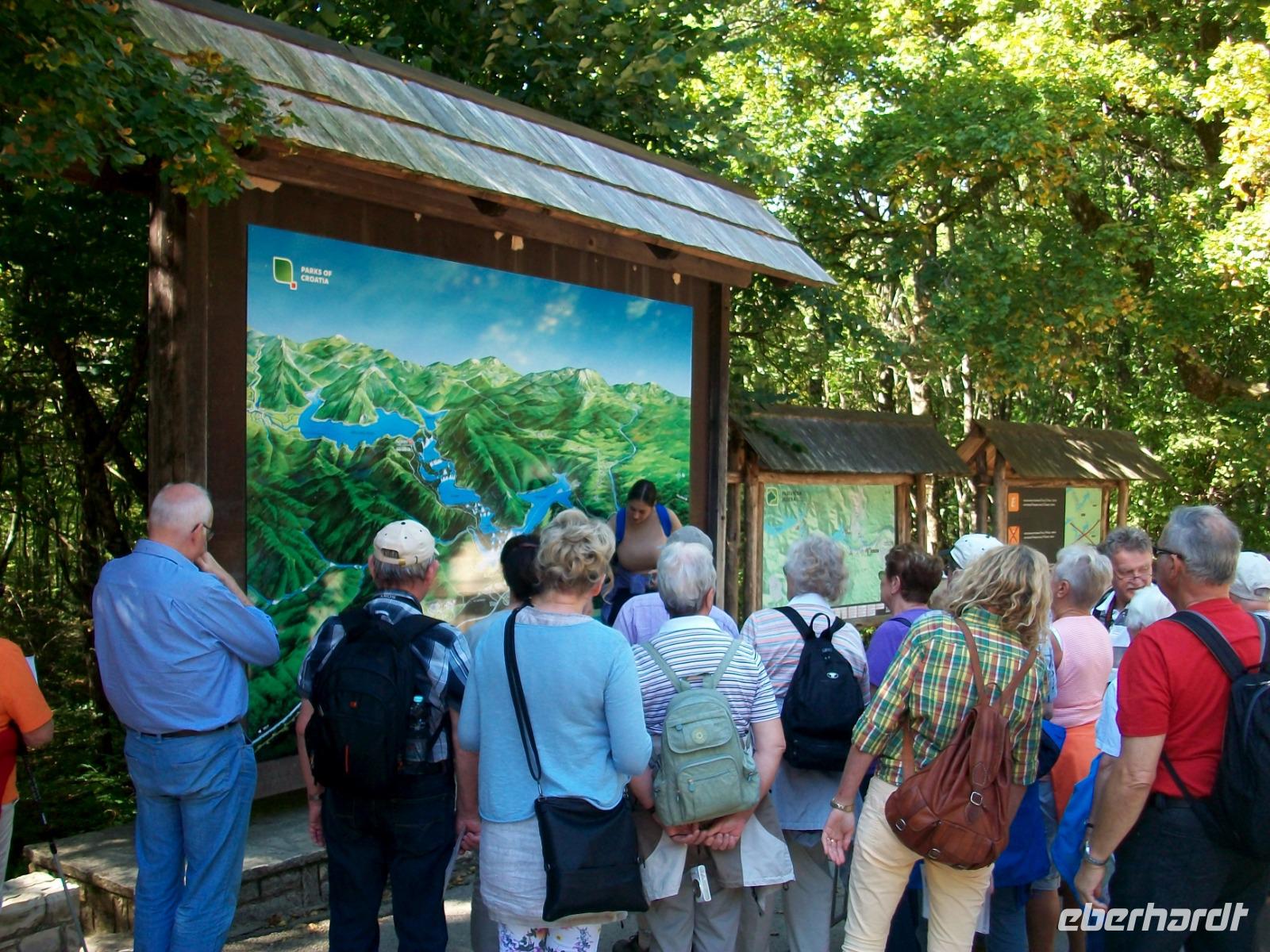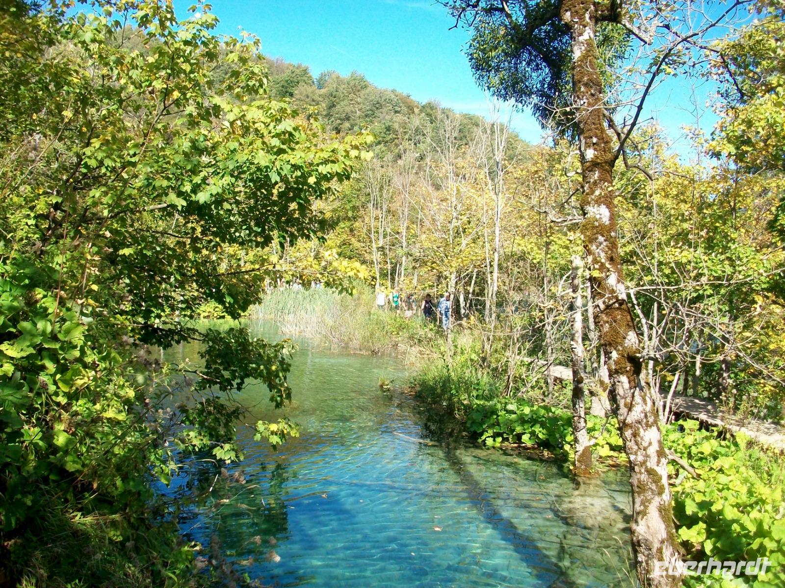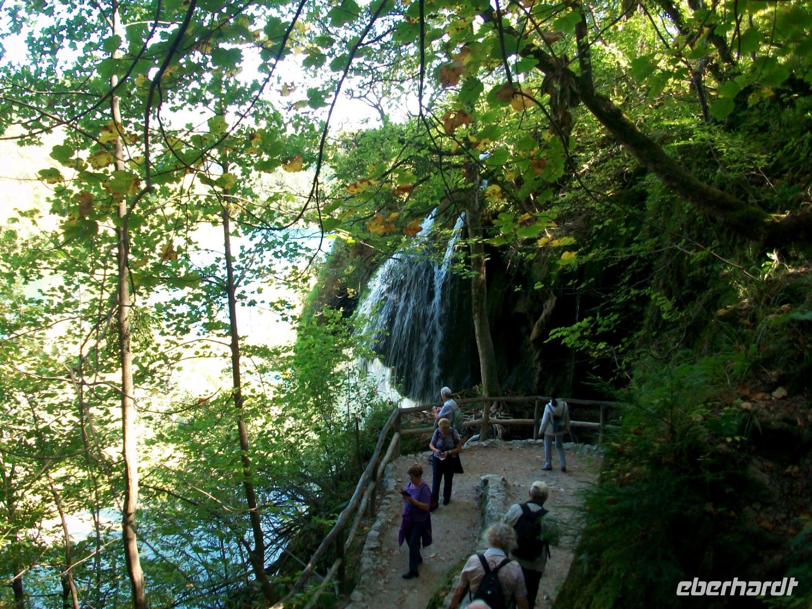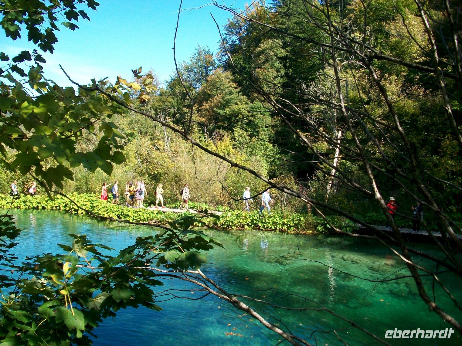 30.9.2019. Mein erster Blick aus dem Fenster zeigt mir die eben aufgegangene Sonne, es wird wohl einen weiteren schönen Tag geben, er soll uns willkommen sein, denn eines der großen Naturwunder Kroatiens ist unser heutiges Ziel. Gegen neun machen wir uns auf und unser Weg führt uns zunächst durch flacheres Land auf der Autobahn in Richtung des Ortes Karlovac. Diese ehemalige Festungsstadt der Habsburger passieren wir und sind fortan auf der Landstraße unterwegs. Einsame Dörfer, ein wenig Landwirtschaft und viel unberührte Natur - so präsentiert sich uns der Weg hinauf. Kurz vor dem Mittag langen wir in Plitvice an, das ist unser heutiges Ziel. Bevor wir uns aber aufmachen um in die Naturwunder einzutauchen, genehmigen wir uns eine kleine Stärkung. Doch dann geht es los, mit uns ist Ivana, sie wird uns auf dem Weg durch den Nationalpark begleiten. Mit einer kleinen Bahn gelangen wir hinauf zum obersten See, von hier führt uns der Weg bergab, immer entlang der türkisfarbenen Seen, zahlreichen Wasserfällen und viel schöner Natur. Eine vorsichtige Laubfärbung und reichlich Sonne bringt hier eine ganz besondere Stimmung hervor die wir mit allen Sinnen genießen können. Mal im Schatten, dann wieder durch sonniges Gebiet, so verläuft der Weg bis zum Koziaksee. Eine kleine Wartezeit und dann bringt uns das Boot hinüber zu den unteren Seen. Diese liegen in einem großen Canyon, viele Fische sonnen sich hier und weiter abwärts geht der Weg. Ganz zum Schluss unserer Tour sehen wir noch den Großen Wasserfall, atemberaubend fällt er von fast 80 Metern donnernd herab.