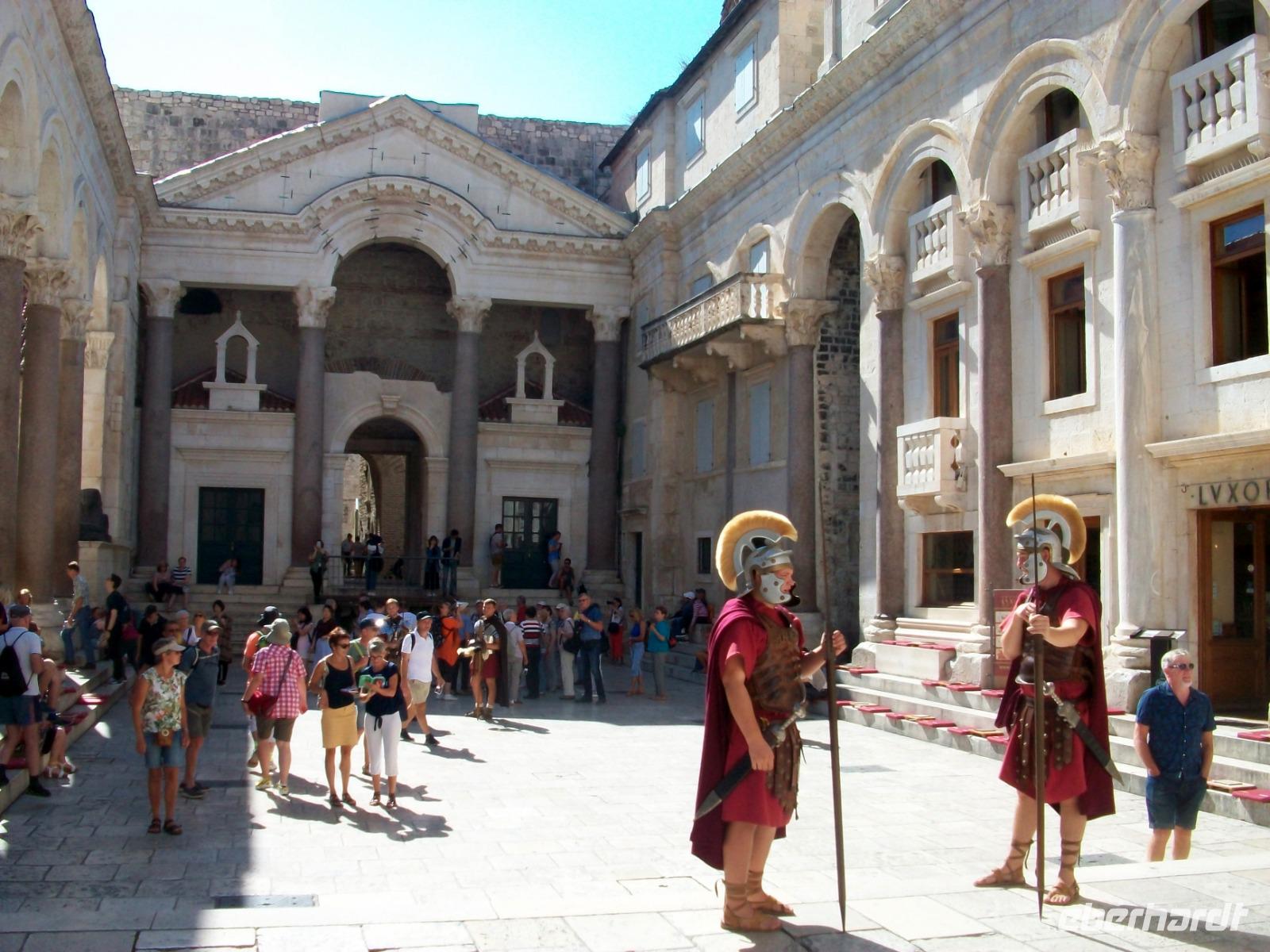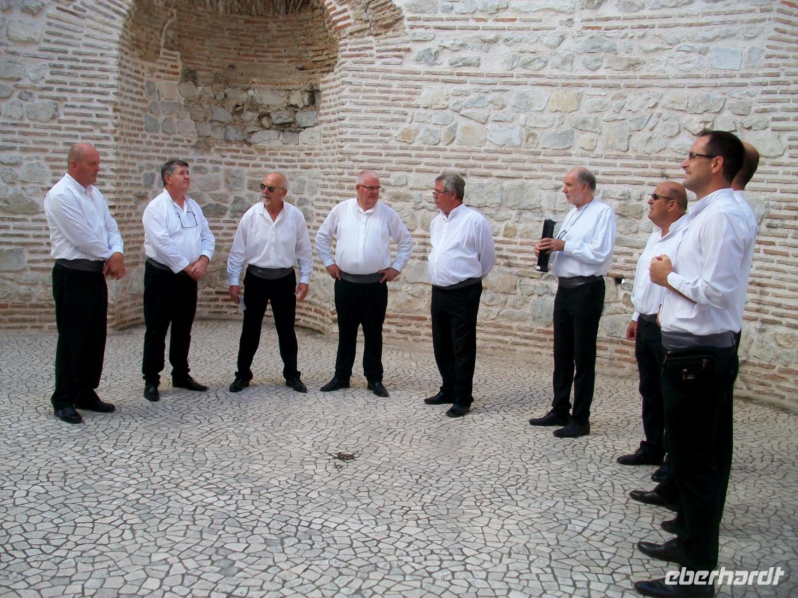 1.10.2019. Heute haben wir uns viel vorgenommen und somit müssen wir auch etwas früher aus den Federn, aber am Ende des Tages werden wir sagen können: Auch heute haben wir viel erlebt. Petrus hat uns am Vormittag wieder schönes Wetter beschert und so wird es auch bleiben. Zunächst geht es durch die unberührte Landschaft der Lika, mal Sonne dann wieder dichte Nebelbänke, so verläuft die Fahrt durch das Hinterland. Am Zrmanja - Fluss entlang erreichen wir bald die Adria, rechts zeigt uns die Insel Pag ihren kahlen Rücken und voraus liegt nun ein Stück Autobahn. Gegen Mittag langen wir in Split an; die Riva unter Palmen zeigt sich uns im Sonnenschein und als wir aussteigen, sind wir noch einmal im Sommer angelangt. Temperamentvoll werden wir von Dijana begrüßt, sie wird uns nun durch die uralten Mauern die uns der Römische Kaiser Diokletian hinterließ führen. Dabei müssen wir die Zeit um runde 1 700 Jahre zurückdrehen und staunen über das Leben welches die Menschen damals geführt haben. Der Weg führt uns durch geheimnisvolle Kellergewölbe und am ehemaligen Esszimmer vorbei, zu den Gemächern des Herrschers. Als wir am Platz Peristyl anlangen, sehen wir hier ein munteres Leben, wir können auch den sentimentalen Klängen einer Klapa lauschen. Doch immer weiter gehen es durch den Palast; durch eine schmale Gasse hindurch, am Jupitertempel vorbei, langen wir am Goldenen Tor an um schließlich am turbulenten Markt zu enden. Nun genehmigen wir uns bei viel Sonne noch ein wenig Freizeit, es gibt viel zu entdecken!