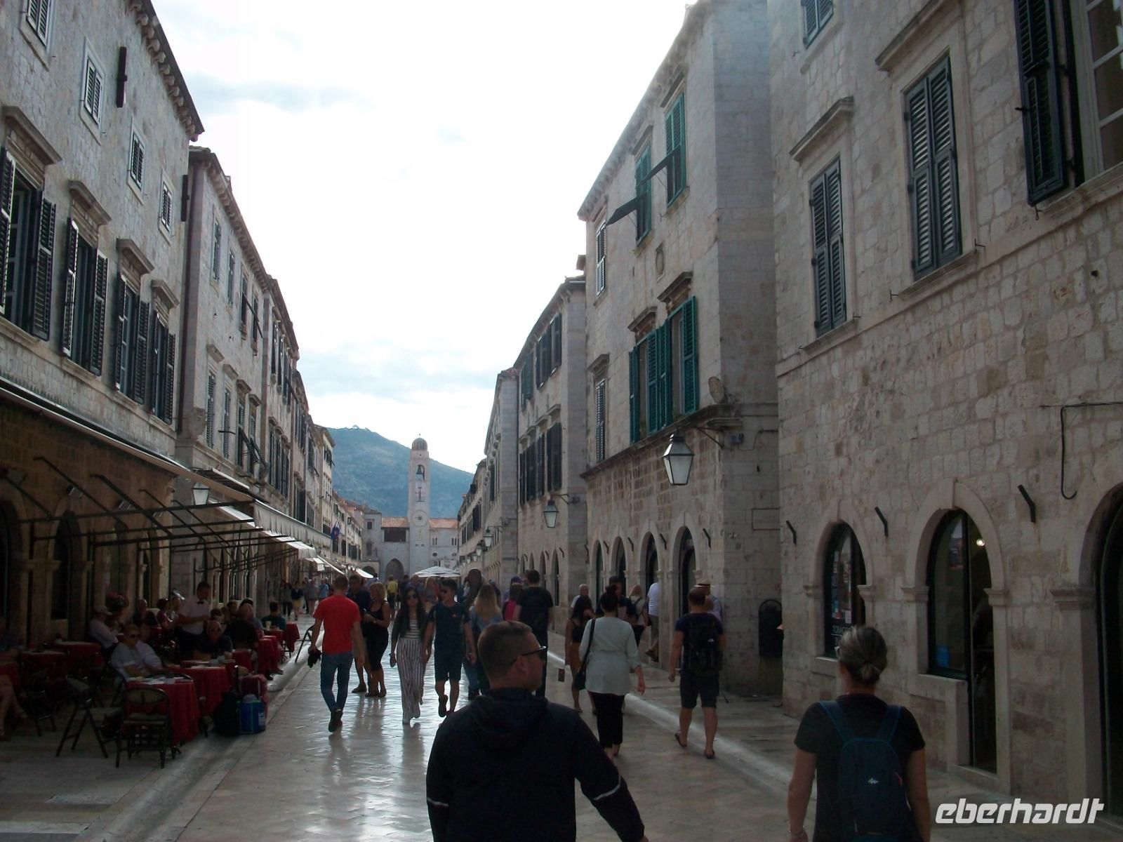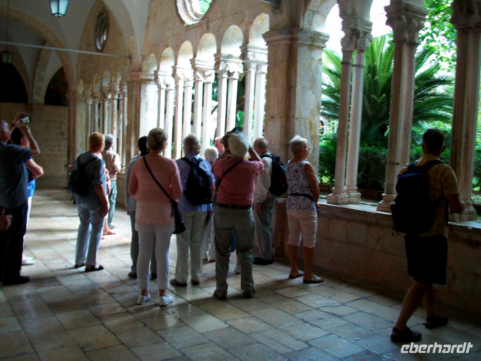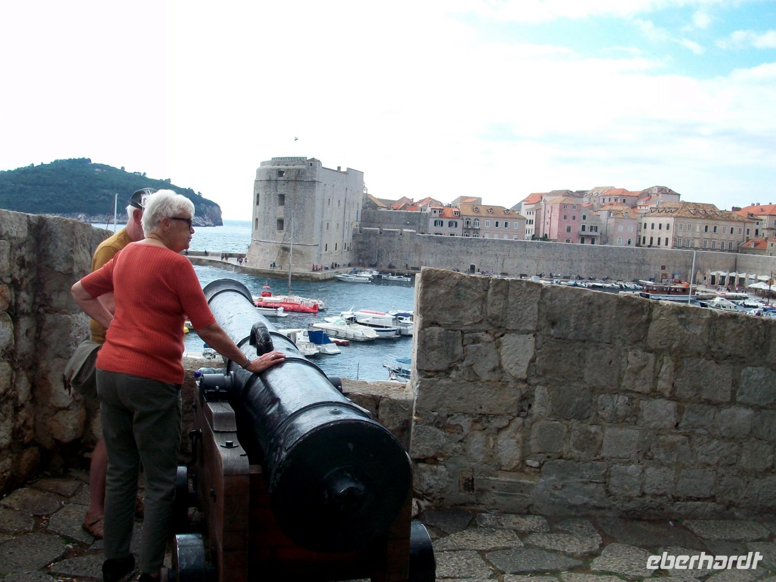 2.10.2019. Was ist nicht alles schon über diese Adriaperle geschrieben wurden? An diesem Vormittag machen wir uns auf um diesen besonderen Ort mit eigenen Augen zu betrachten. Der Bus bringt uns bis zur Altstadt, von weitem grüßen uns schon die mächtigen Mauern der Alten Ragusa. Am Pile - Platz werden wir von Antea Willkommen geheißen, sie wird uns auch heute eine vorzügliche Führerin sein. Schnell sind wir auf Stradun angelangt; vor uns wird der Blick frei bis zum Uhrturm. Zunächst verschwinden wir aber im Franziskanerkloster, hier besuchen wir die uralte Apotheke, ein erster Höhepunkt. Dann geht es hinauf zu den schmalen Gassen; mit Antea tauchen wir ab in eine längst vergangene Zeit. Bald sind wir an der Rolandsäule angelangt, dieses Stadtsymbol wir zurzeit aber renoviert. Dann geht es weiter; wir sehen die Kathedrale in einfachem Barockstil, gelangen in den Alten Hafen, hier schaukeln Ausflugboote auf den Wellen und schließlich gelangen wir zum Zollhaus gleich neben dem Uhrturm. Hier beenden wir die Tour mit Antea, nun ist es an der Zeit für eigene Erkundungen, hoffentlich spielt Petrus mit, Regen ist angesagt. Ob nun der Gang auf der Stadtmauer, eine Fahrt hinauf mit der Seilbahn zum Hausberg oder der Besuch der zahlreichen Museen und Kirchen, dieser wunderbaren Ort hat für jeden etwas zu bieten und wie im Flug vergeht die schöne Zeit.