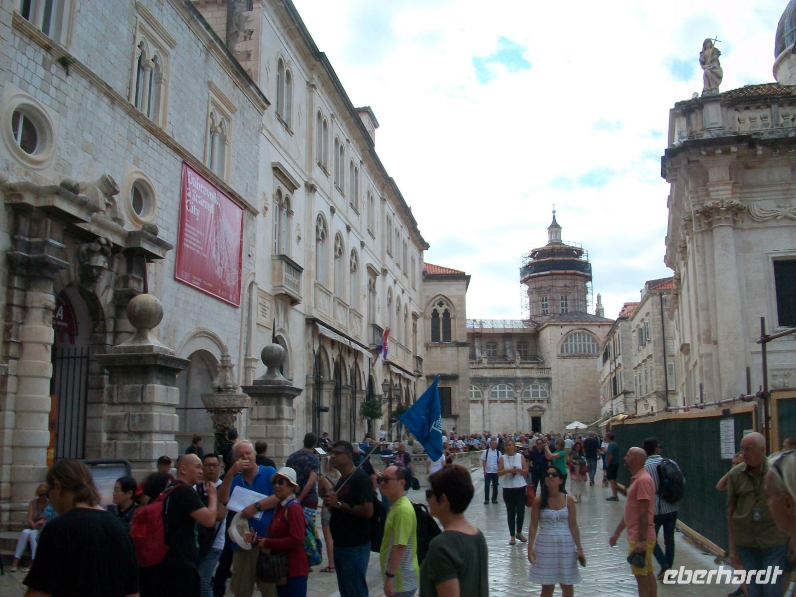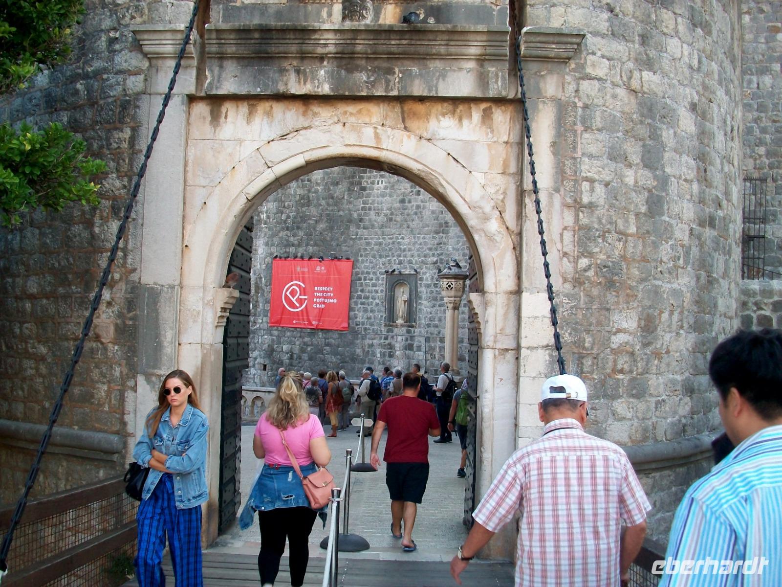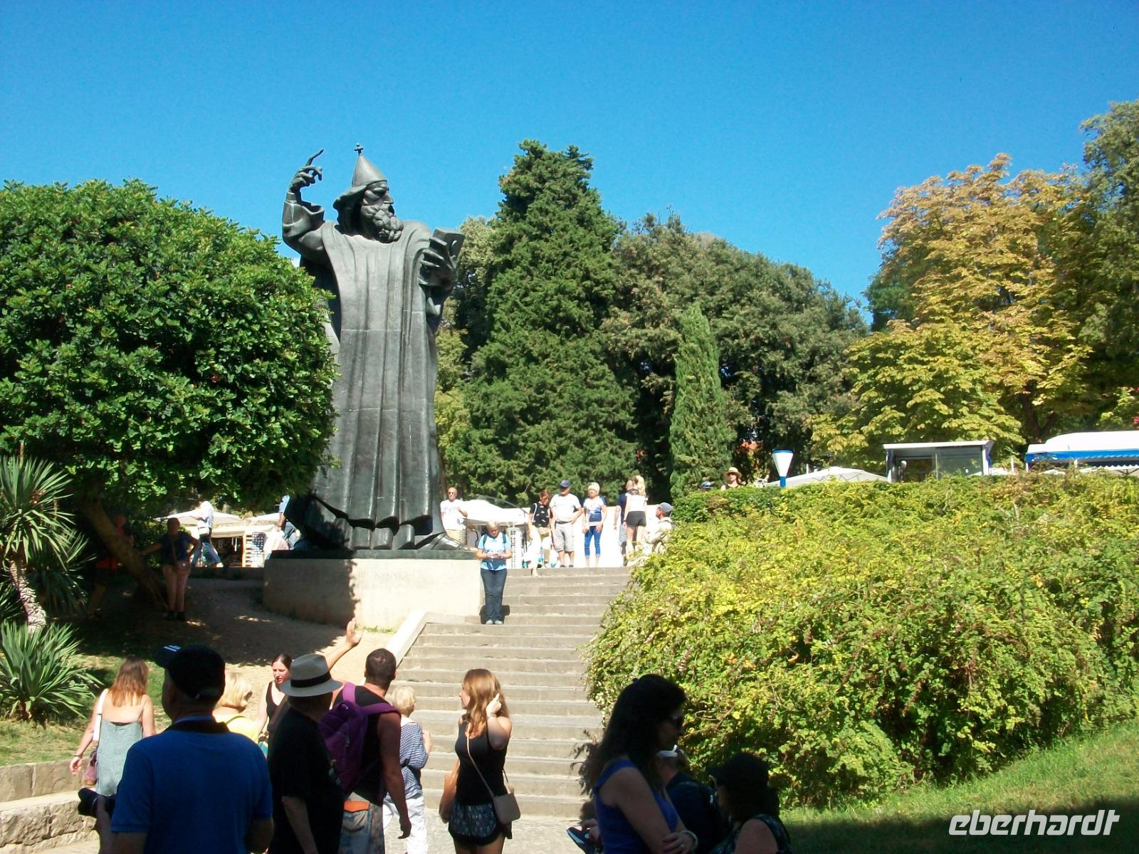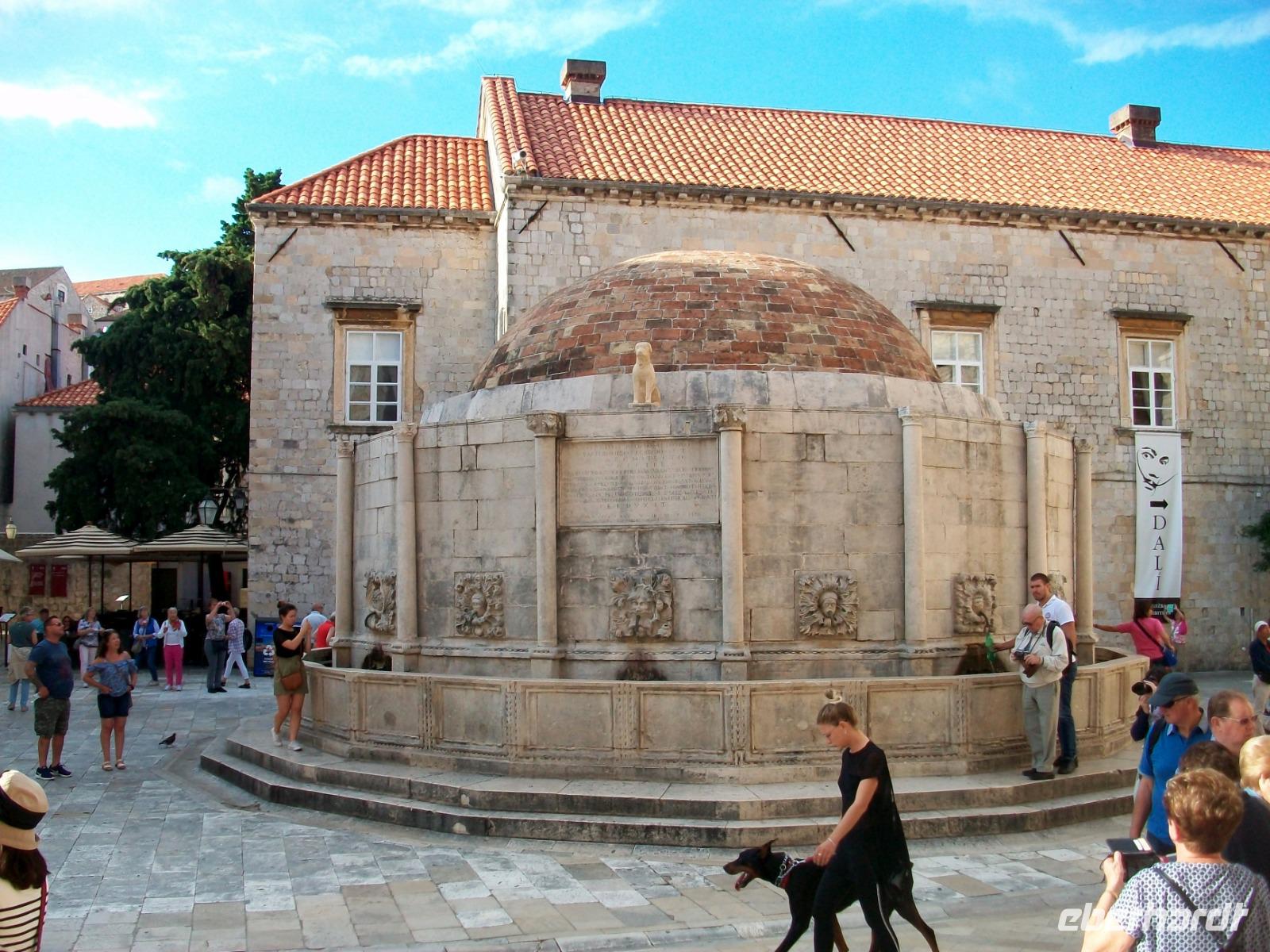 2.10.2019. Was ist nicht alles schon über diese Adriaperle geschrieben wurden? An diesem Vormittag machen wir uns auf um diesen besonderen Ort mit eigenen Augen zu betrachten. Der Bus bringt uns bis zur Altstadt, von weitem grüßen uns schon die mächtigen Mauern der Alten Ragusa. Am Pile - Platz werden wir von Antea Willkommen geheißen, sie wird uns auch heute eine vorzügliche Führerin sein. Schnell sind wir auf Stradun angelangt; vor uns wird der Blick frei bis zum Uhrturm. Zunächst verschwinden wir aber im Franziskanerkloster, hier besuchen wir die uralte Apotheke, ein erster Höhepunkt. Dann geht es hinauf zu den schmalen Gassen; mit Antea tauchen wir ab in eine längst vergangene Zeit. Bald sind wir an der Rolandsäule angelangt, dieses Stadtsymbol wir zurzeit aber renoviert. Dann geht es weiter; wir sehen die Kathedrale in einfachem Barockstil, gelangen in den Alten Hafen, hier schaukeln Ausflugboote auf den Wellen und schließlich gelangen wir zum Zollhaus gleich neben dem Uhrturm. Hier beenden wir die Tour mit Antea, nun ist es an der Zeit für eigene Erkundungen, hoffentlich spielt Petrus mit, Regen ist angesagt. Ob nun der Gang auf der Stadtmauer, eine Fahrt hinauf mit der Seilbahn zum Hausberg oder der Besuch der zahlreichen Museen und Kirchen, dieser wunderbaren Ort hat für jeden etwas zu bieten und wie im Flug vergeht die schöne Zeit.