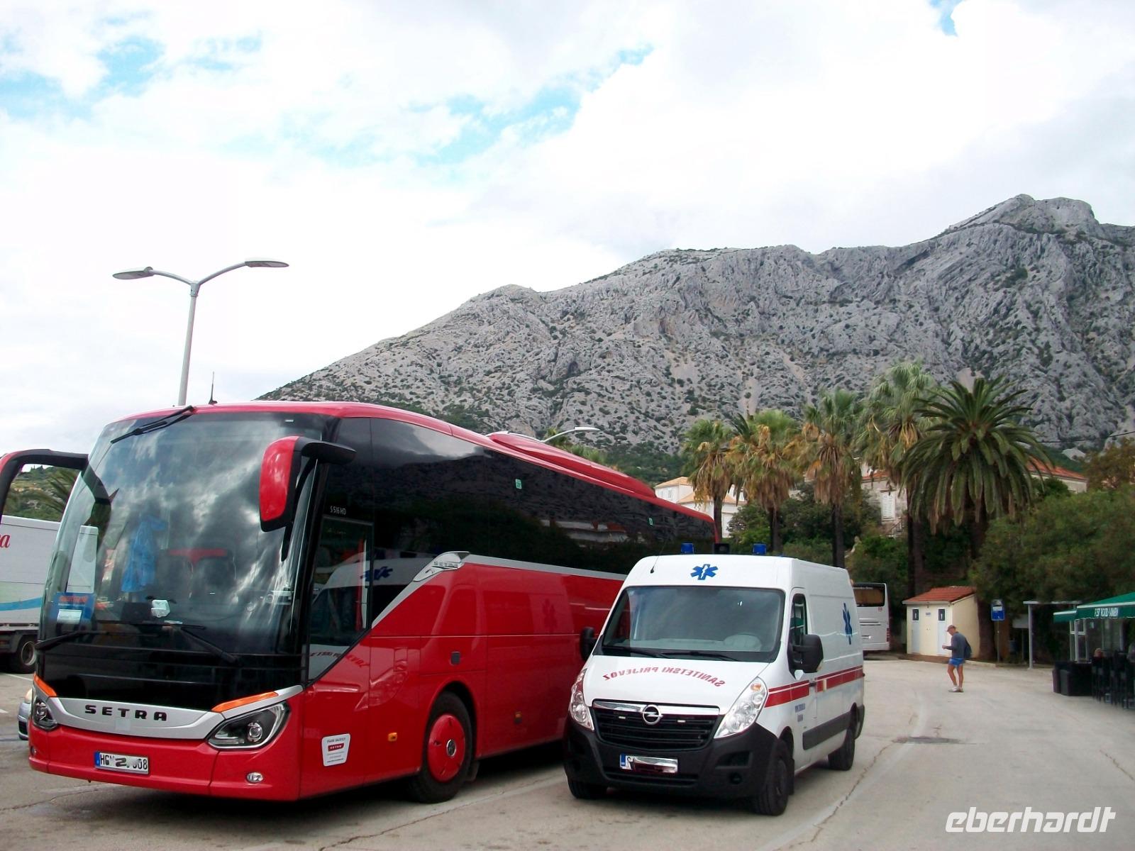 Am Nachmittag müssen wir die Fahrt wieder aufnehmen; bis zu unserem Ziel Dubrovnik ist es noch weit! Doch diese Fahrt entlang der Adriaküste wird nie langweilig; mit dem Blick auf die Inseln geht es am Meer entlang, dann sind wir wieder über hundert Meter über der Wasserfläche und staunen über malerische Buchten und die schönen Orte an denen wir vorbei kommen.