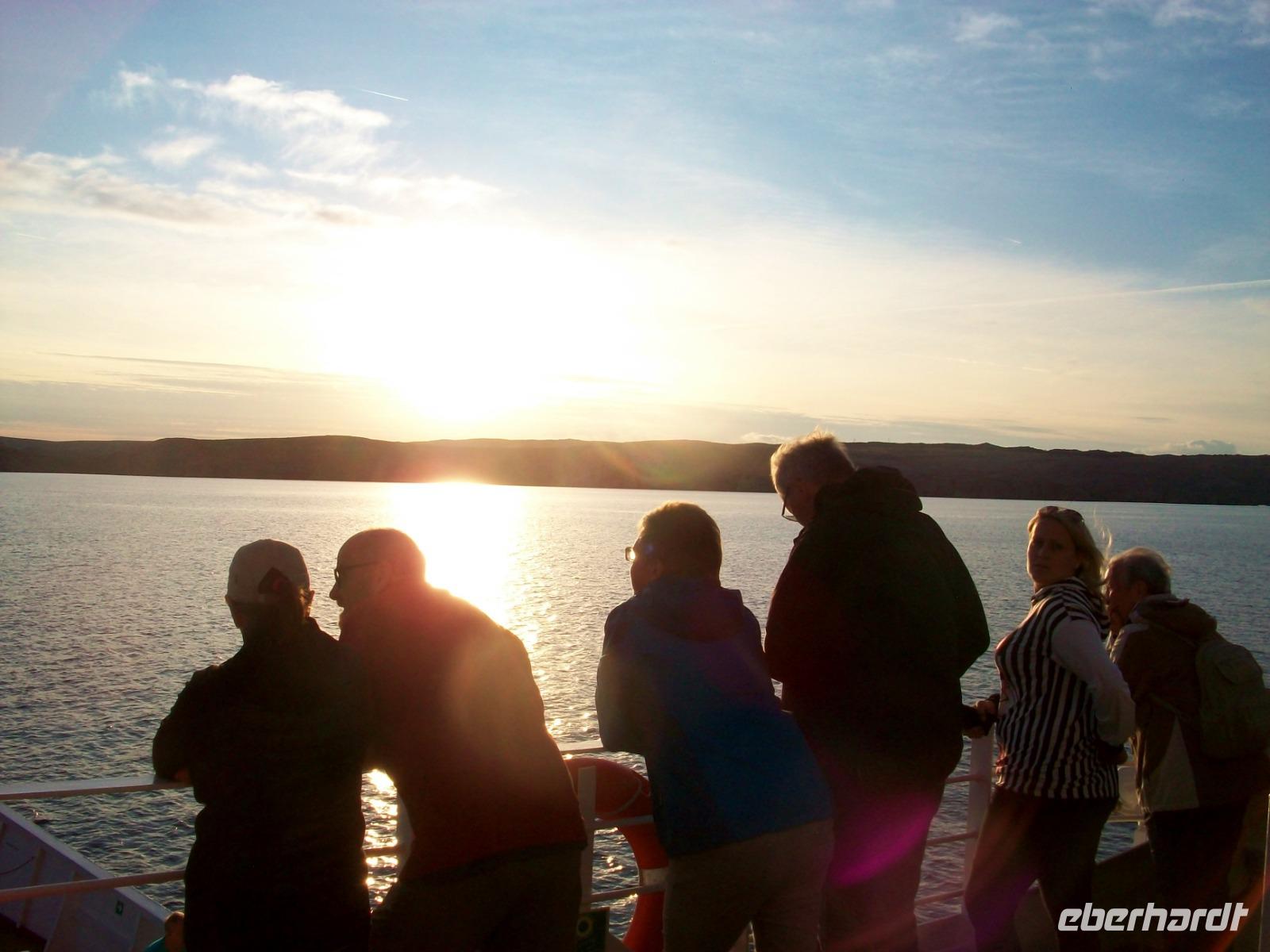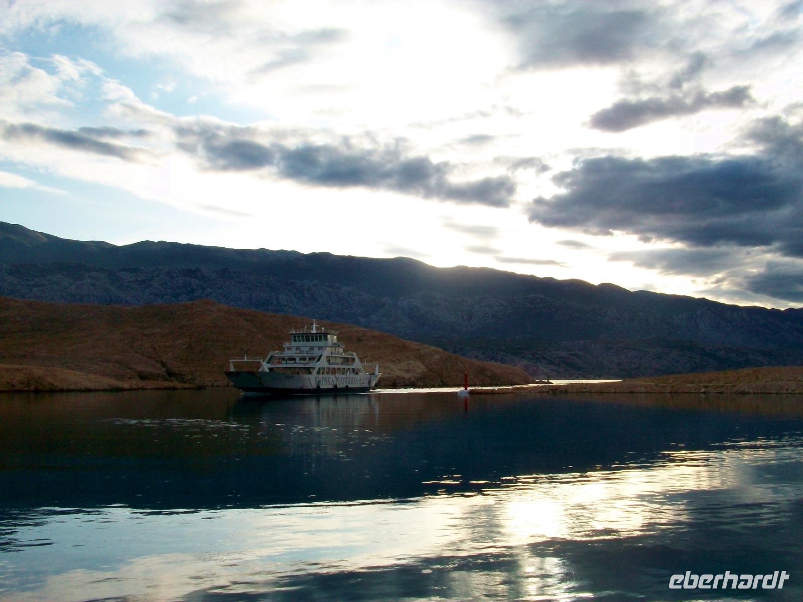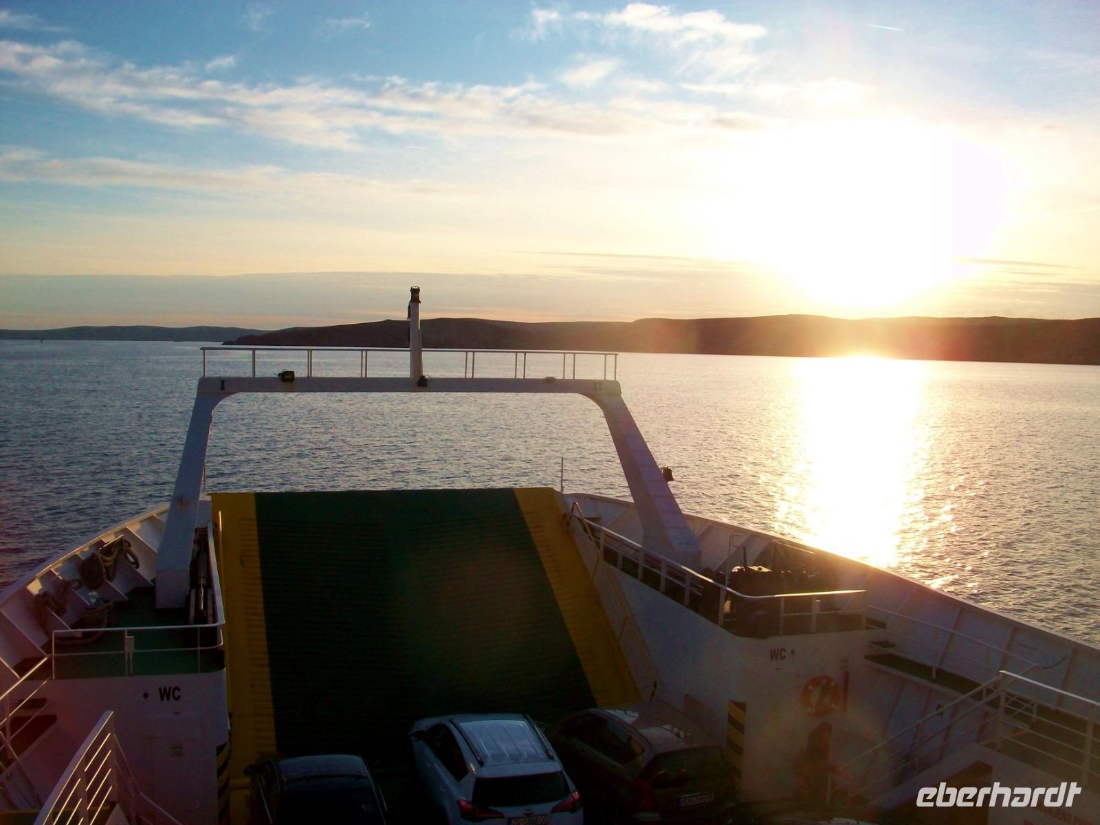 Die Nachmittagssonne sieht uns dann auf dem Weg, immer am Velebitgebirge entlang, bei unserer Fahrt zur Insel Rab. Sie hat sich dem Horizont zugeneigt als wir mit der Autofähre hinüber gelangen und als wir am Hotel ankommen, unsere Zimmer bezogen haben und uns das leckere Diner schmecken lassen, hat auch sie ihren Tageslauf beendet und ist im Meer versunken.