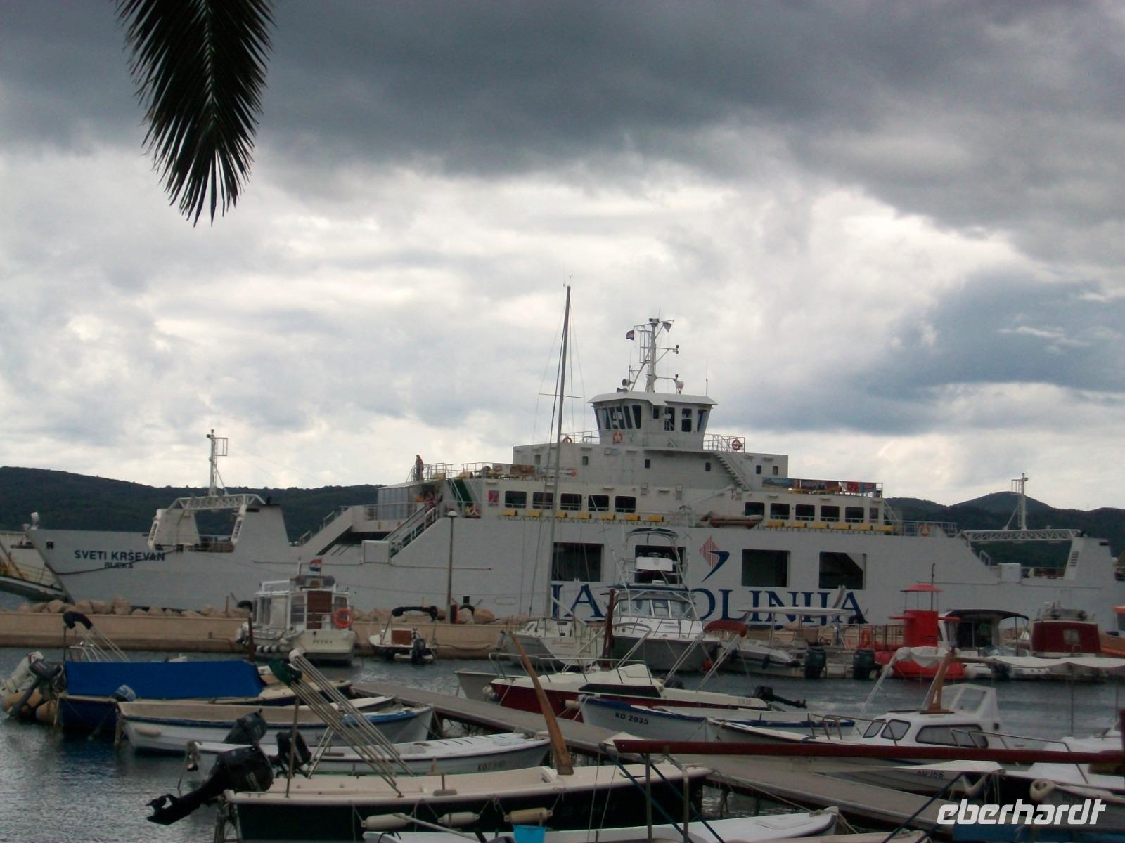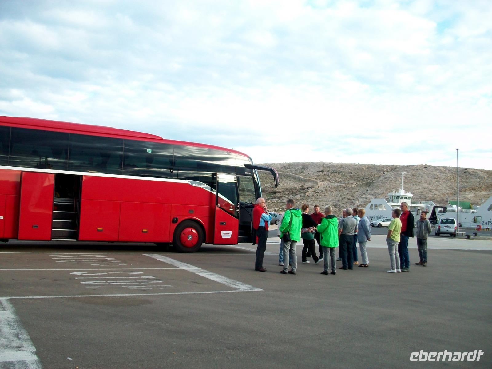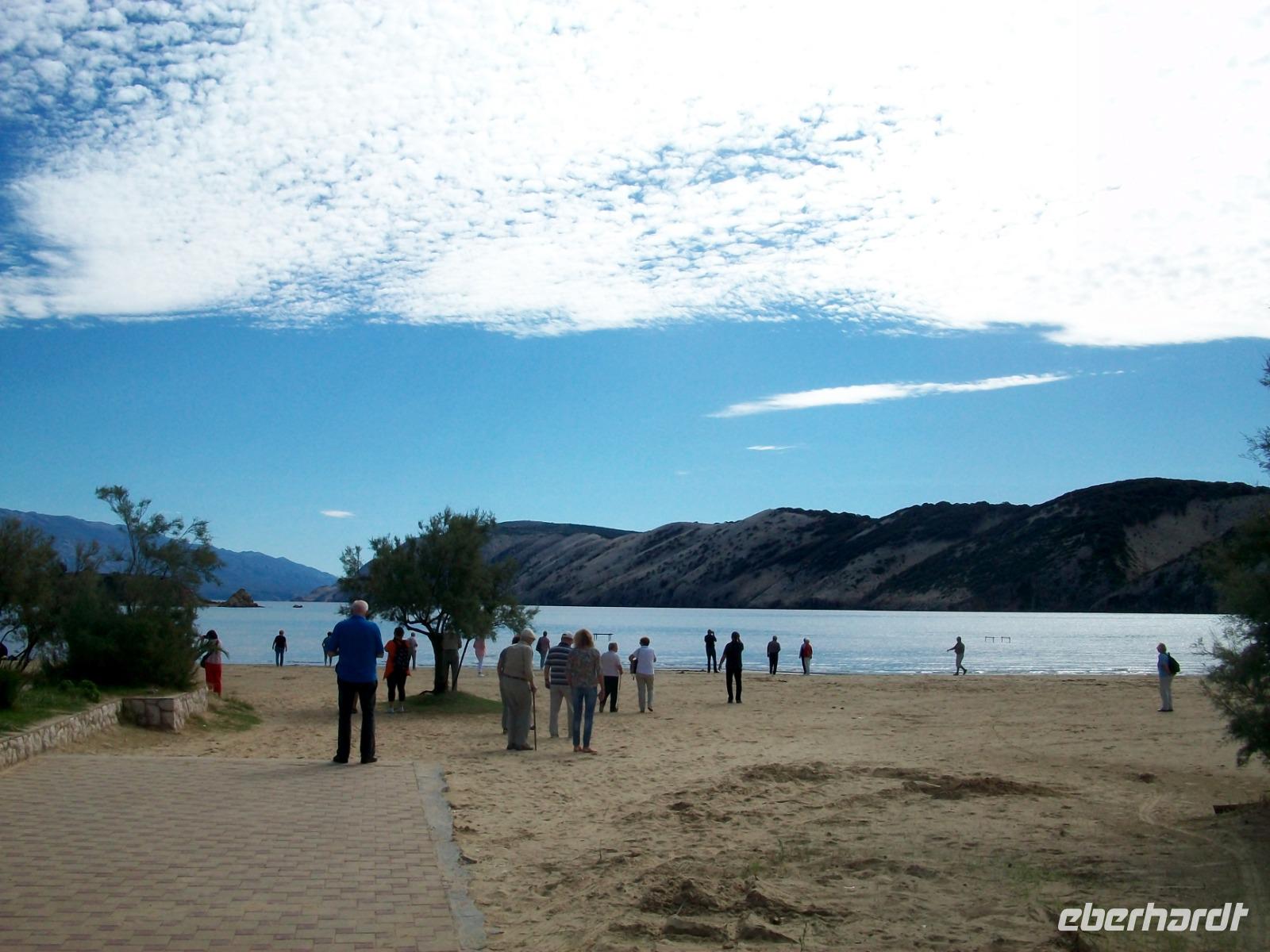 Die Nachmittagssonne sieht uns dann auf dem Weg, immer am Velebitgebirge entlang, bei unserer Fahrt zur Insel Rab. Sie hat sich dem Horizont zugeneigt als wir mit der Autofähre hinüber gelangen und als wir am Hotel ankommen, unsere Zimmer bezogen haben und uns das leckere Diner schmecken lassen, hat auch sie ihren Tageslauf beendet und ist im Meer versunken.