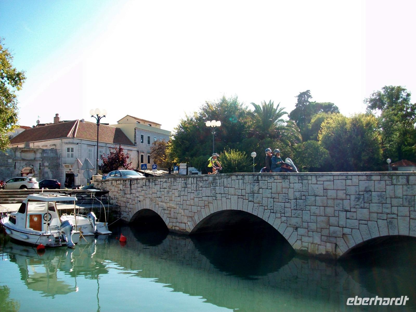 Wir starten vom Park als die Invasion der Touristen beginnt und nehmen Kurs in Richtung Norden. Bald sehen wir auf der rechten Seite die mächtige Bergkette des Velebits an dessen Flanke wir am Nachmittag noch eine weiteres gutes Stück gen Norden eilen werden. Doch zunächst wollen wir uns eine weitere faszinierende Stadt anschauen: Zadar.