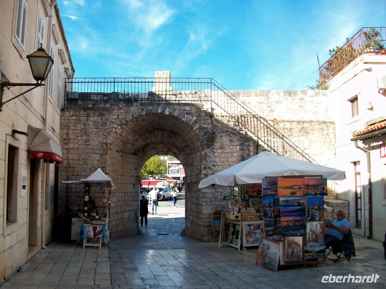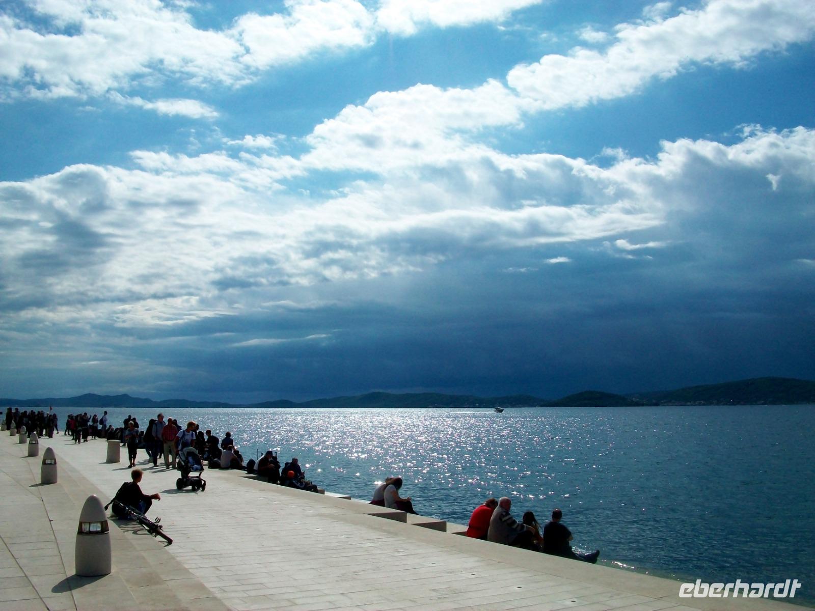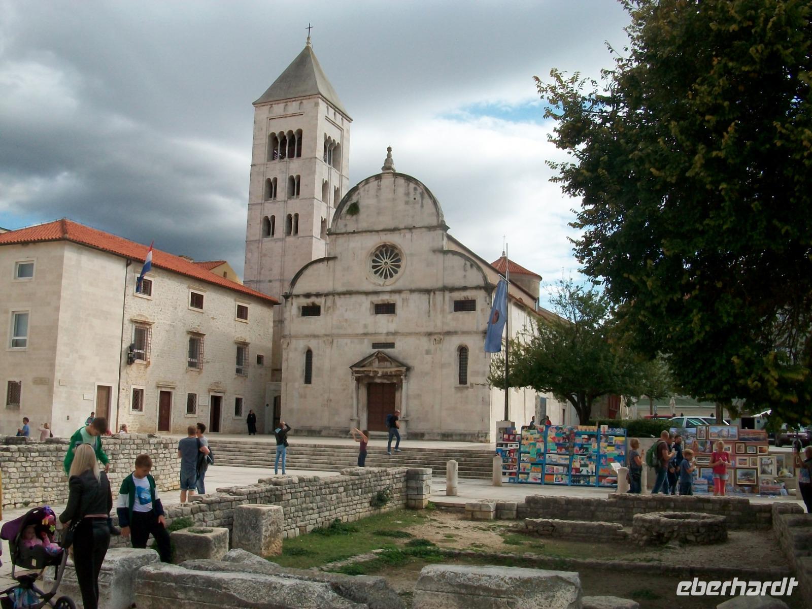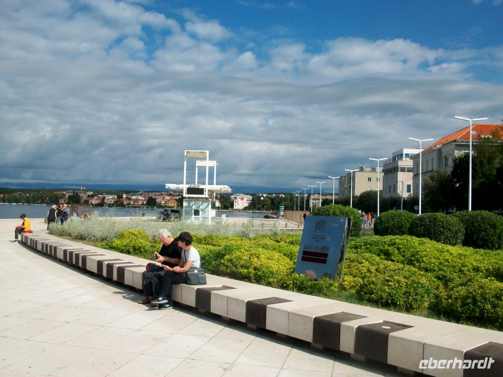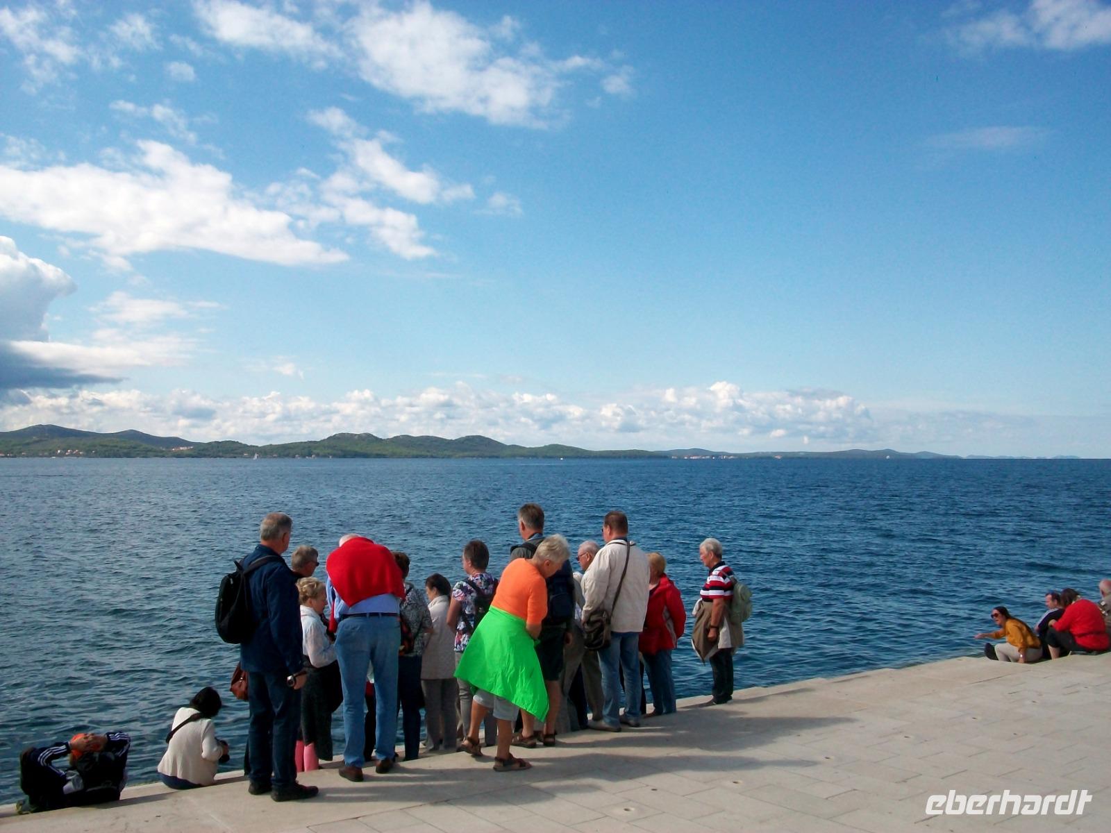 Pünktlich langen wir an und werden hier schon von Andela erwartet, sie wird uns nun diese besondere Stadt zeigen. Zunächst gelangen wir zur Meeresorgel, ein Musikinstrument auf welchem die Adria höchst selbst spielt und dabei recht schräge Töne hervorbringt. Dann gelangen wir über die schöne Promenade zu einem überwältigenden Panorama. Vor uns wird der Blick frei auf die Rotunde der Donatskirche, den Bischofspalast und den Glockenturm der Kathedrale. Wir hören hier den Erklärungen unsere Führerin zu und stehen dabei auf den Resten des Forum Romanum, jahrtausendealte Geschichte wir hier greifbar!