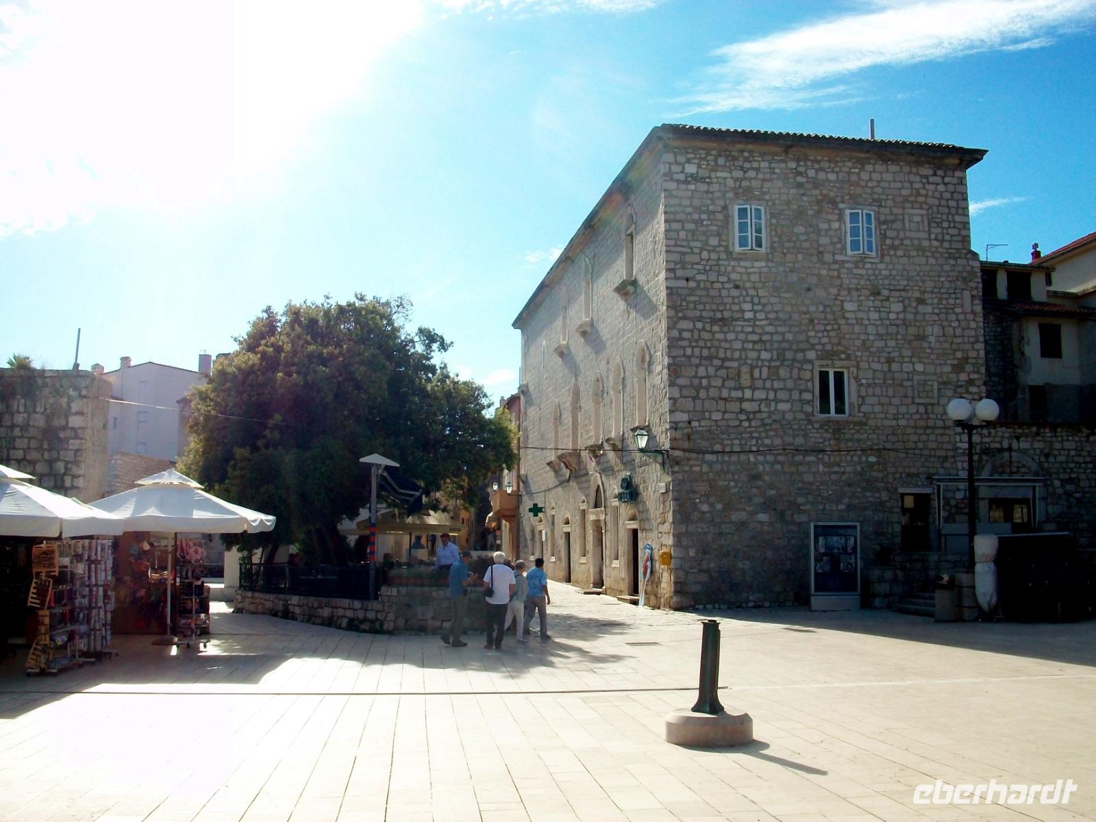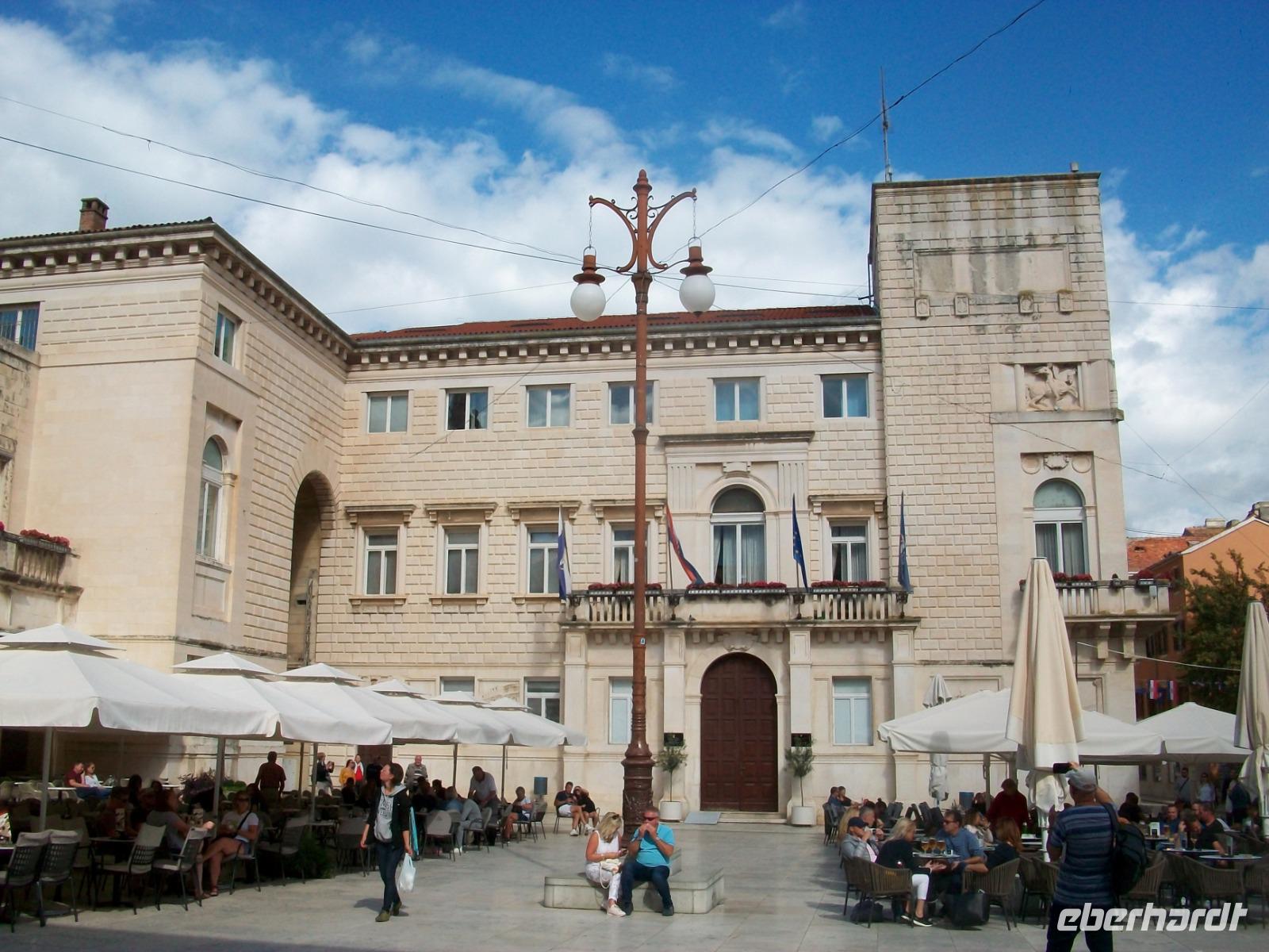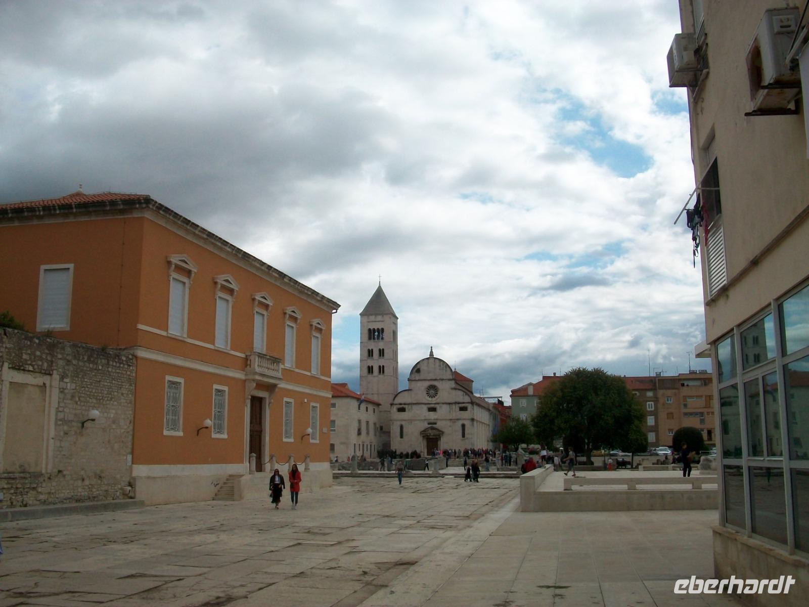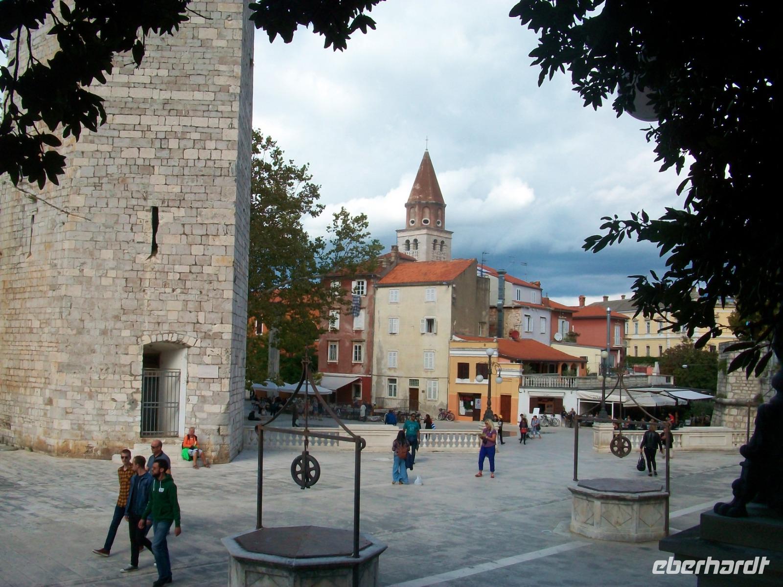 Noch ein Stück Weg und wir langen am Hauptplatz an; es ist das administrative Zentrum der Stadt und der muntere Treffpunkt zahlreicher Touristen und Einheimischer gleichermaßen die hier gemeinsam den sonnigen Nachmittag bei einer Tasse Kaffee genießen, so auch wir. Nachdem sich Andela von uns verabschiedet hat, genehmigen wir uns hier in Zadar noch eine schöne Zeit.