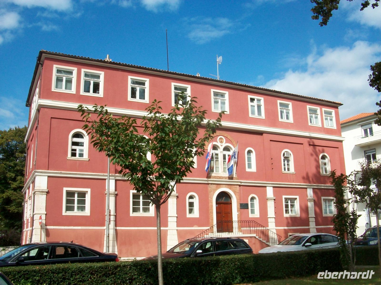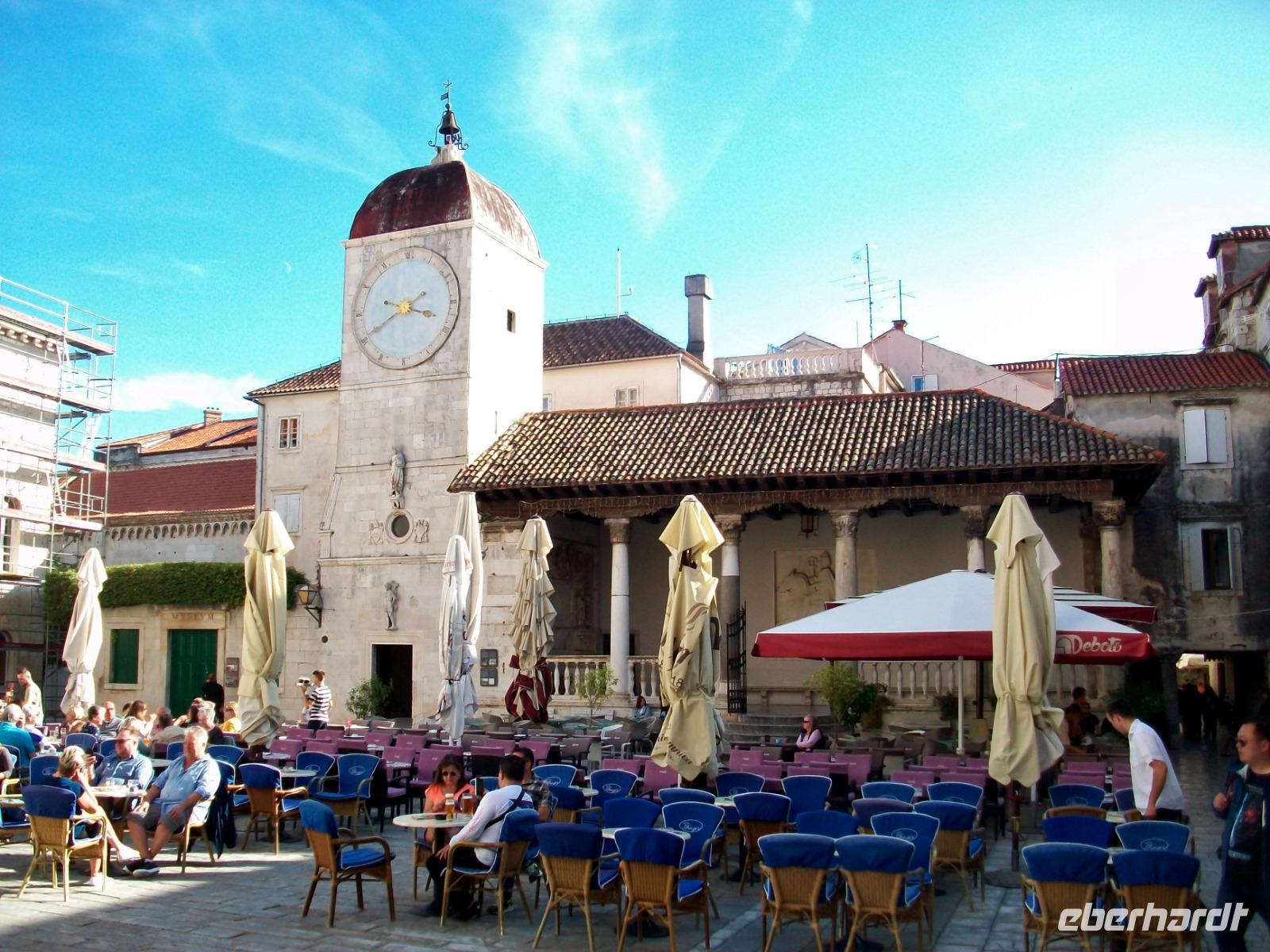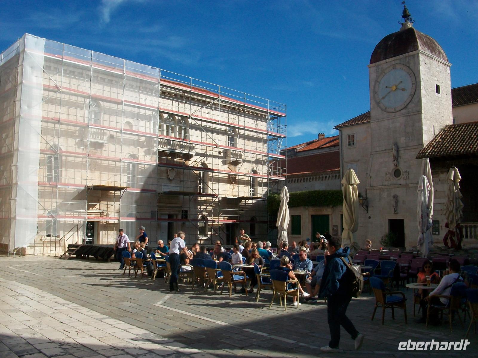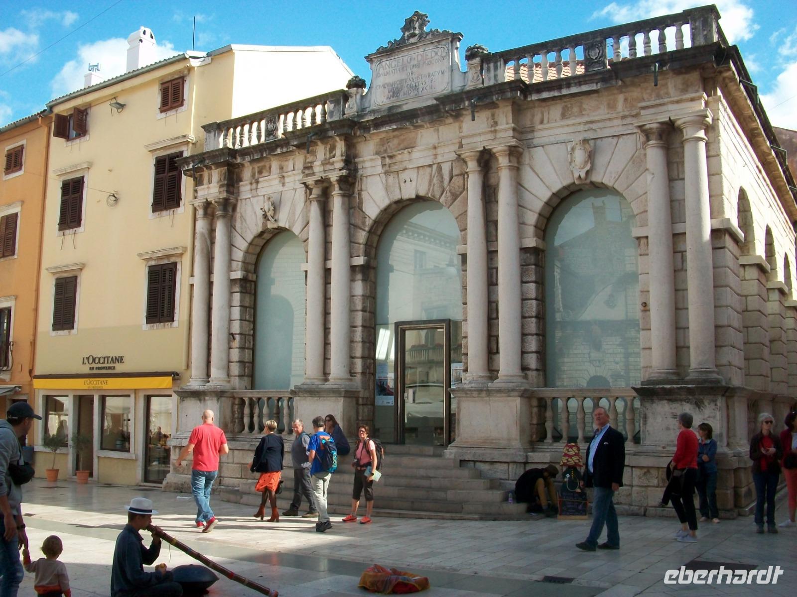 Noch ein Stück Weg und wir langen am Hauptplatz an; es ist das administrative Zentrum der Stadt und der muntere Treffpunkt zahlreicher Touristen und Einheimischer gleichermaßen die hier gemeinsam den sonnigen Nachmittag bei einer Tasse Kaffee genießen, so auch wir. Nachdem sich Andela von uns verabschiedet hat, genehmigen wir uns hier in Zadar noch eine schöne Zeit.