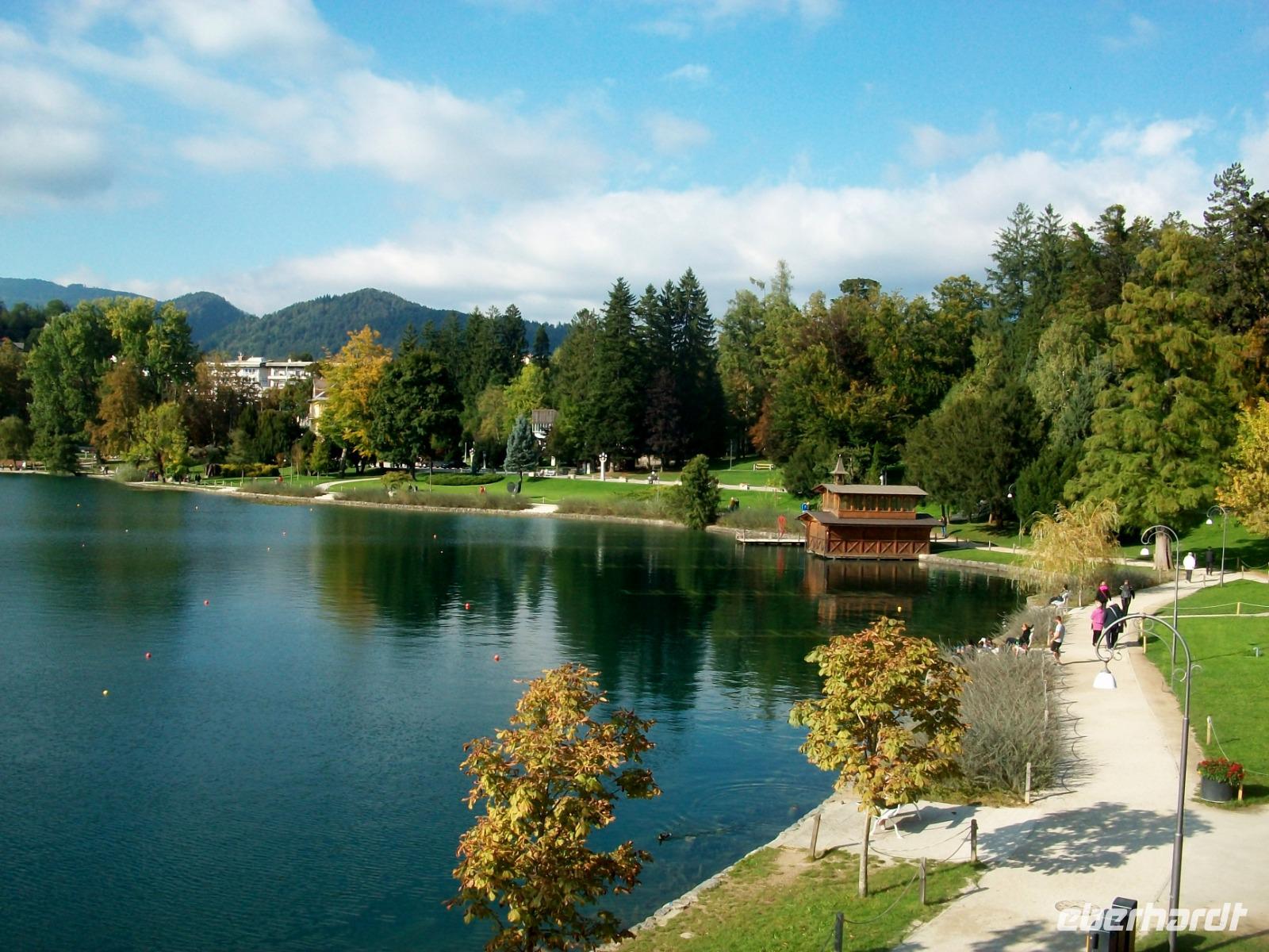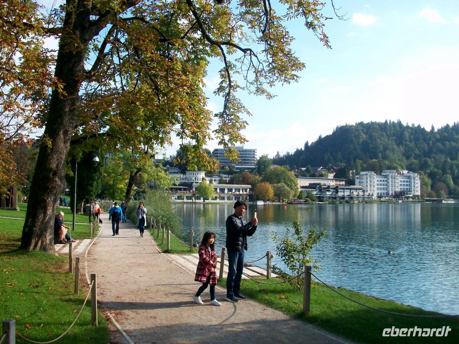 An Ljubljana vorbei und entlang der Karawanken zeigt sich uns in Teilen ein neues phantastischen Bergpanorama; im Hintergrund sind die Erhebungen des Triglavs, der Julischen Alpen und der Pokljuka auszumachen, es ist ein Kontrastprogramm: am Vormittag das Meer und jetzt das Hochgebirge. Und da zögern wir auch nicht lange, gelangen zu unserem Hotel in Bled und genießen hier, allerdings bei deutlich niedrigeren Temperaturen als an der Adria, einen sonnigen Herbstnachmittag in dieser slowenischen Perle.