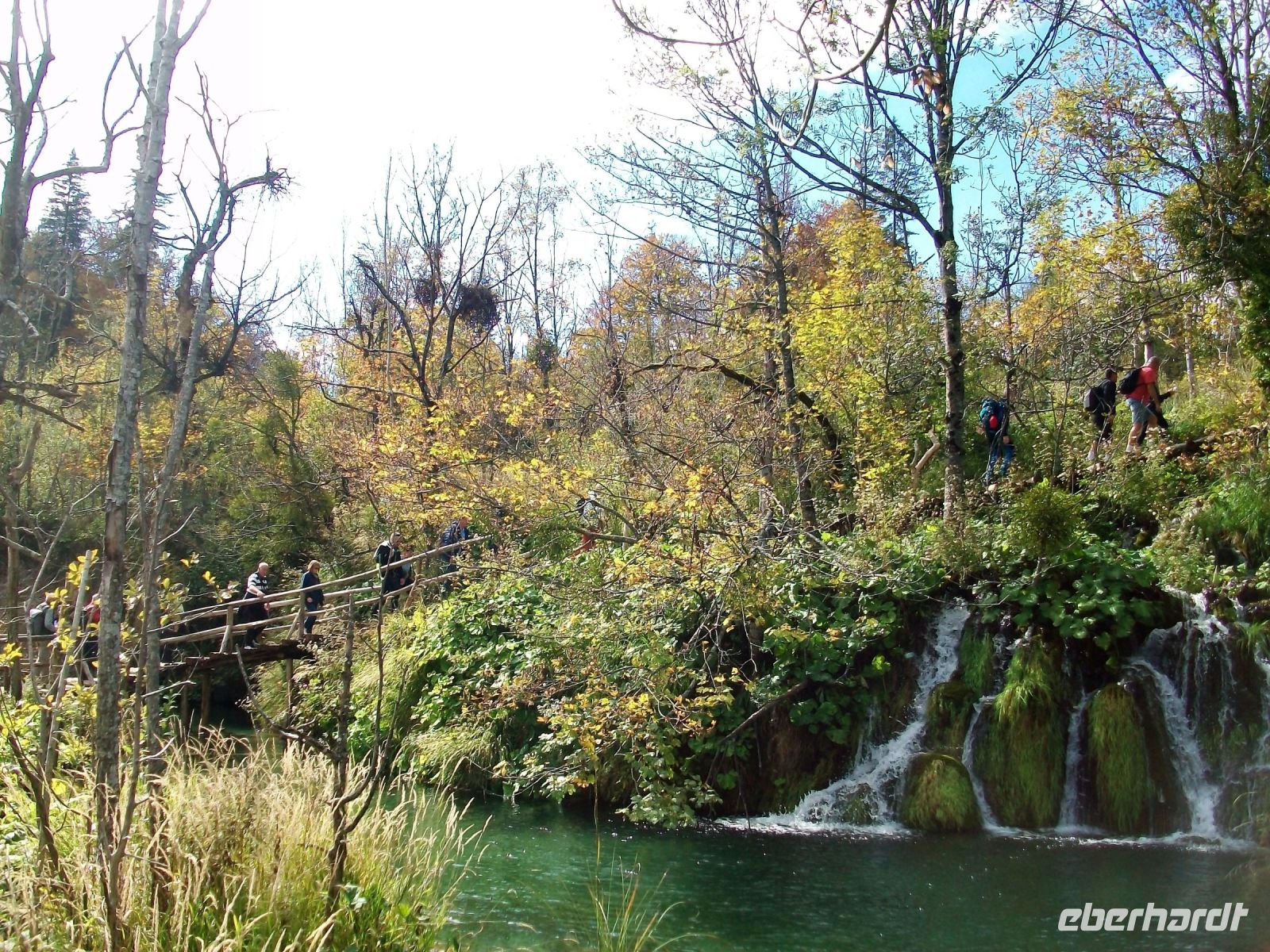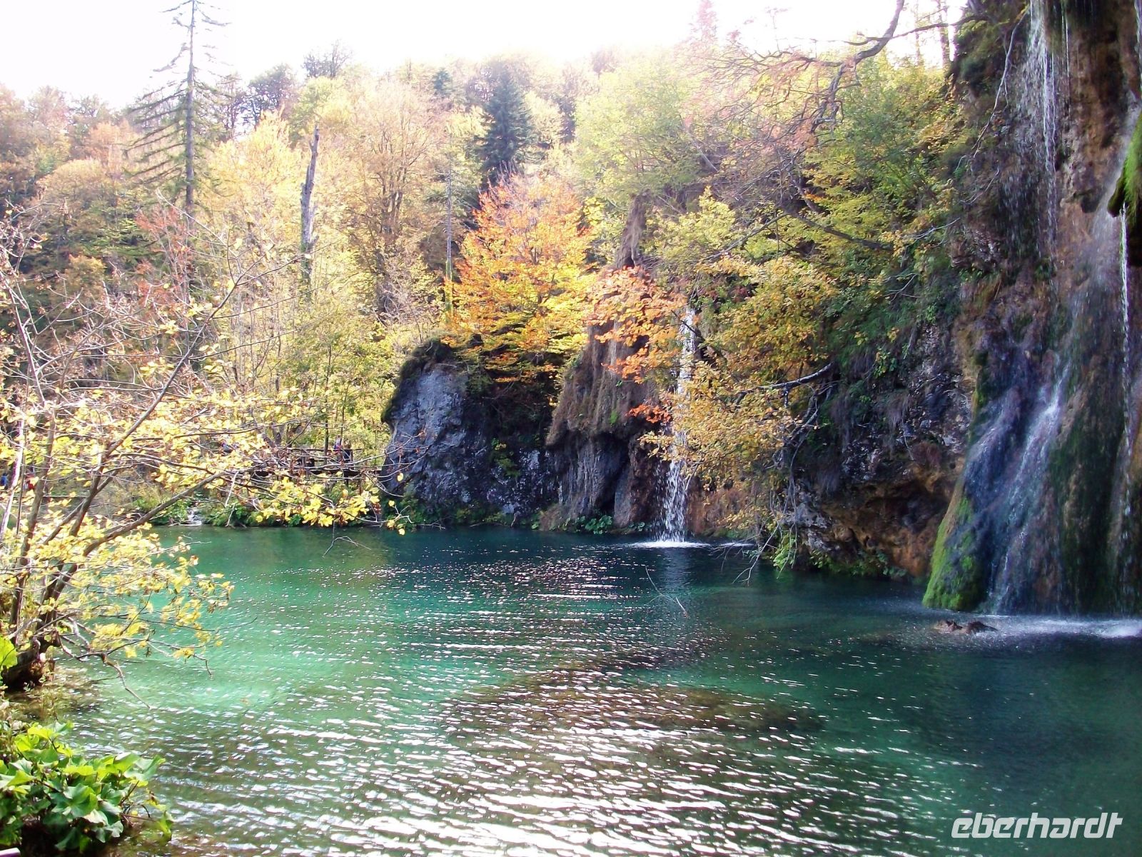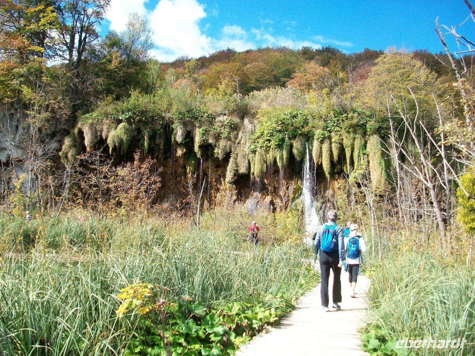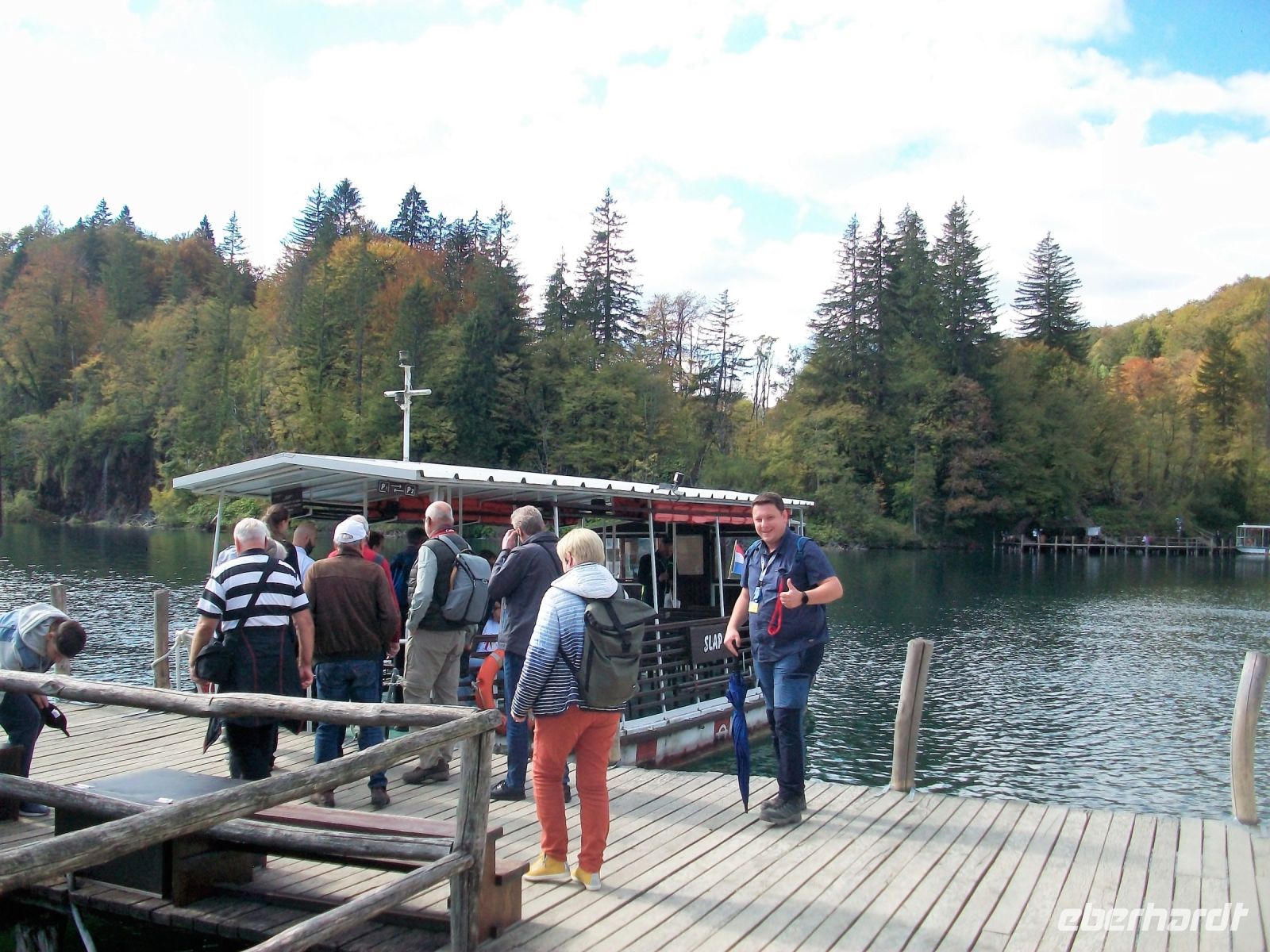 Die Sonne lacht als wir am Park ankommen; noch ein kleiner Imbiss und dann geht es los. Mit Mario, unserem Parkführer, gelangen wir zunächst zu den oberen Seen von Plitvice. Hier kommen wir den einzelnen Wasserfällen schon sehr nah; ein leichter Sprühnebel netzt uns die Haut und bringt Erfrischung in der warmen Nachmittagssonne. Der Weg führt uns bis ganz hinauf und nach einer kleinen Pause steigen wir in die Parkbahn um nun noch die unteren Seen zu bewundern. Bald können wir einen atemberaubenden Blick von oben auf den Großen Wasserfall werfen der seine Wasser aus fast 80 Metern hinab in einen Kessel sendet. Ein Fußweg bringt uns hinunter und nun können wir dieses rauschende Wunder ganz von der Nähe betrachten. Vor diesem Wasserfall lenkte einst Winnetou sein Pferd über diesen gefährlichen Weg. Der Fußweg zur Fähre zeigt uns noch den Silbersee nebst Schatzhöhle und entlang der Schlucht, die sich der Fluss einst grub, können wir weitere türkisfarbene Seen, verbunden mit zahlreichen Kaskaden rauschenden Wasser, genießen. Immer weiter aufwärts führt der Weg welcher zunächst am Koziaksee endet. Hier genehmigen wir uns eine kleine Pause um wenig später mit dem Elektroboot an das andere Ende des Sees zu gelangen. Ein letzter Aufstieg zum Hotel und die einmalige, etwas anstrengende Tour entlang der Plitwitzer Seen, endet am frühen Abend.