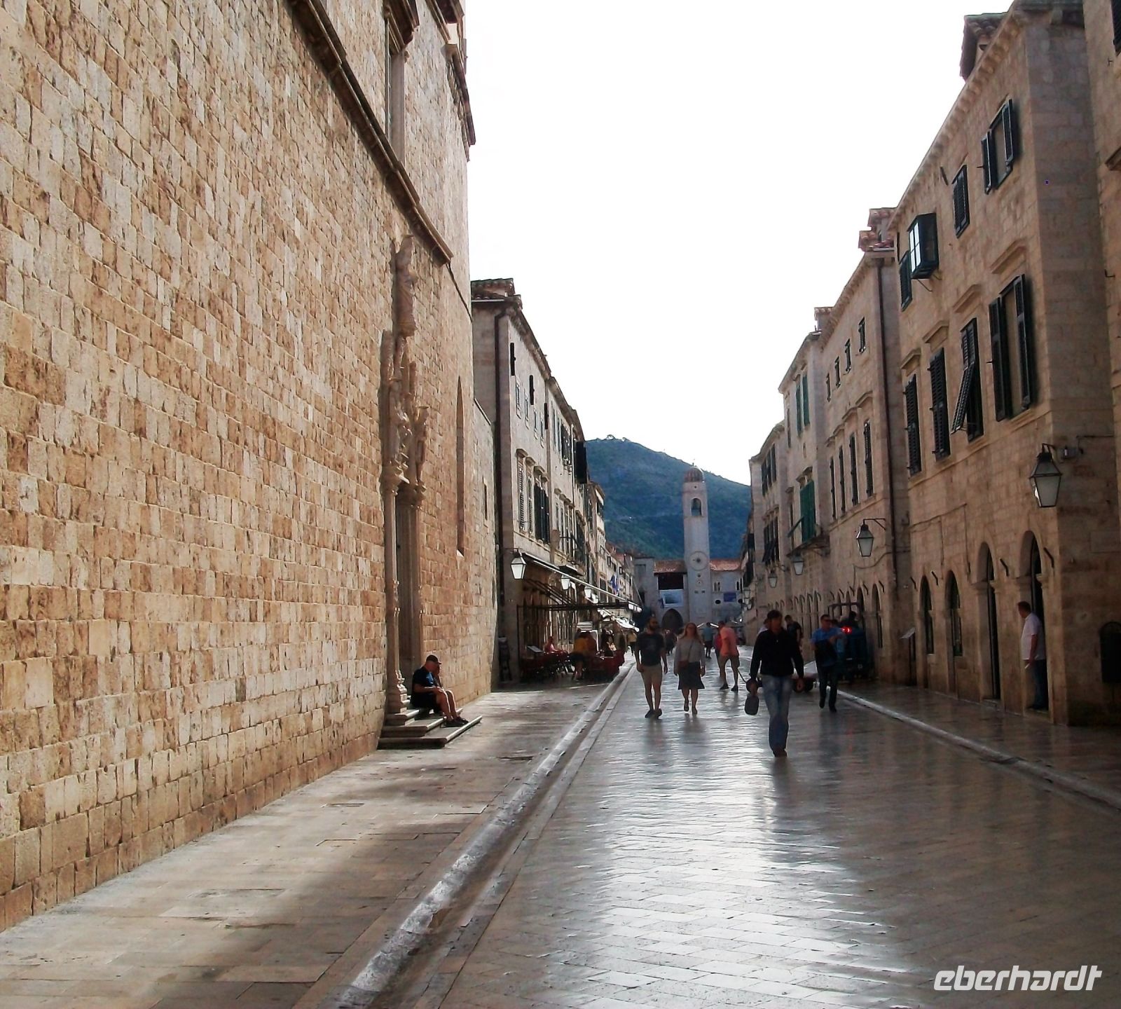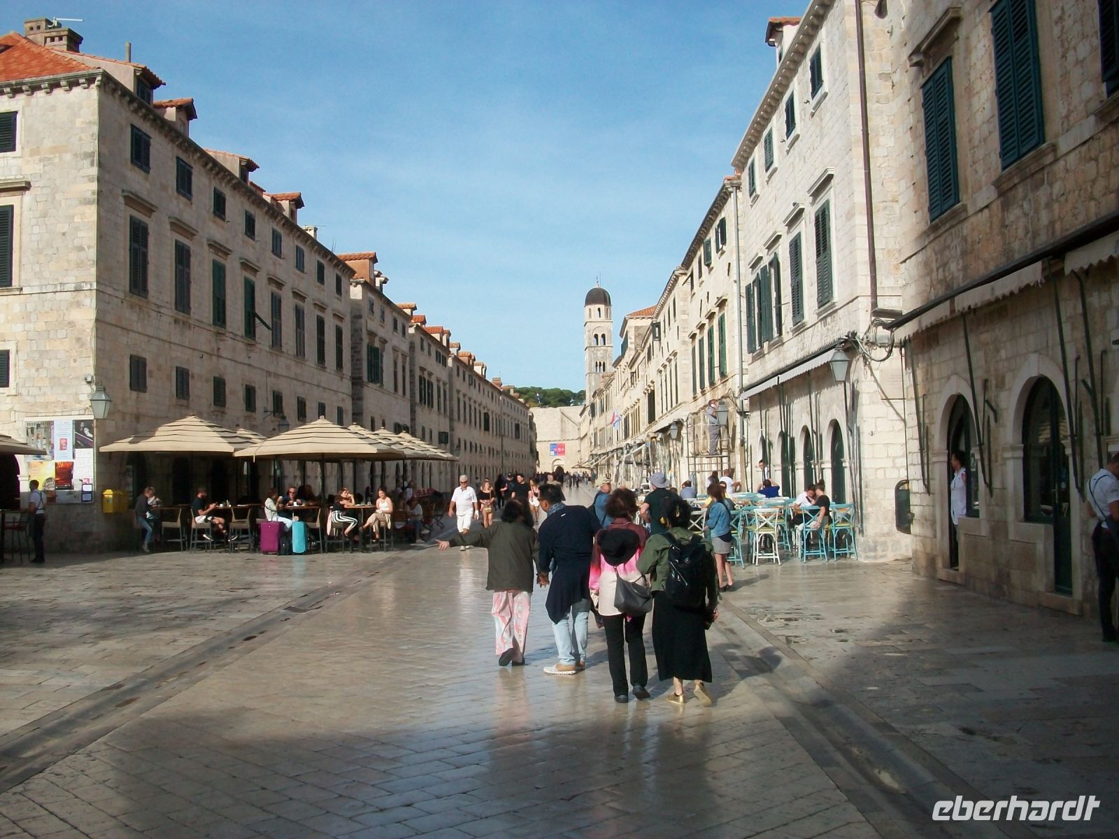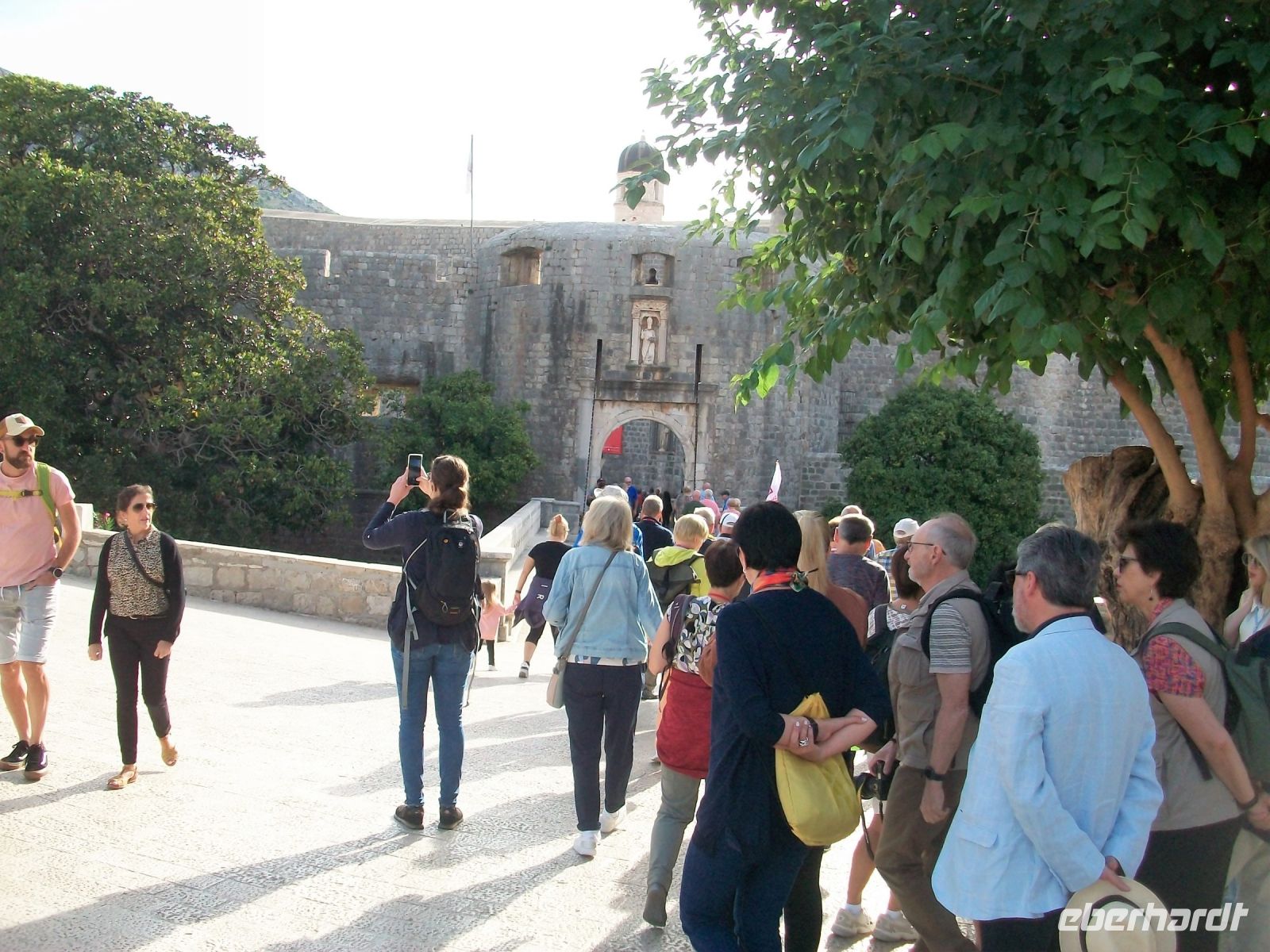 Am Vormittag setzt sich unsere kleine Gruppe in Marsch um nach kurzer Zeit zum Pile vorzustoßen. An diesem Einfallstor beginnt unser Besuch; wir wollen diese Adriaperle in Augenschein nehmen: Dubrovnik! Mit sachkundigen Informationen der Stadtführerin betreten wir über die Zugbrücke die Stadt und sind bald im bunten Treiben auf Stradun, der Fußgängerzone, angelangt. Im Hintergrund der Uhrturm welcher in seinem Inneren die grün - bronzenen Glöckner verbirgt, links und rechts uralte Häuser und Adelspaläste und der Weg aus polierten Kalksteinen spiegelt die Strahlen der einfallenden Sonne – das sind die ersten überwältigenden Eindrücke Dubrovniks.