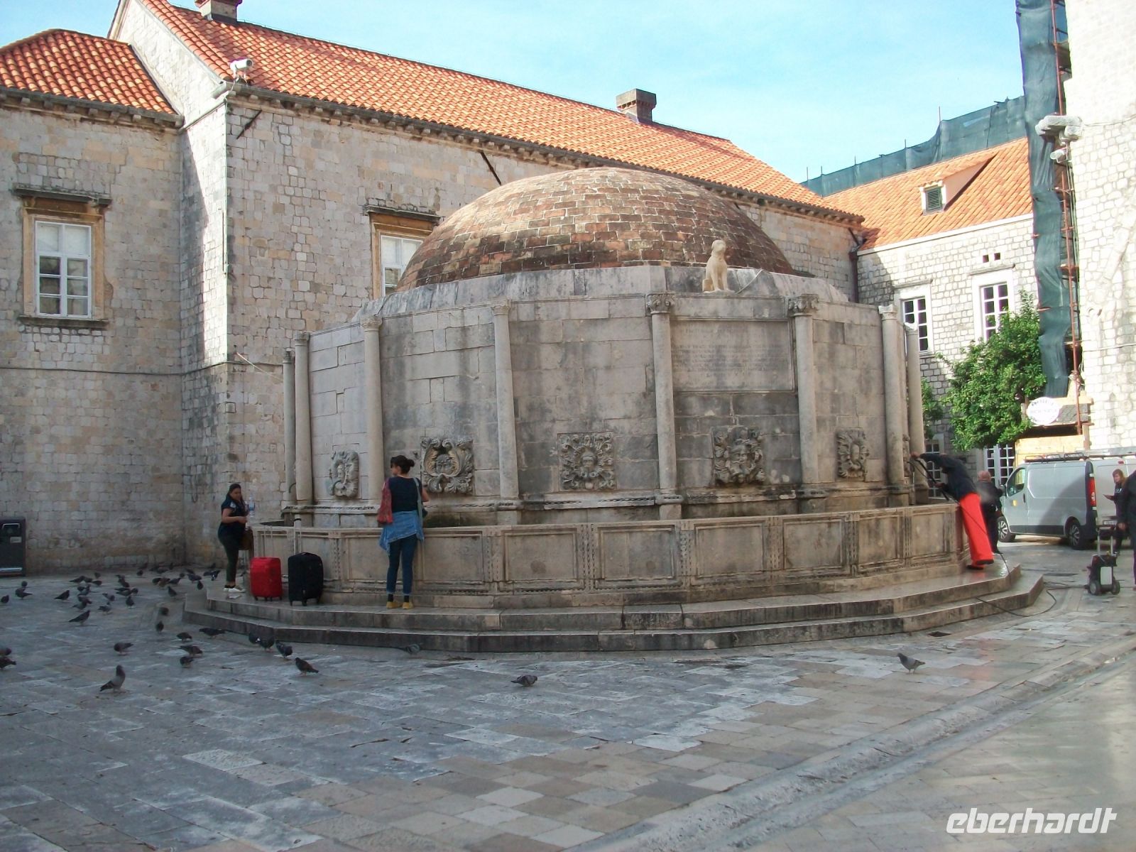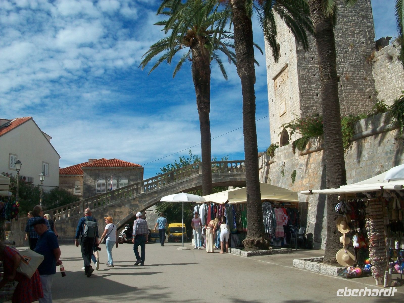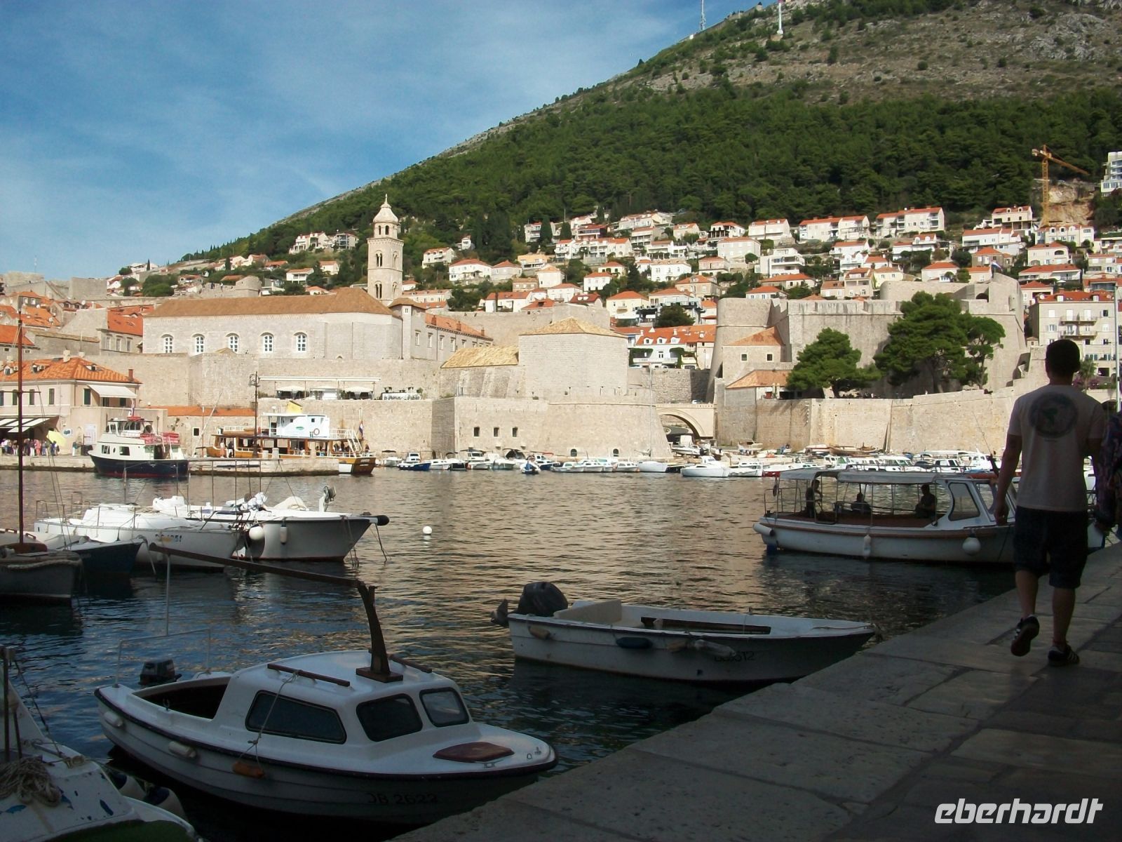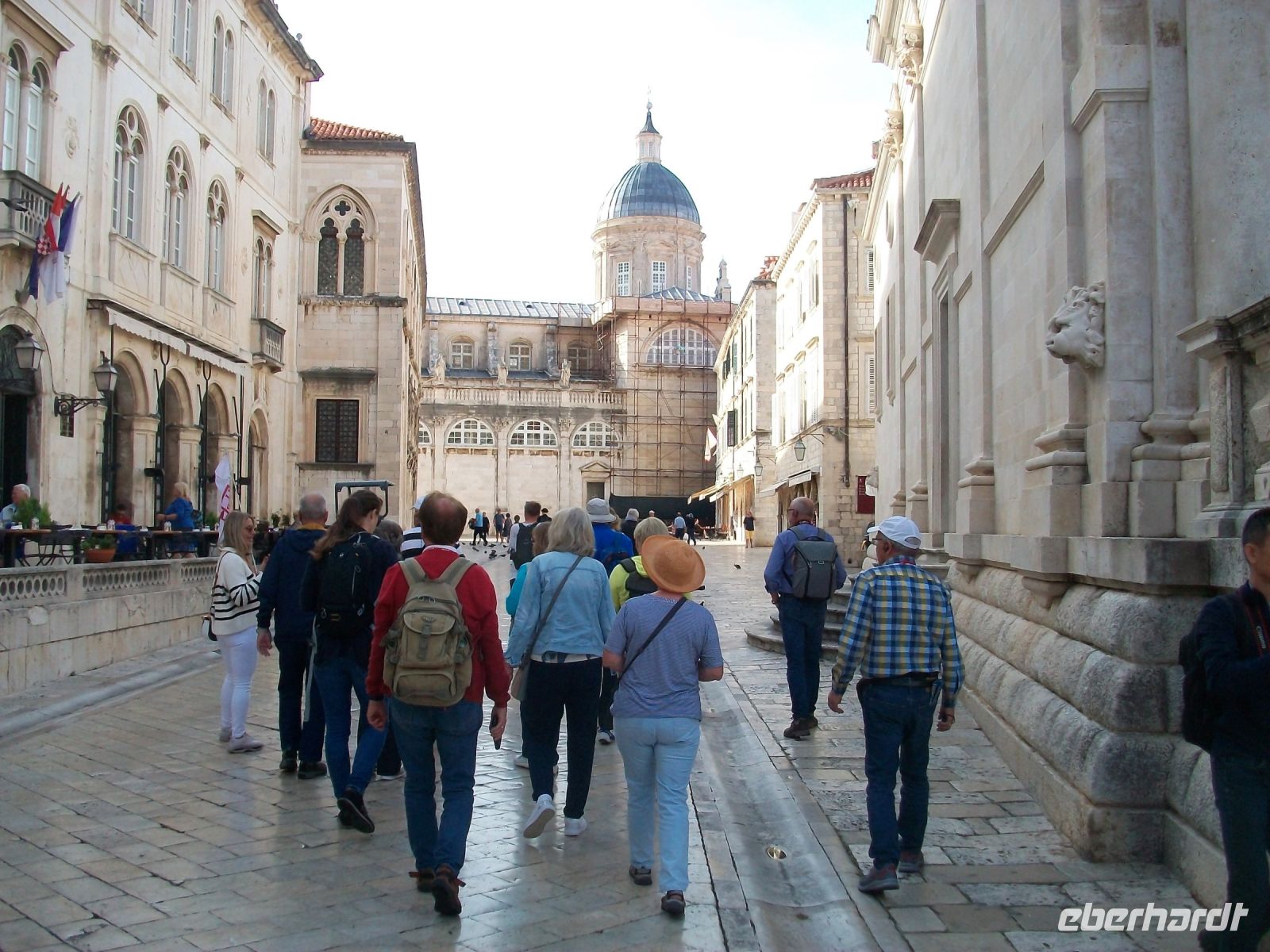 Am Vormittag setzt sich unsere kleine Gruppe in Marsch um nach kurzer Zeit zum Pile vorzustoßen. An diesem Einfallstor beginnt unser Besuch; wir wollen diese Adriaperle in Augenschein nehmen: Dubrovnik! Mit sachkundigen Informationen der Stadtführerin betreten wir über die Zugbrücke die Stadt und sind bald im bunten Treiben auf Stradun, der Fußgängerzone, angelangt. Im Hintergrund der Uhrturm welcher in seinem Inneren die grün - bronzenen Glöckner verbirgt, links und rechts uralte Häuser und Adelspaläste und der Weg aus polierten Kalksteinen spiegelt die Strahlen der einfallenden Sonne – das sind die ersten überwältigenden Eindrücke Dubrovniks.