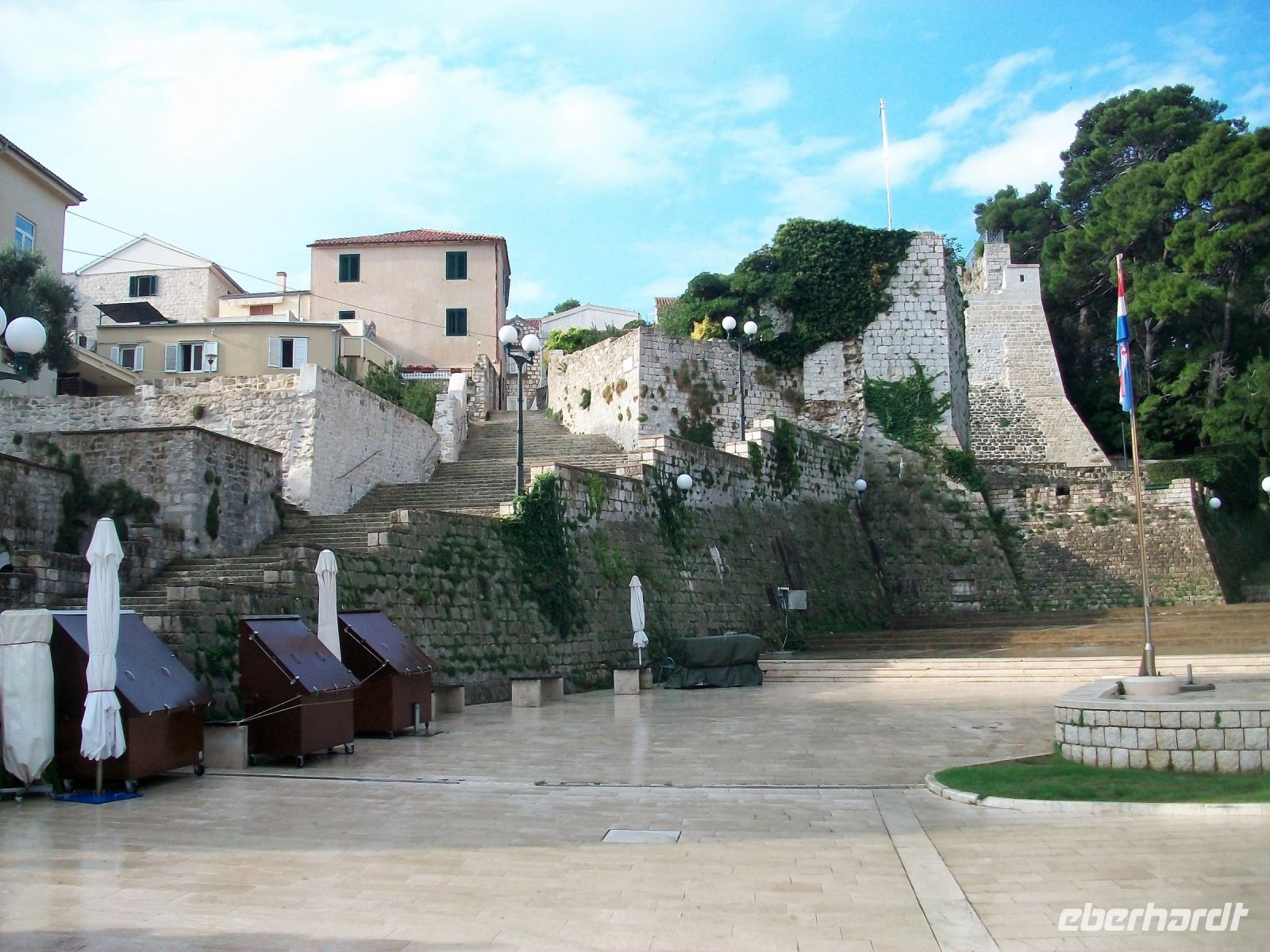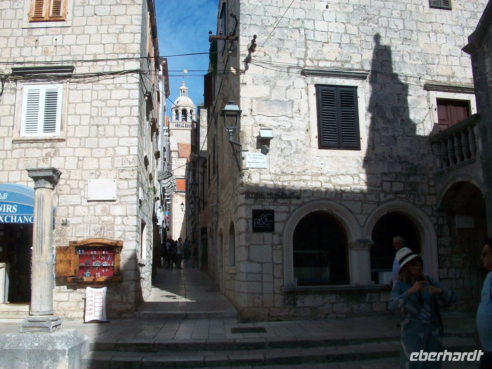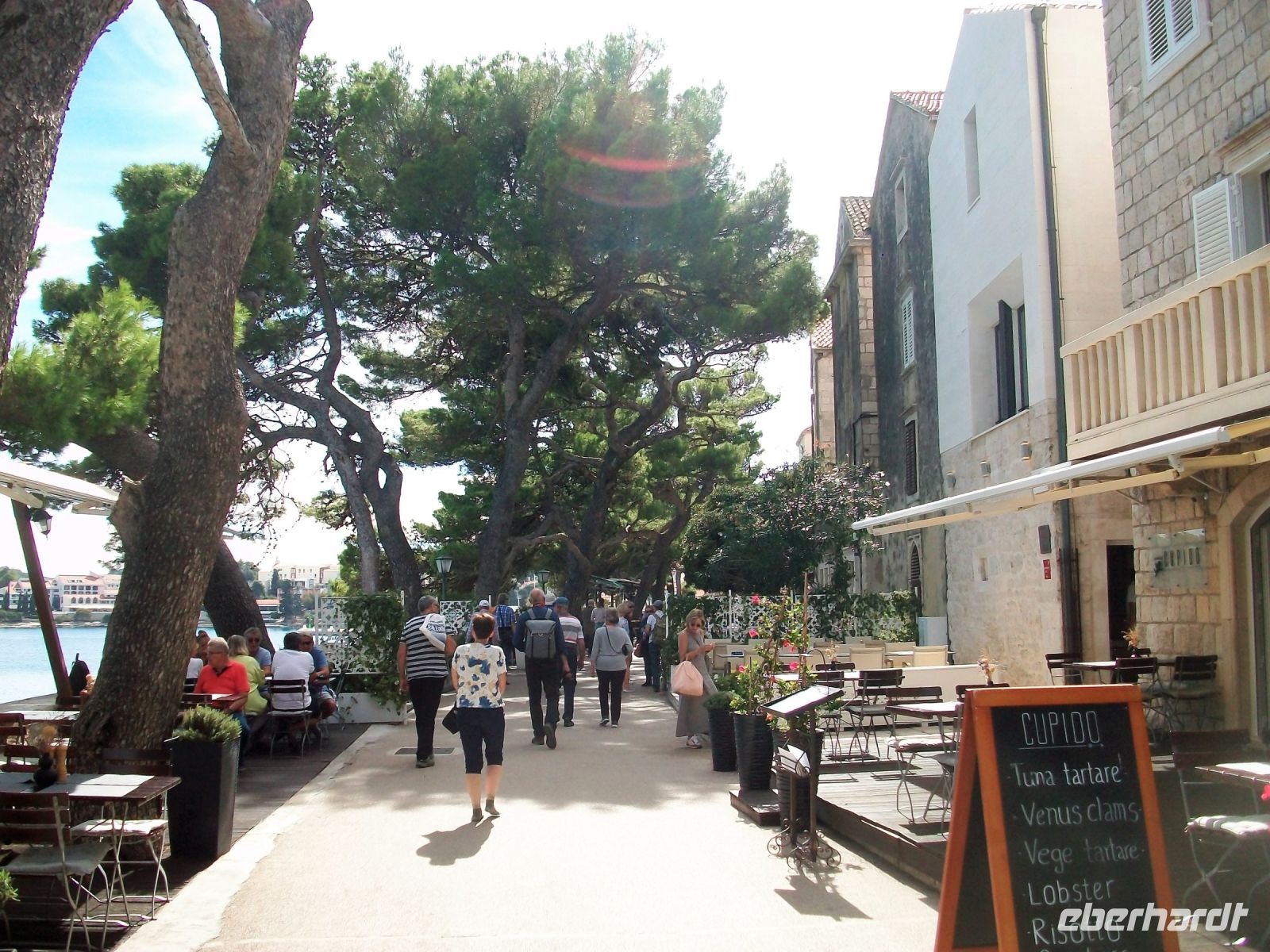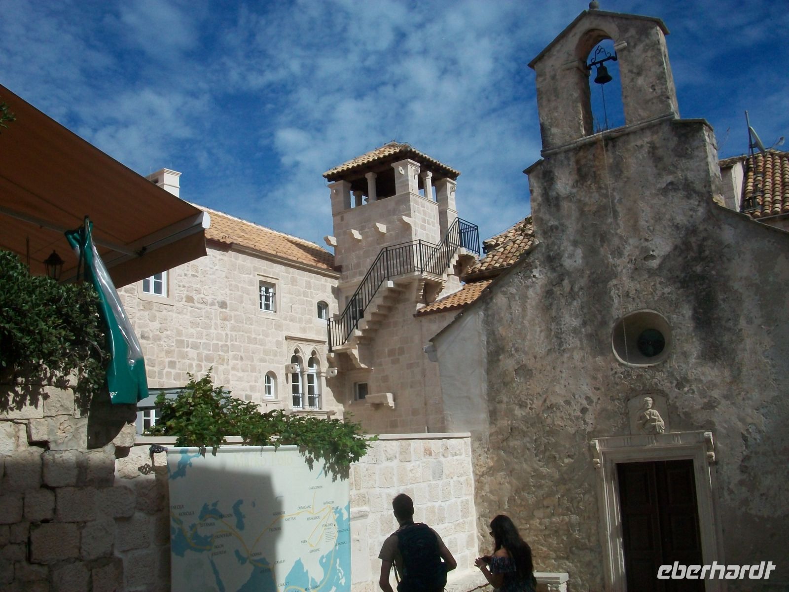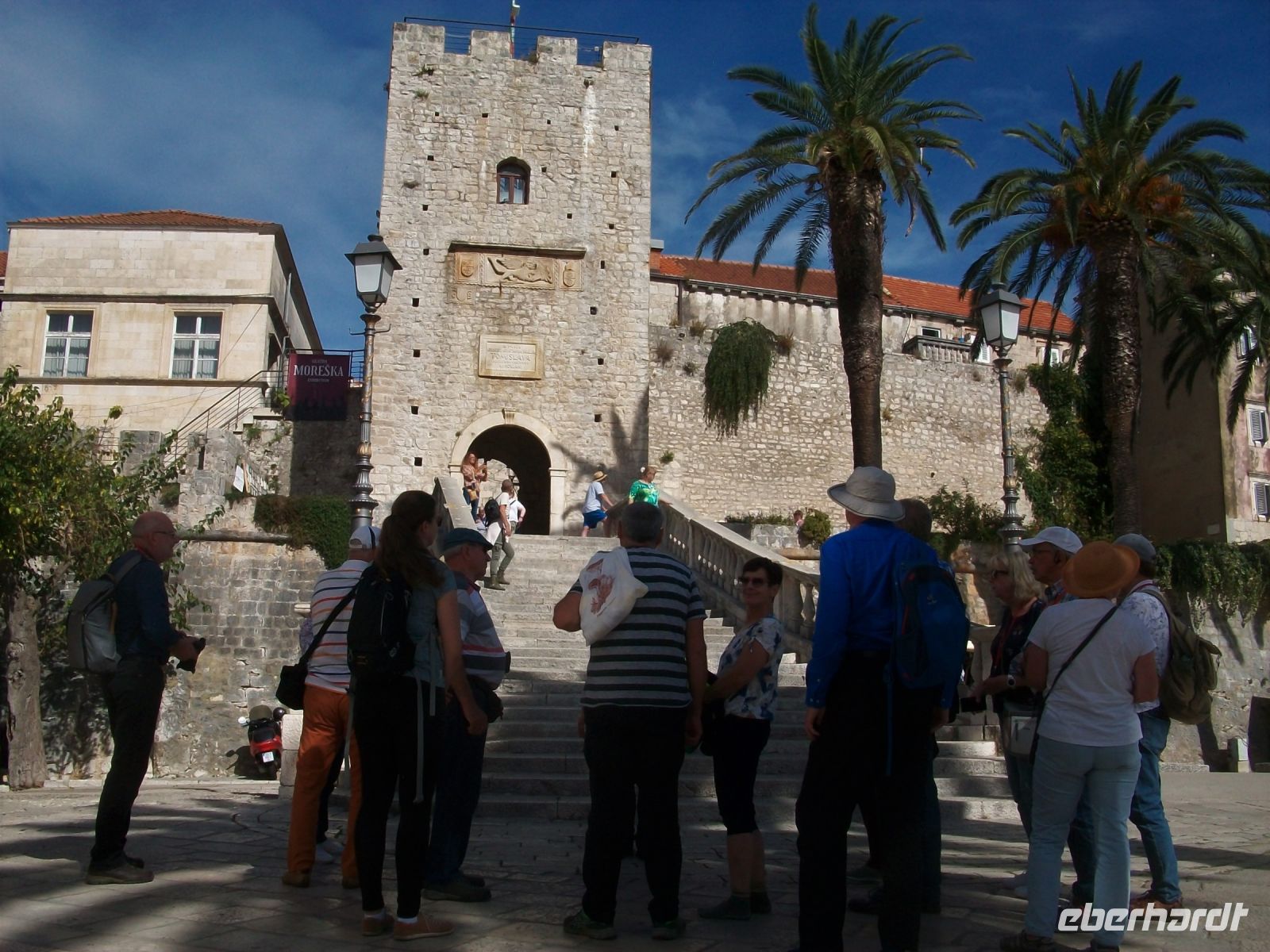 Vor den Toren der Stadt werden wir von unserer Stadtführerin erwartet; sie nimmt uns in der nächsten knappen Stunde mit auf eine Zeitreise. Über die hohe Treppe gelangen wir zur Hauptgasse und über die Loggia hinauf zur Kirche. Auf dem kleinen Platz vor dem Gotteshaus reihen sich einige Paläste aus venezianischen Zeiten und wir erfahren wie die Menschen einst in diesen Häusern lebten. Etwas abseits sehen wir einen Turm, daneben ein frisch renoviertes Haus; es soll das Geburtshaus des berühmten Weltreisenden Marco Polo sein. Die Wissenschaftler streiten sich darüber bestimmt noch die nächsten Jahrzehnte; lassen wir sie streiten! Wir bummeln unterdessen weiter durch die engen Gassen; später über die schöne Promenade mit den zahlreichen Restaurants und erfahren zum Ende der Führung noch etwas über die Befestigungsanlagen der Stadt.