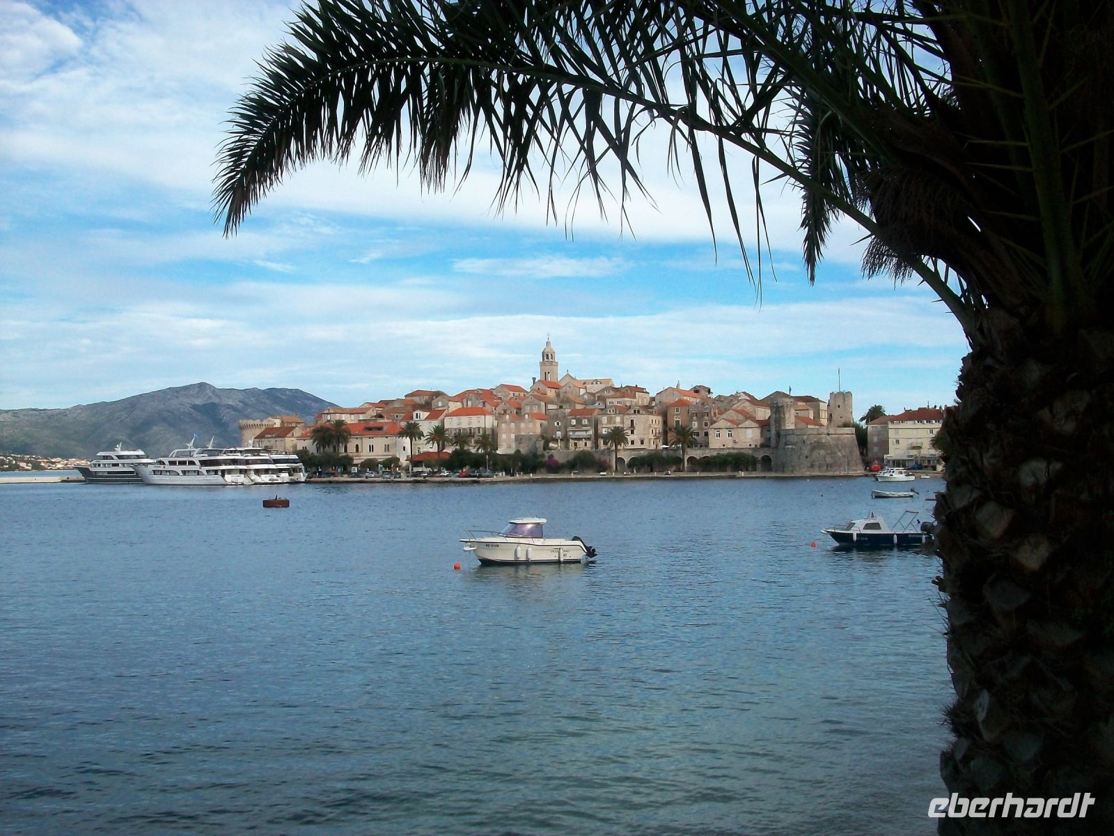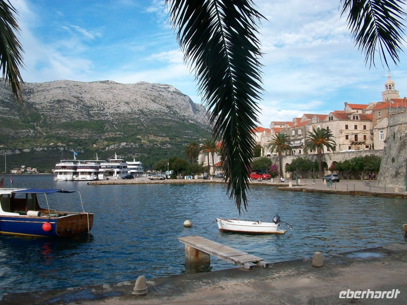 Das Schiff gleitet über das blaue Wasser, leichte Gischt rauscht am Schiffsrumpf entlang, die Sonne lacht vom Himmel herab und schon nach einer Viertelstunde haben wir Korcula erreicht.