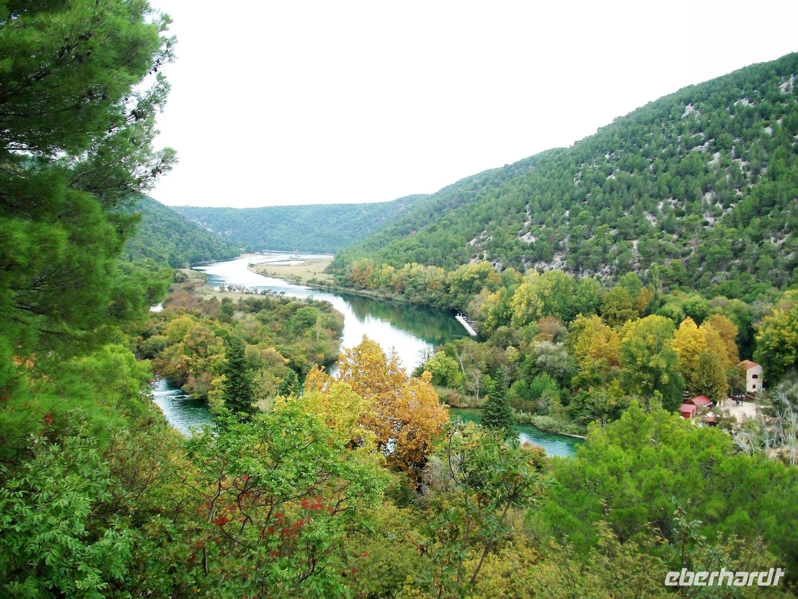 5.10.2022. Heute müssen wir etwas eher aus den Federn; ein langer, aber auch ereignisreicher Tag steht uns bevor. Als wir das Gebiet der Plitwitzer Seen verlassen, umgibt uns das dünnbesiedelte Gebiet der Lika. Herbstnebel wallen über das einsame Land; langsam kämpft sich die Sonne durch den Dunst, sie wird uns auf der weiteren Fahrt verwöhnen. Am Zrmanja - Canyon gelangen wir bald in den Einfluss des Mediterranen; die Flora ändert ihr Gesicht und im Hintergrund ist auch schon die Adria zu sehen.
