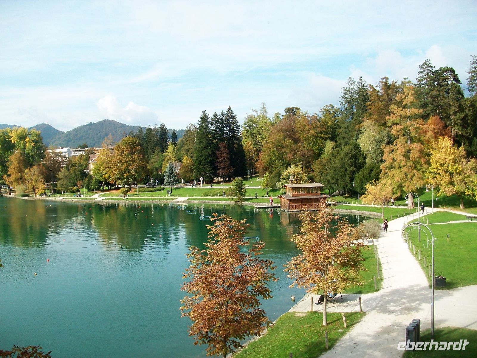 Umrahmt von den Bergen der Julischen Alpen und des Triglavs empfängt uns ein überaus sonniger Spätsommertag der hier schon in einen goldenen Herbst übergegangen ist. Mit vollem Genuss können wir einen Bummel am malerischen See unternehmen. Entlang des schönen Wegs, der gesäumt ist mit Bäumen die ihr herbstliches Bunt zeigen, genießen wir einen letzten schönen Aufenthalt auf dieser Reise. Gemütlich vergehen die Stunden bis langsam Dunkelheit einzieht und unsere Reisegruppe ein letztes gemeinsames Abendessen einnimmt. Wie schnell sind nur die Tage vergangen? Morgen werden die Fluggäste andere Wege gehen, wir aber werden mit dem Bus noch einmal die Alpen durchqueren.