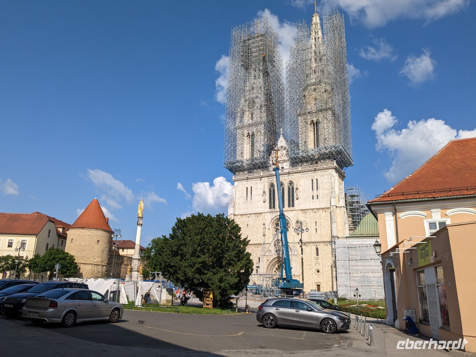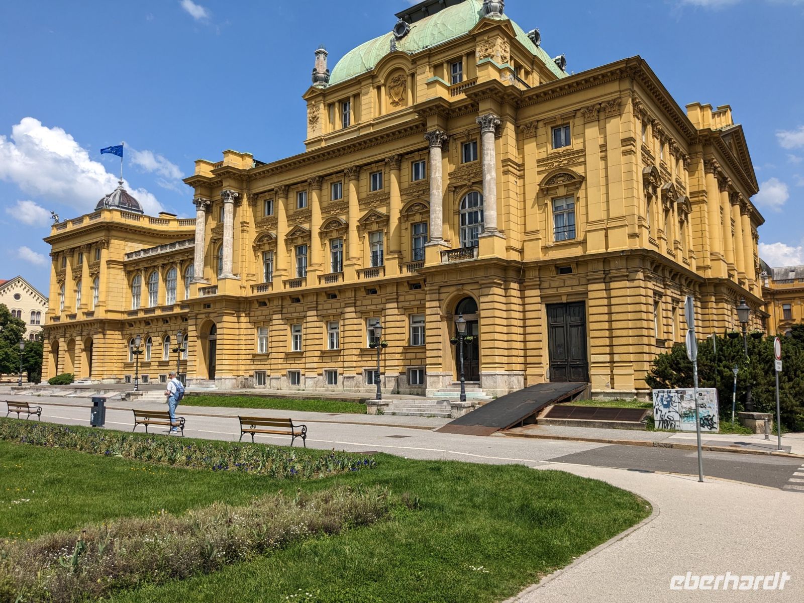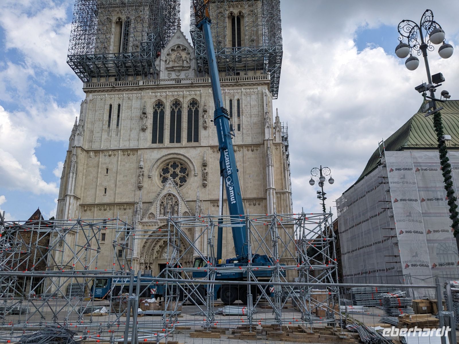 Schloss Lužnica beispielsweise ist eines der schönsten Barockschlösser in Kroatien, umgeben von einem gepflegten kleinen Park mit vielen Blumen. Sein Bau Ende des 18. Jh. wird der österreichischen Adelsfamilie von Rauch zugeschrieben. Bekannter als das attraktive Lužnica allerdings ist das in einem riesigen Park liegende Schloss Novi Dvori, das - aus dem Frühbarock stammend – mehr als hundert Jahre älter ist. Nach mehrfach wechselnden Besitzern und Grafen kaufte und modernisierte das Schloss Mitte des 19. Jh. der in Kroatien als Nationalheld geltende Ban Josip Jelacic, der als Ständevertreter die kroatische Unabhängigkeit im Vielvölkerstaat Österreich-Ungarn garantierte und den kroatischen Landesteil verwaltete. Auch seine Familiengruft findet sich auf dem Gelände, das allerdings im 2. Weltkrieg der faschistischen Ustaša-Regierung des Ante Pavelic als Hauptquartier diente. Nach kurzen Spaziergängen in den Schlossparks reisten wir weiter in die Hauptstadt Kroatiens, nach Zagreb. An einem Platz im Stadtzentrum der Neustadt, nahe dem Nationaltheater, erwartete uns dann unsere Stadtführerin zur Führung durch die Unter- und Oberstadt. Zagreb ist übrigens eine Partnerstadt der Rheinland-Pfälzischen Hauptstadt Mainz und verfügt durch Kathedralstadt, OIberstadt und Neustadt über eines der attraktivsten Stadtbilder im Süden Europas. Das Erscheinungsbild der Zagreber Neustadt Zagrebs geht in weiten Teilen auf Entwürfe des Kölner Architekten Hermann Bollé zurück und entstand um die Jahrhundertwende vom 19. zum 20. Jh. in der Zeit der Donaumonarchie. Deshalb gibt es auch relativ viele Jugendstilbauten zu sehen. Zagreb wurde im Jahr 2020 durch ein schweres Erdbeben stark in Mitleidenschaft gezogen, weswegen viele repräsentative Gebäude und die meisten Kirchen eingerüstet waren. Beim Rundgang am Kroatischen Nationaltheater vorbei gelangten wir zum Zentrum Zagrebs, dem Josip Jelacic-Platz und starteten von hier unsere Besichtigungstour zur (eingerüsteten) Kathedrale auf dem Kaptol-Hügel, den Märkten der Altstadt und zu den hübschen Kirchen und Plätzen der Oberstadt. Beim Bummel von der Ober- in die Unterstadt lernten wir die ältesten Teile Zagrebs kennen und blicken vom Aussichtspunkt der oberen Stadt auf die tiefer liegende Neustadt der Metropole. Im Anschluss an die Stadtführung, die am Jelacic-Platz endete, blieb uns noch genügend Zeit für eigene Erkundungen beim Bummeln, einem Eis oder einem Kaffee, bevor uns unser Bus am Treffpunkt nahe den Nationaltheater abholte und wir zum modernen Ariston-Hotel fuhren.