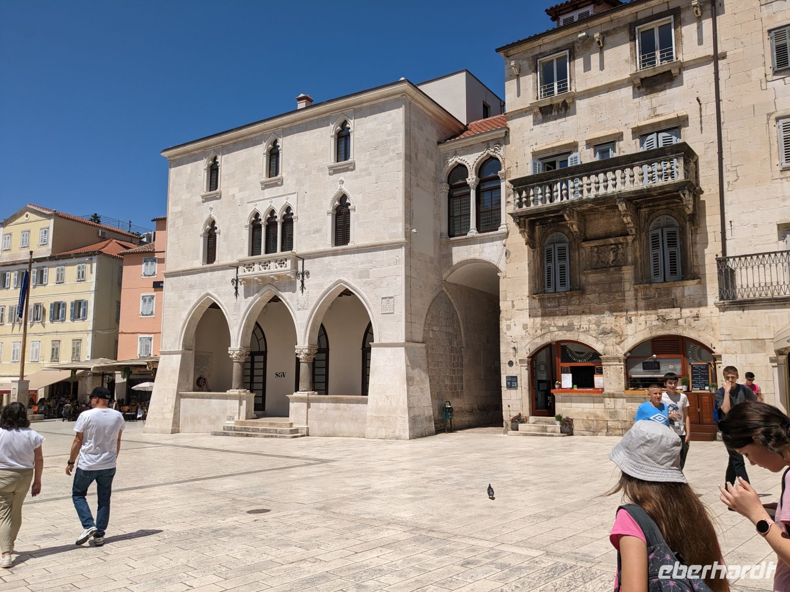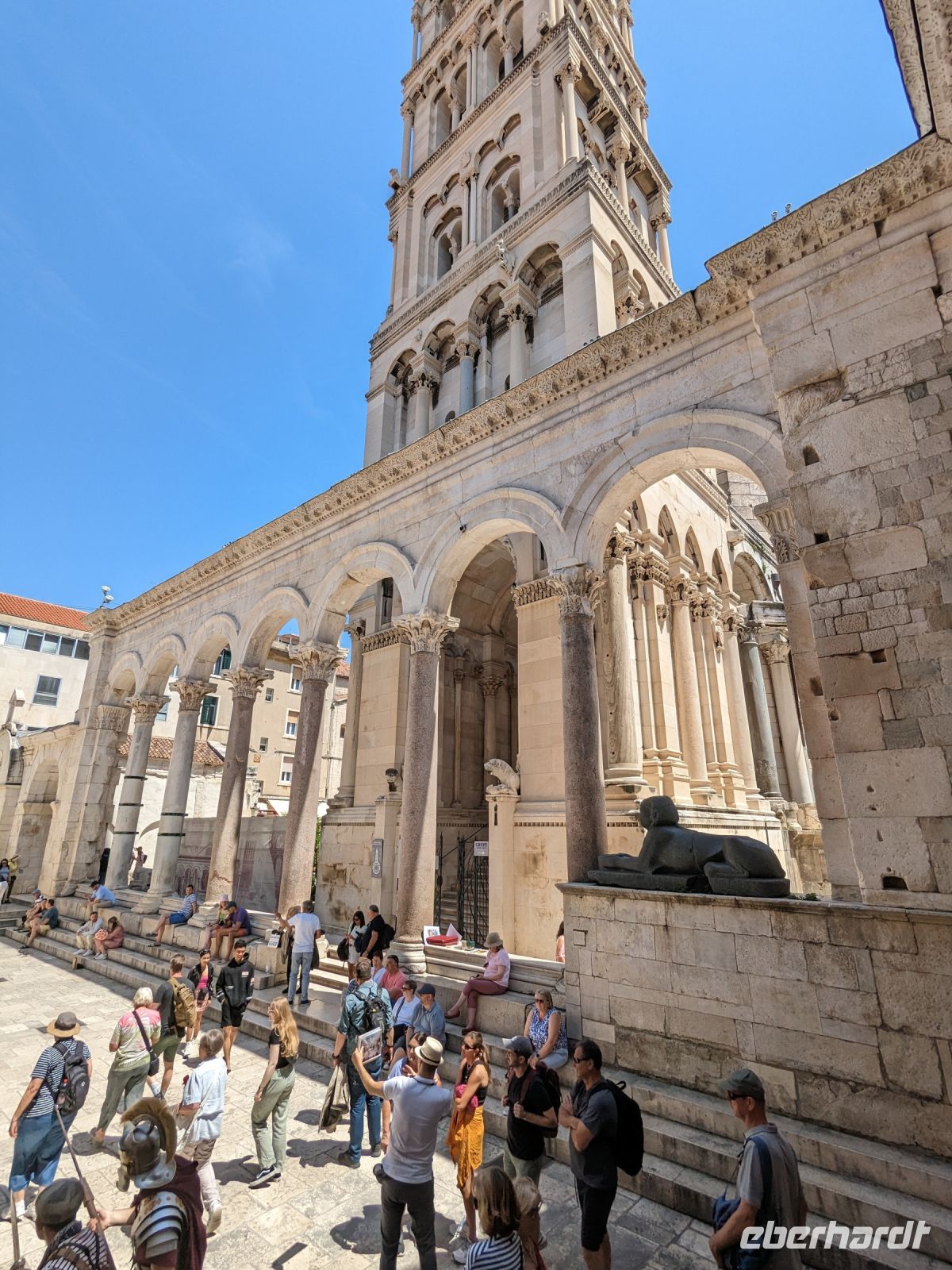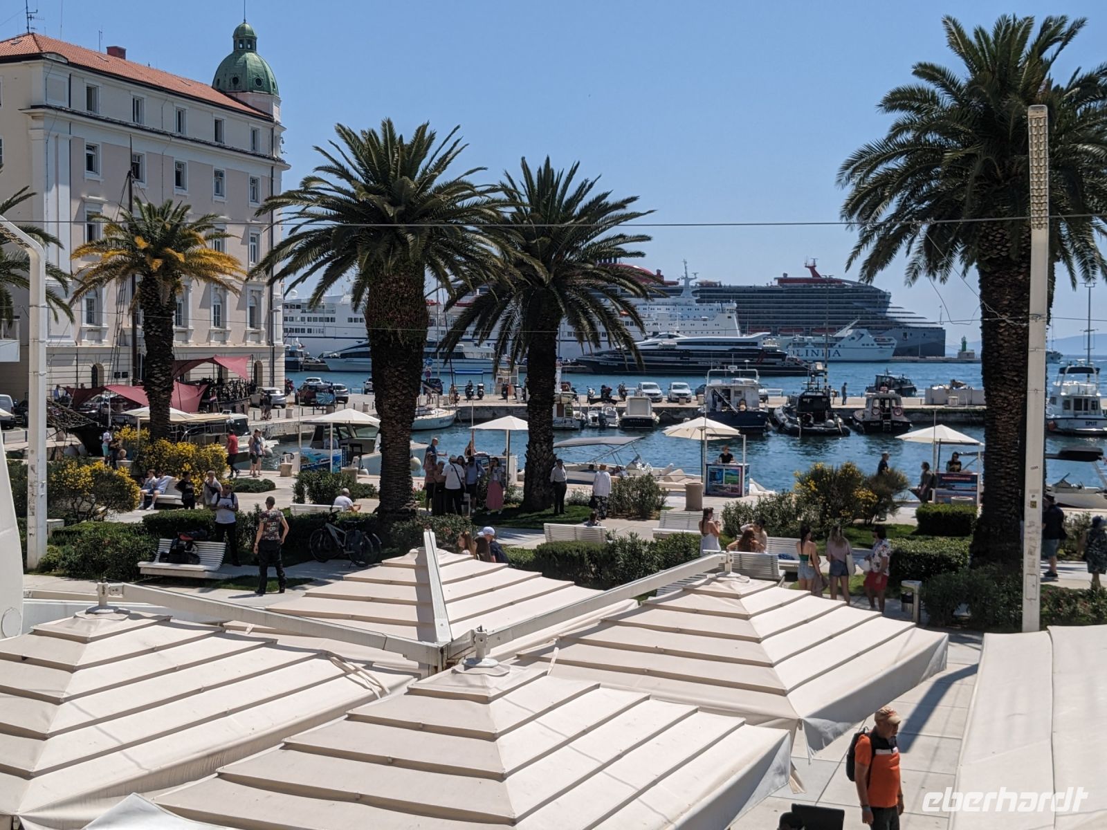 Nach einem Zwischenstopp an der malerischen Autobahnraststätte Krka, von der ein schöner Blick auf das Tal dieses Flüsschens möglich ist, erreichten wir kurz danach Split, zweitgrößte Stadt Kroatiens und sozusagen inoffiziell als „Hauptstadt Dalmatiens“ bekannt. Hier erwartete uns am Ende der herrlichen Hafenpromenade „Riva“ unsere Stadtführerin Dijana, die uns einen interessanten Einblick in die Geschichte ihrer Heimatstadt vermittelte
