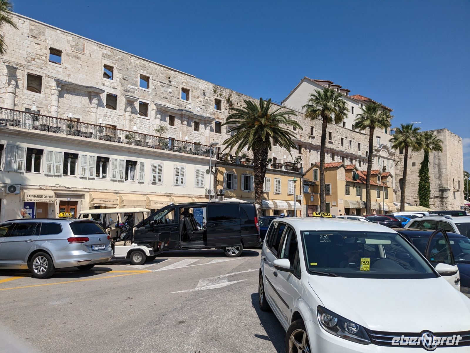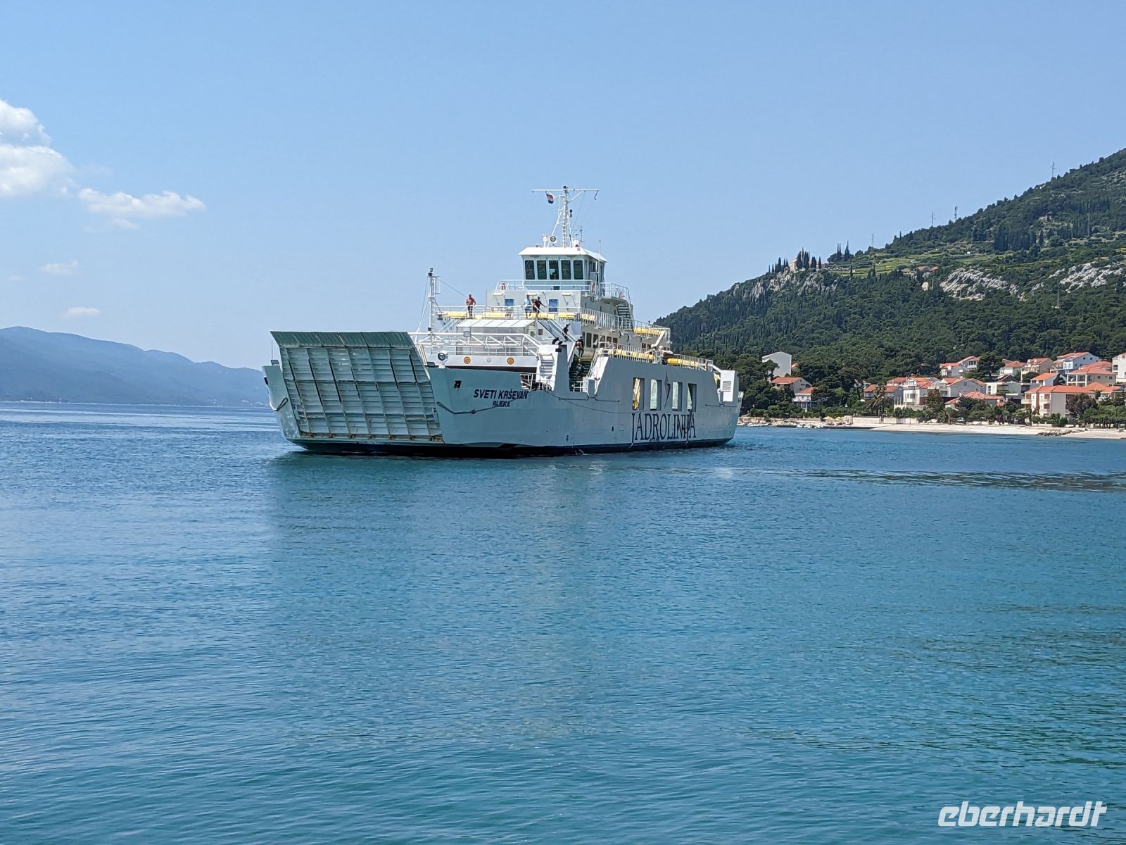 Auch heute gab es schon wieder einen Abschied, denn die Frühfähre brachte uns von Korcula zurück zur Halbinsel Pelješac. Auf bereits bekannter Strecke fuhren wir zur Autobahn und auf ihr bis zur UNESCO-Weltkulturerbe-Stadt Trogir, die unser heutiger Haupt-Besichtigungspunkt war.